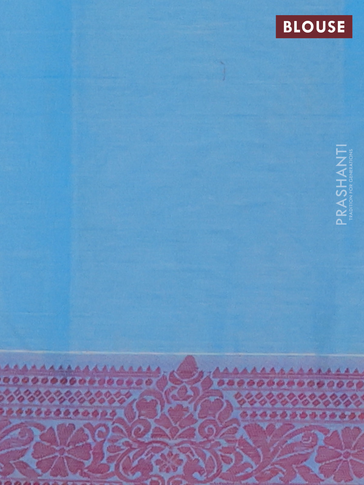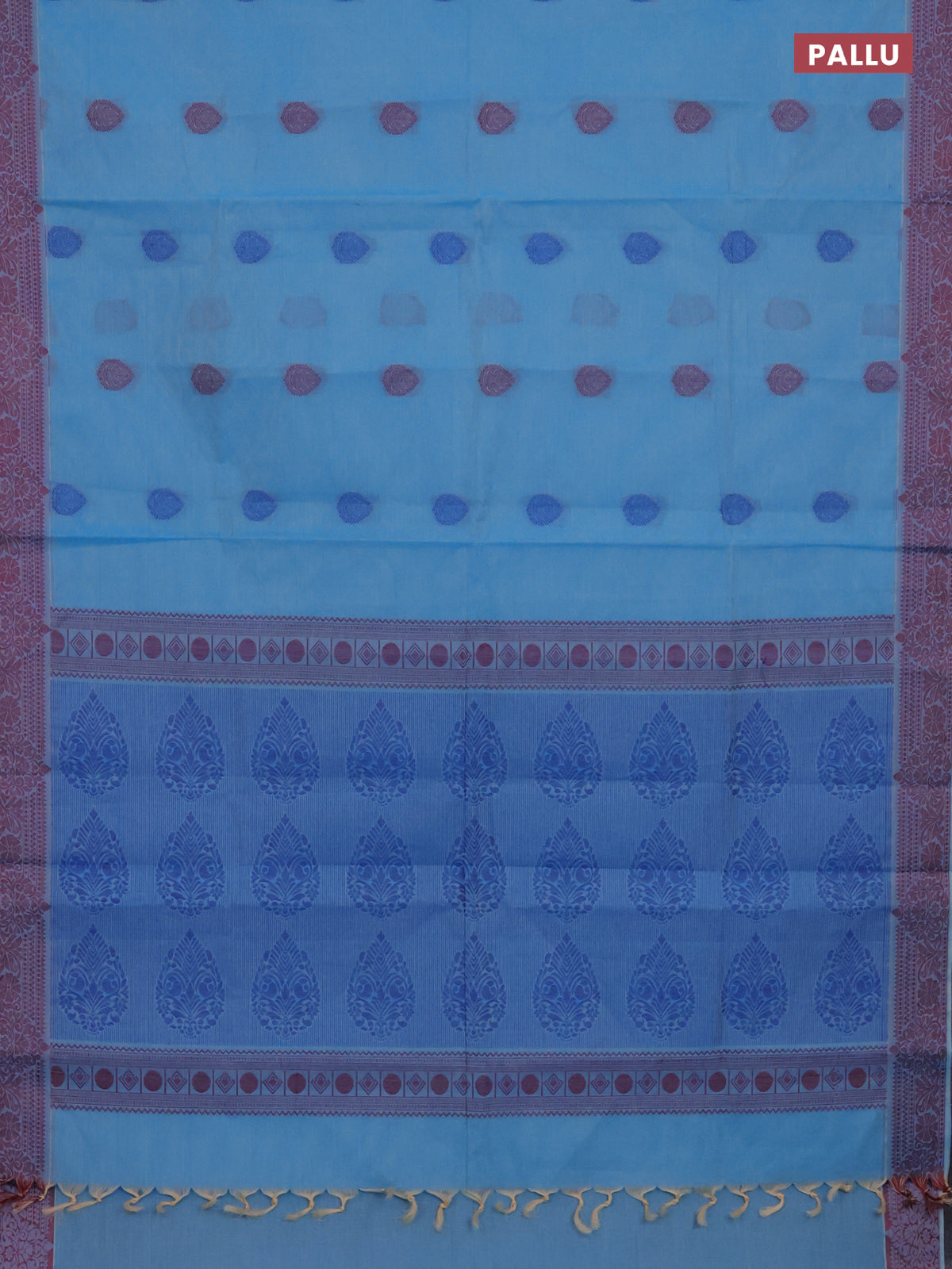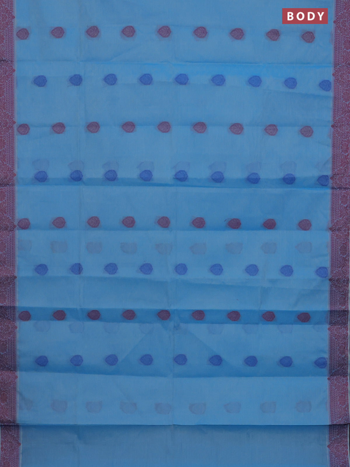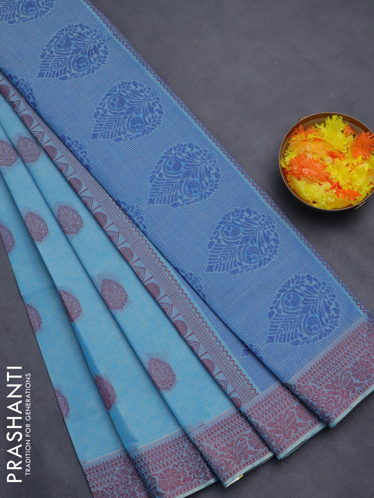 Nithyam cotton saree blue with allover self emboss & thread weaves and thread woven border