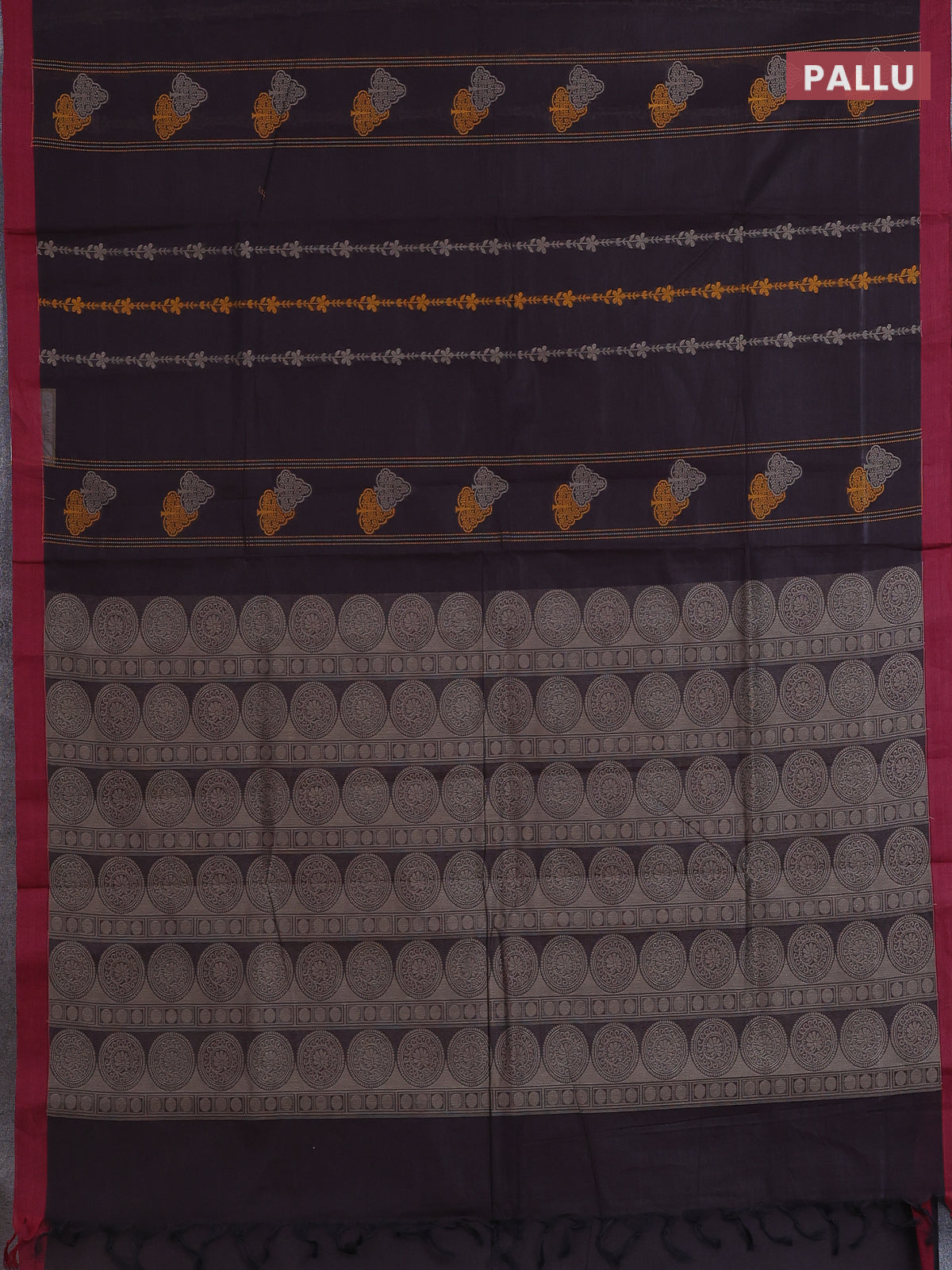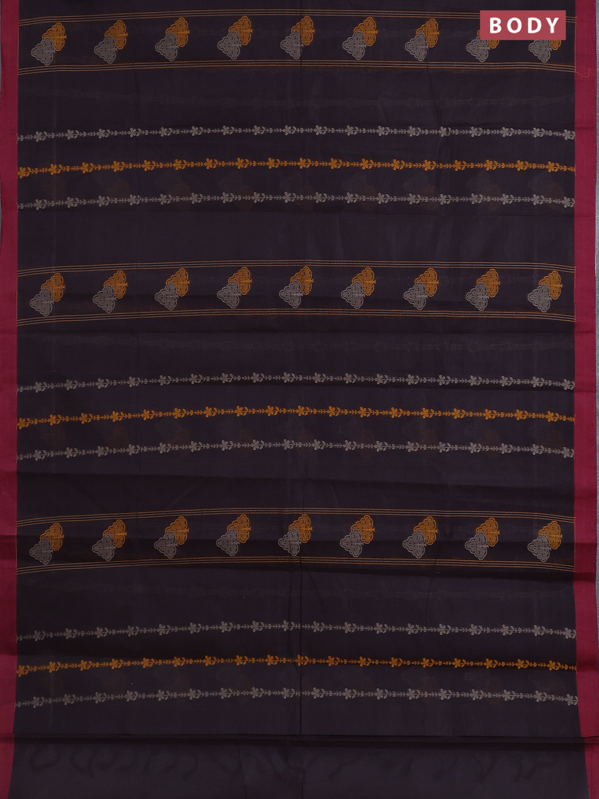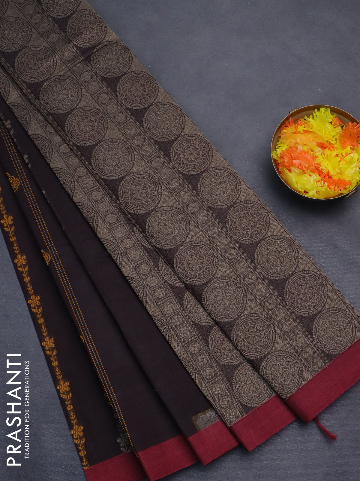 Nithyam cotton saree brown and maroon with allover thread weaves and simple border