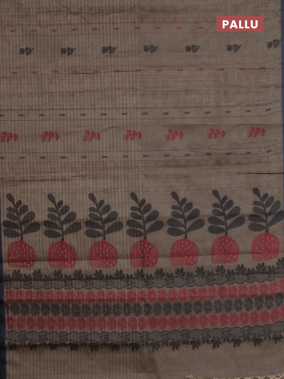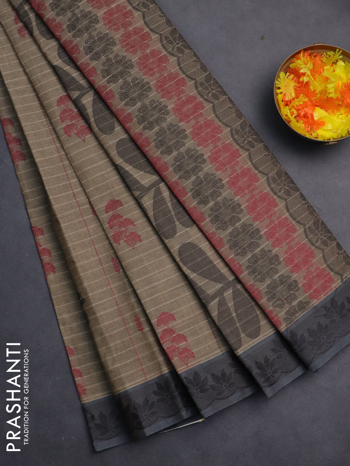 Nithyam cotton saree chikku shade and grey with allover thread checks & buttas and thread woven border