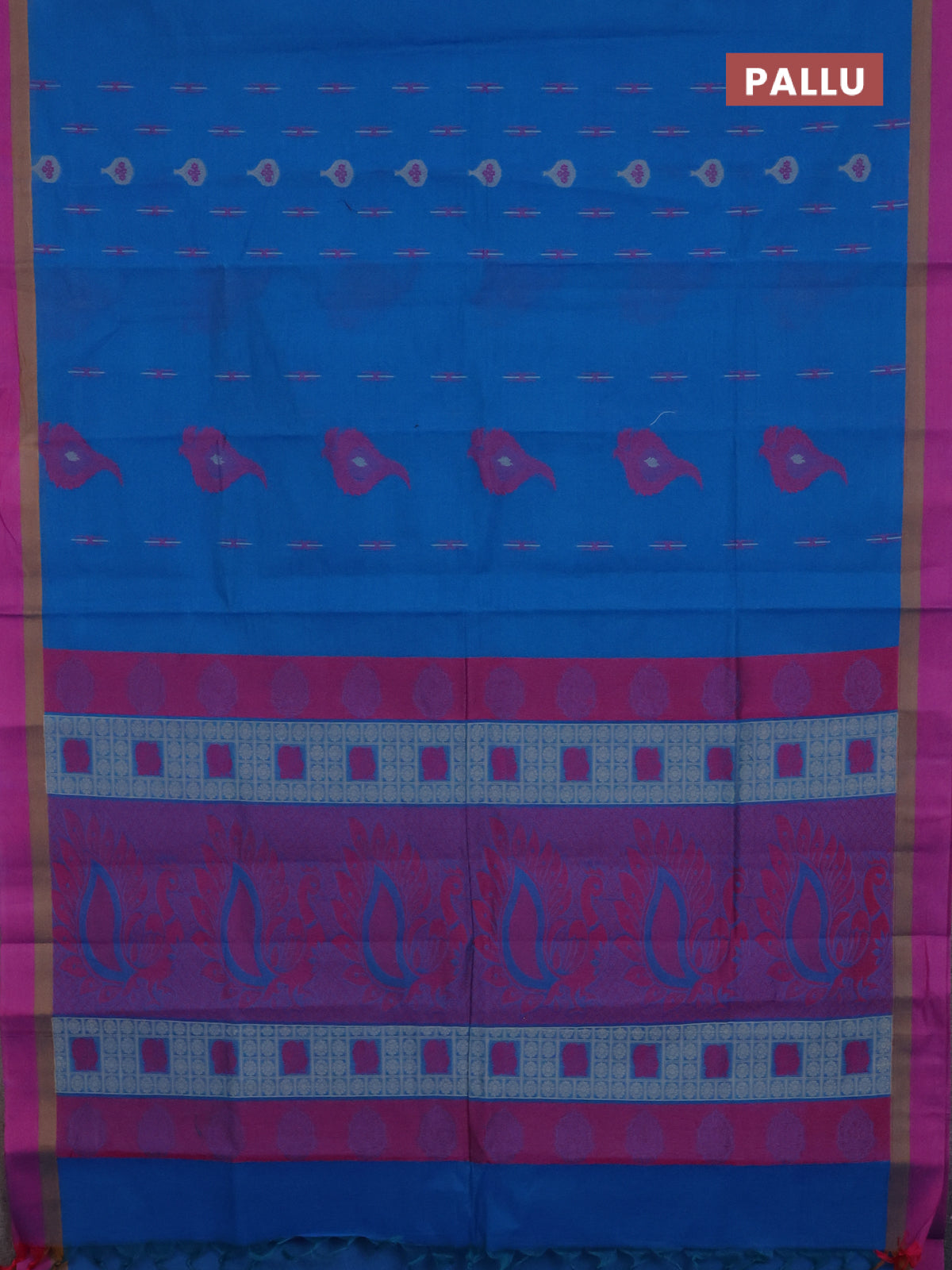 Nithyam cotton saree cs blue and pink shade with thread woven buttas and simple border