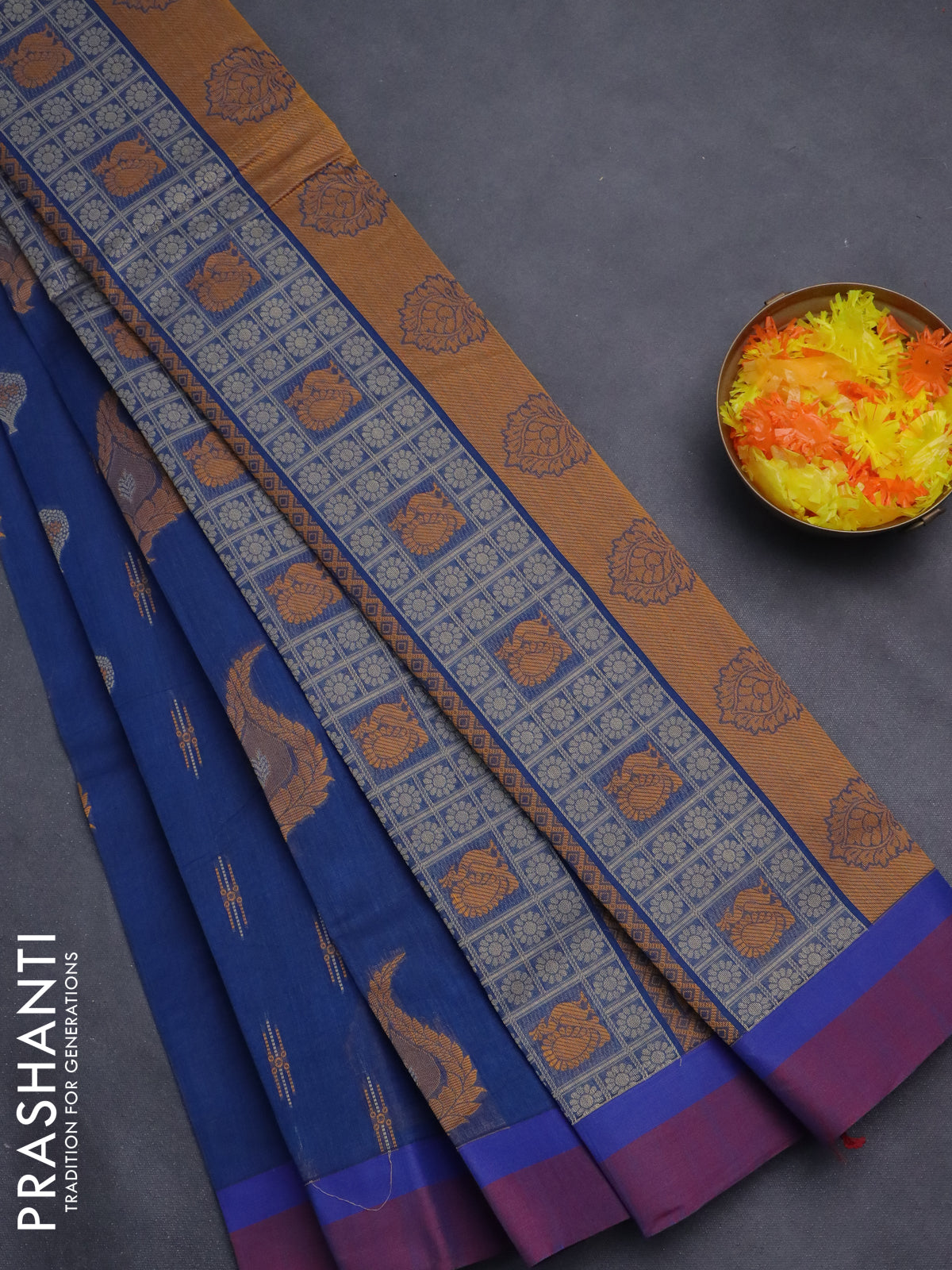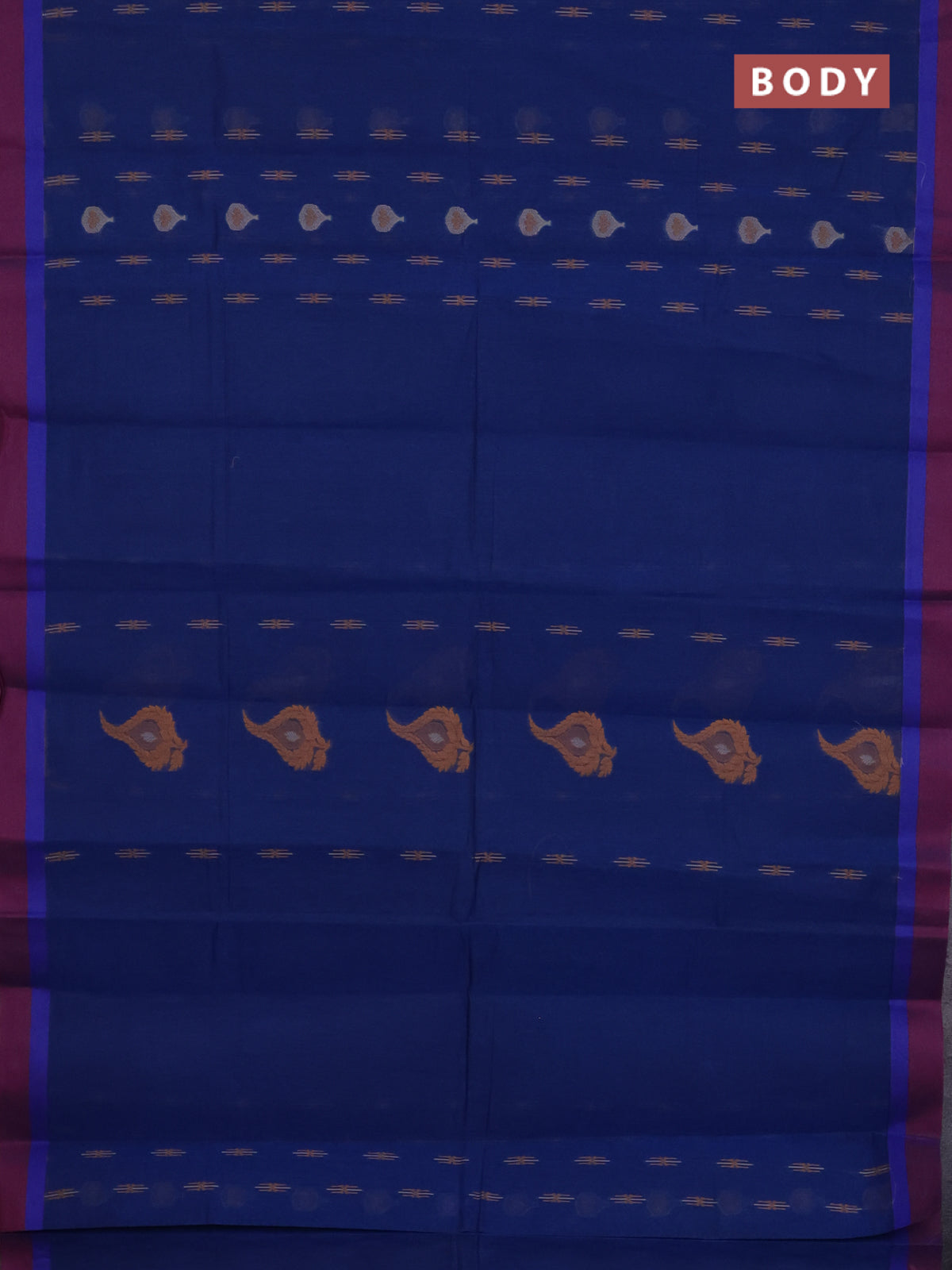 Nithyam cotton saree dark blue and dual shade of maroon with thread woven buttas and simple border