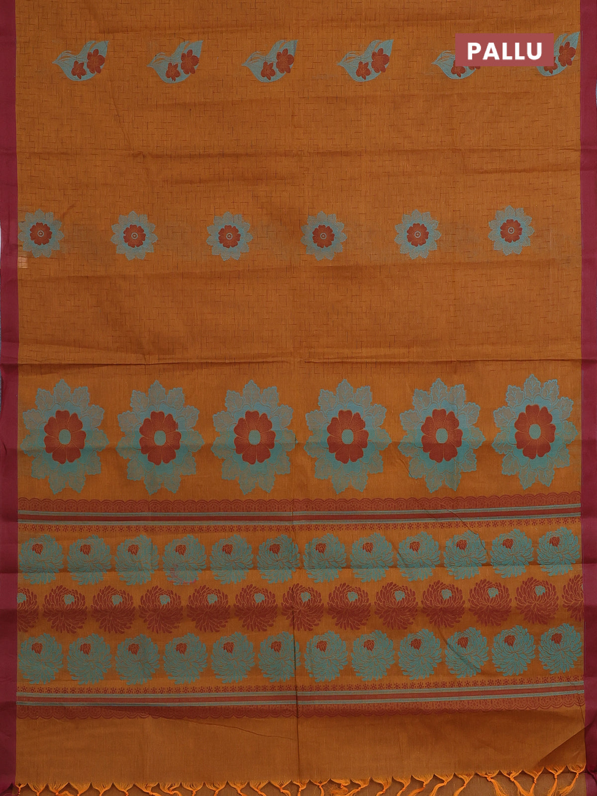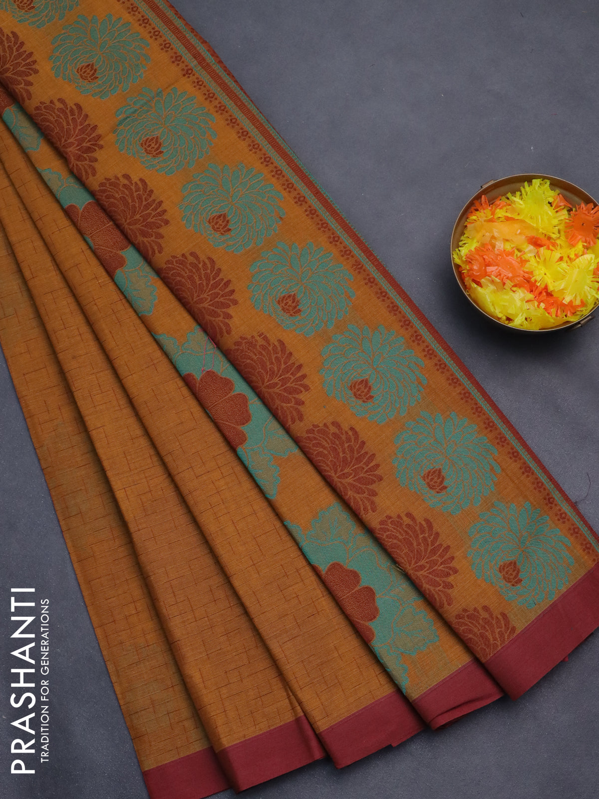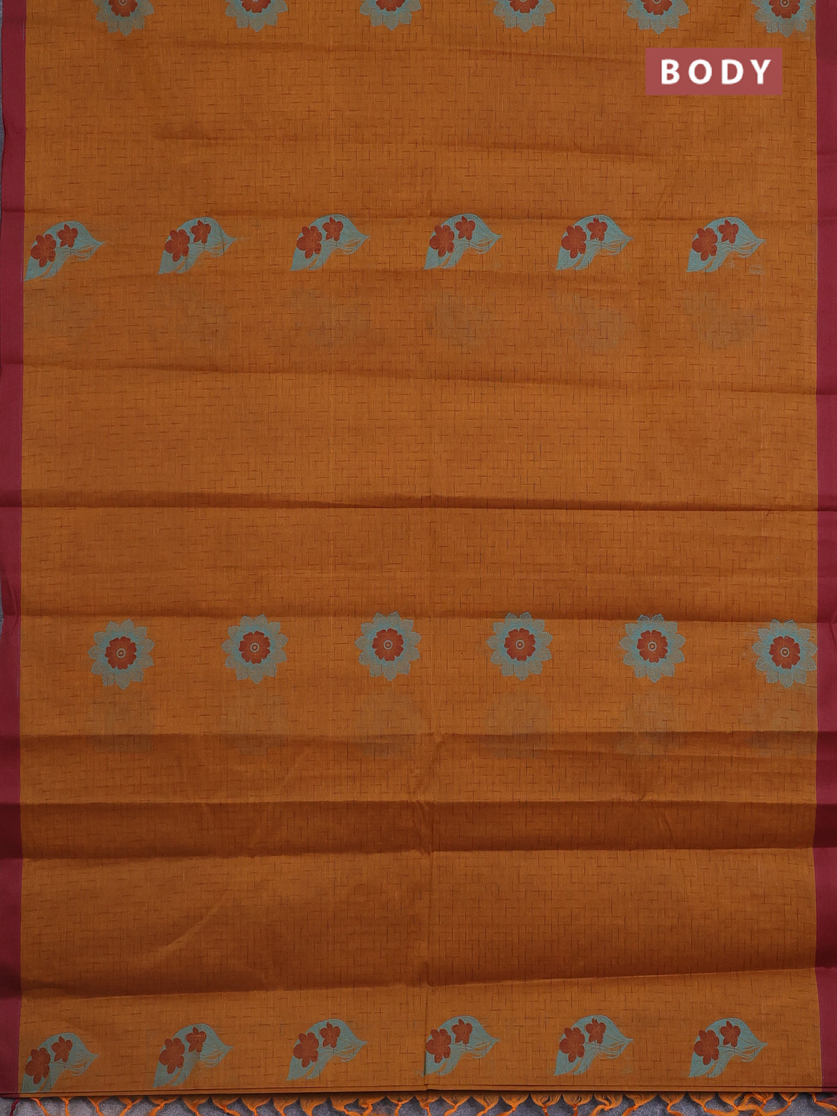 Nithyam cotton saree dark mustard and maroon with allover thread weaves and simple border