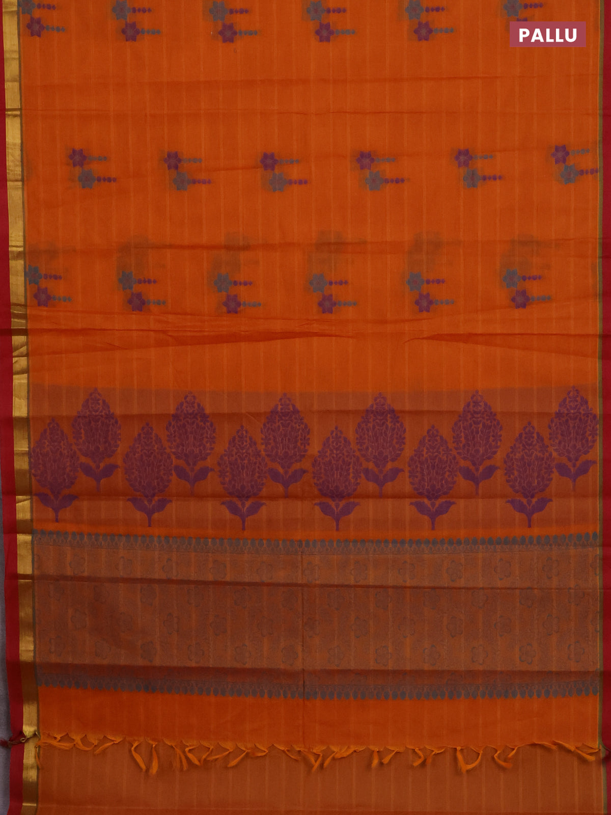Nithyam cotton saree dark mustard and maroon with thread woven buttas and zari woven simple border