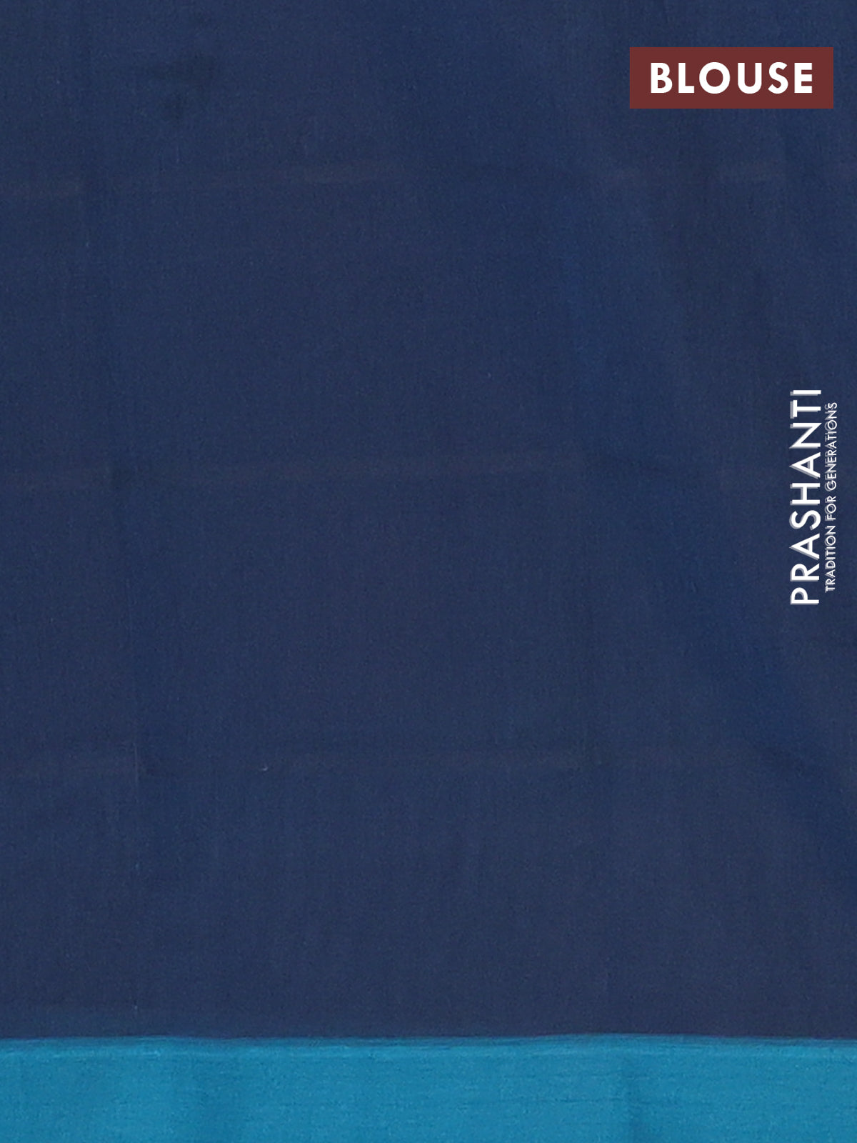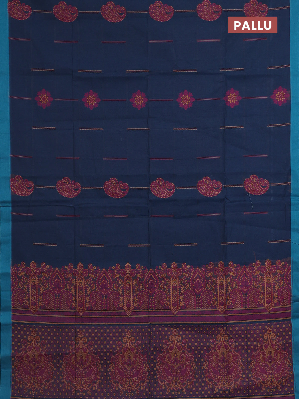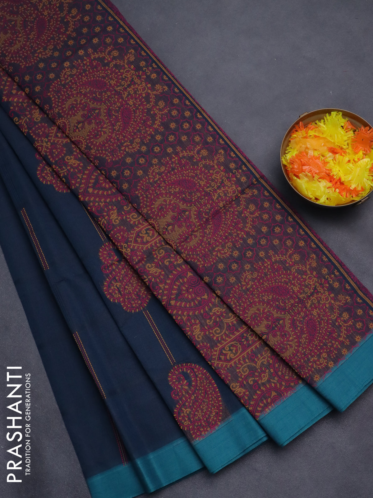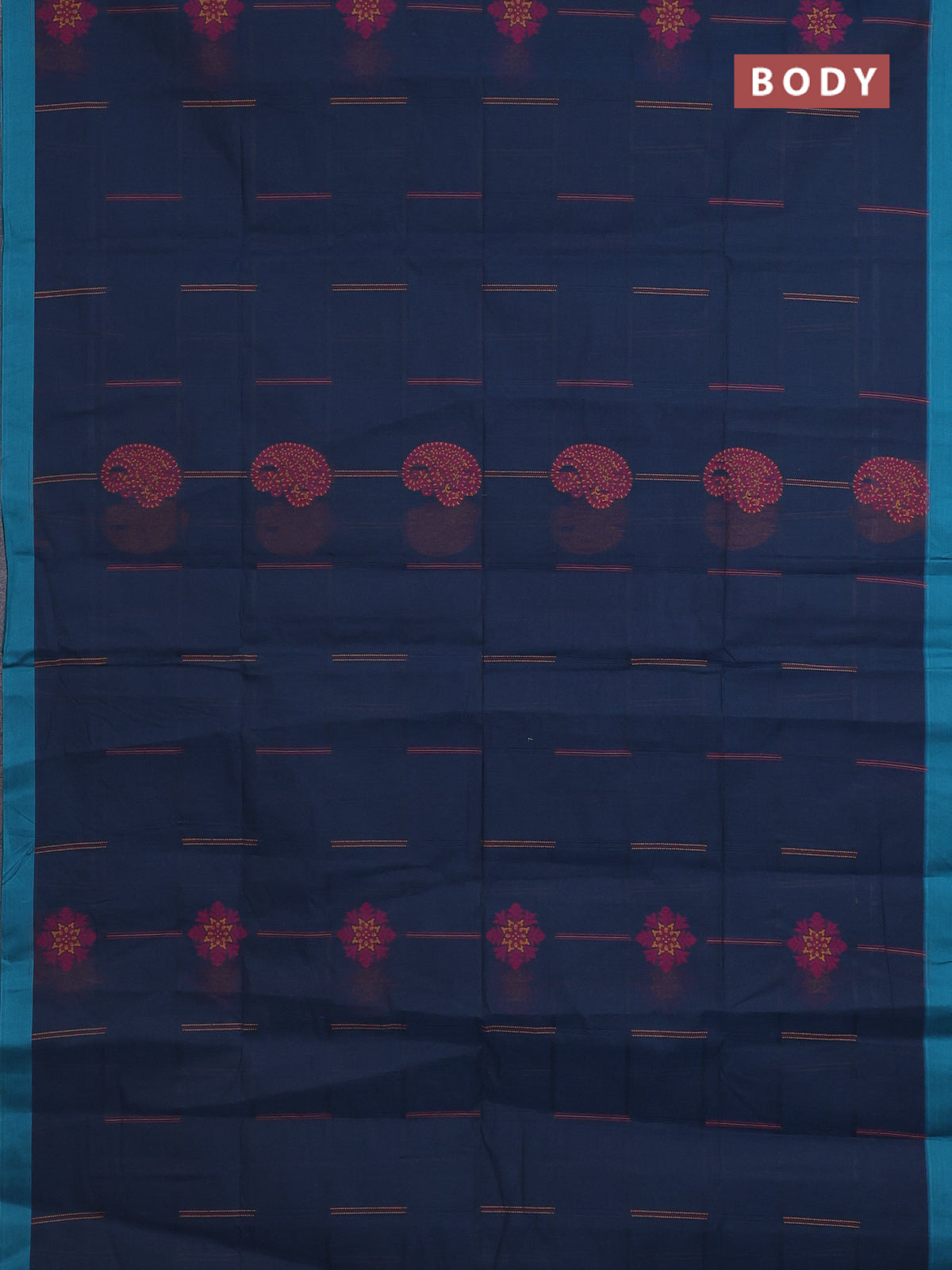 Nithyam cotton saree dark peacock blue and teal blue with thread woven buttas and simple border