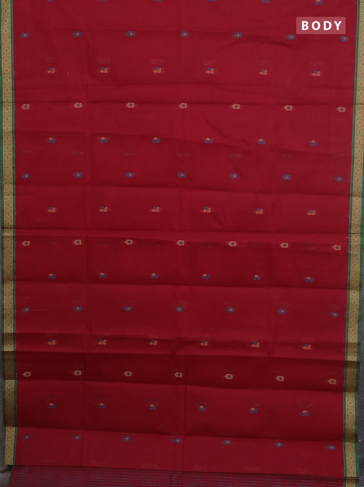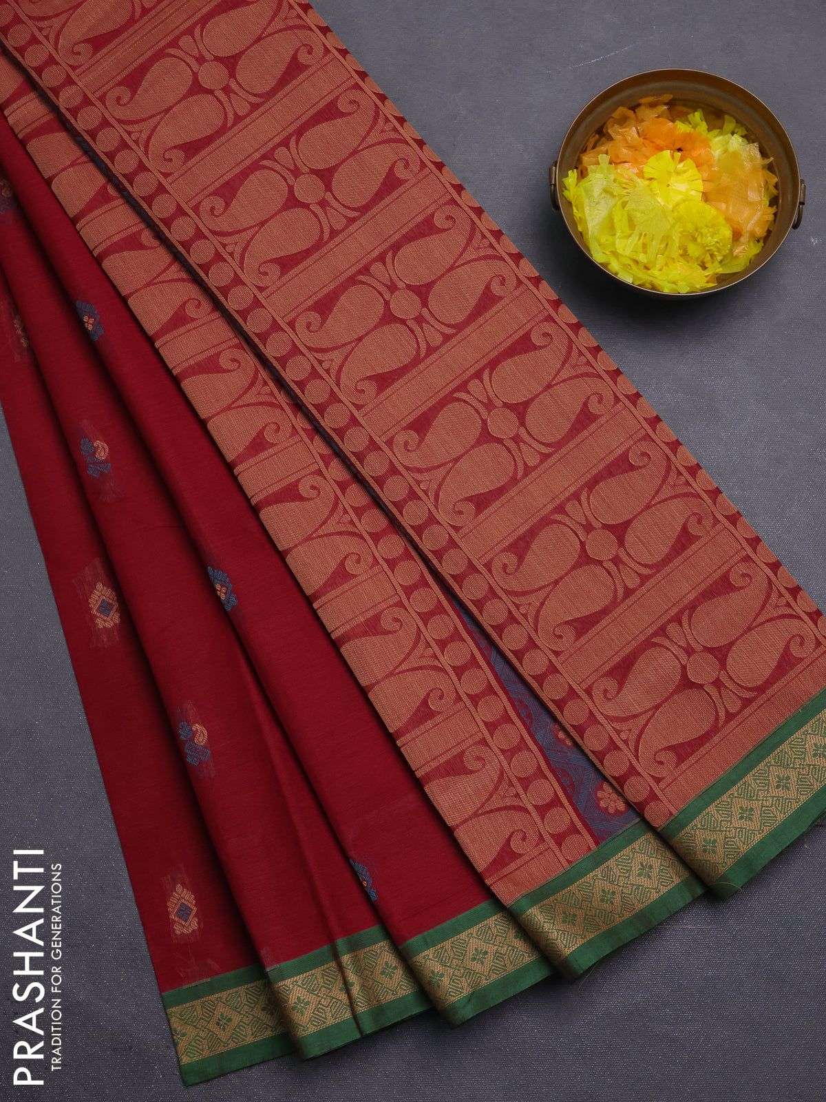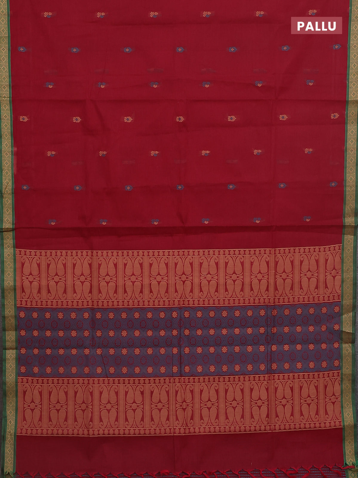Nithyam cotton saree deep maroon and green with thread woven buttas and thread woven border