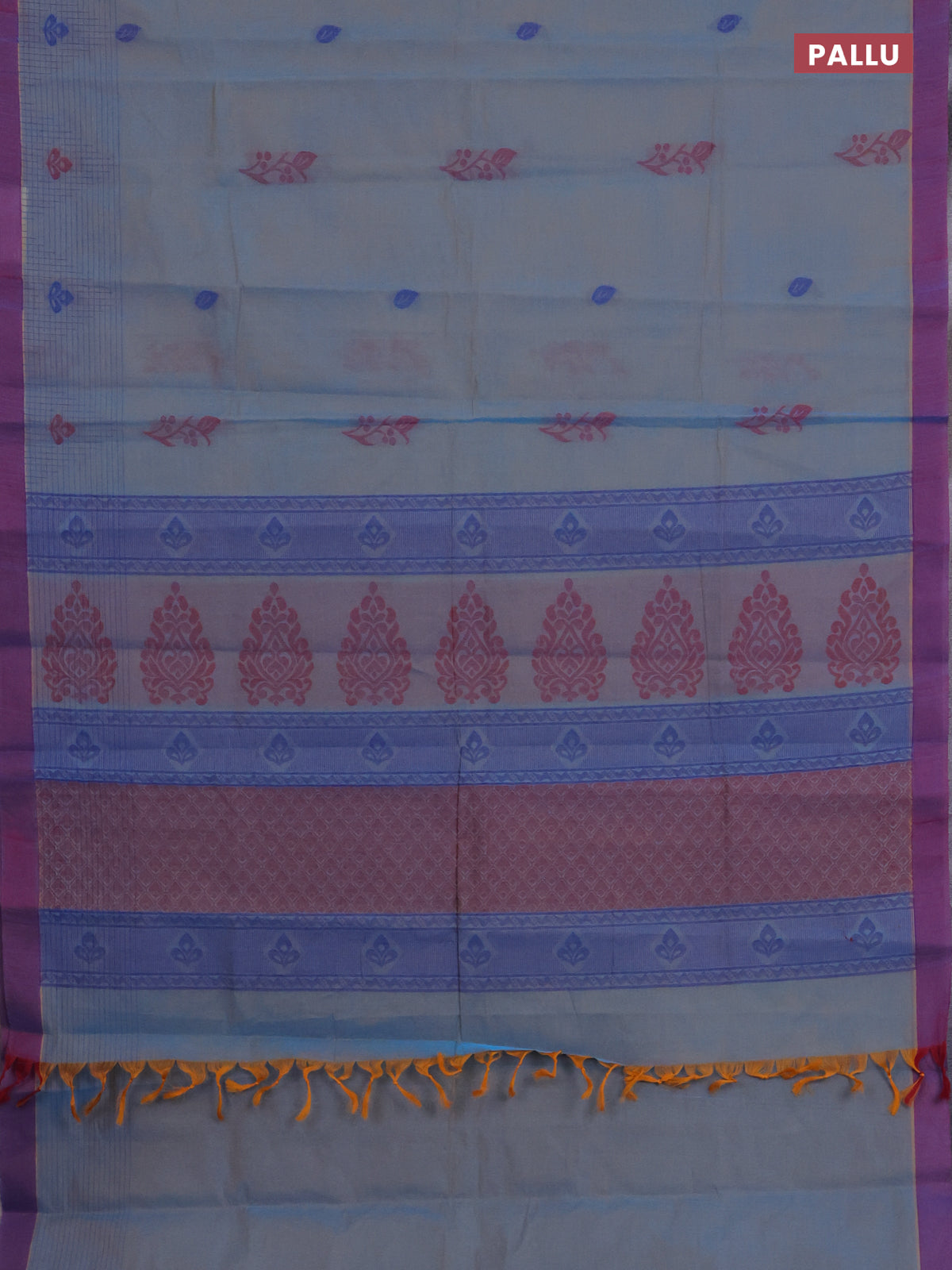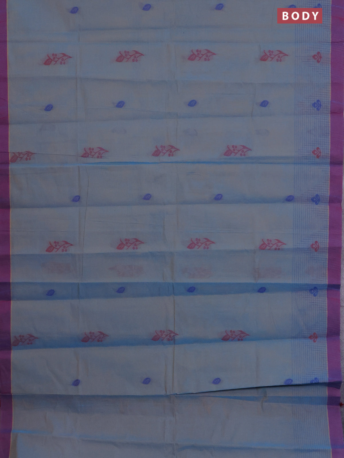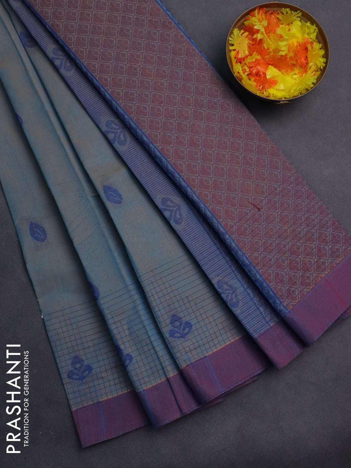 Nithyam cotton saree dual shade of blue and dual shade of maroon with thread woven buttas and simple border