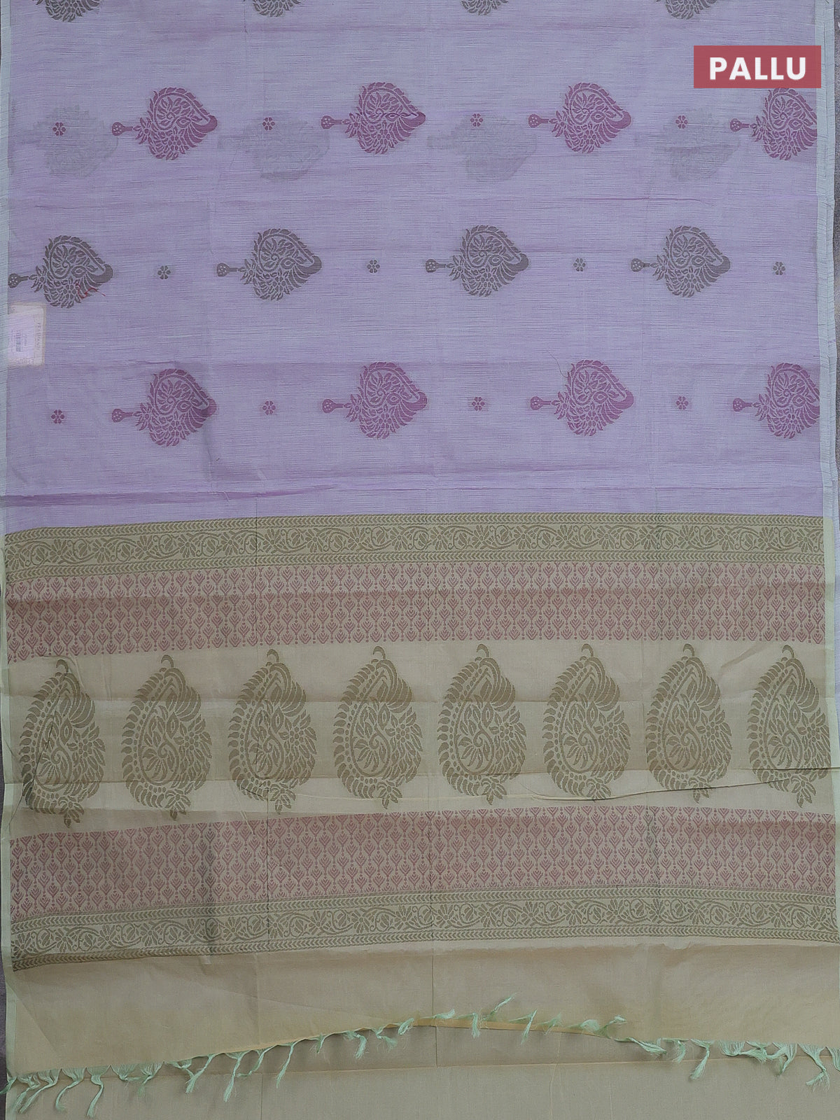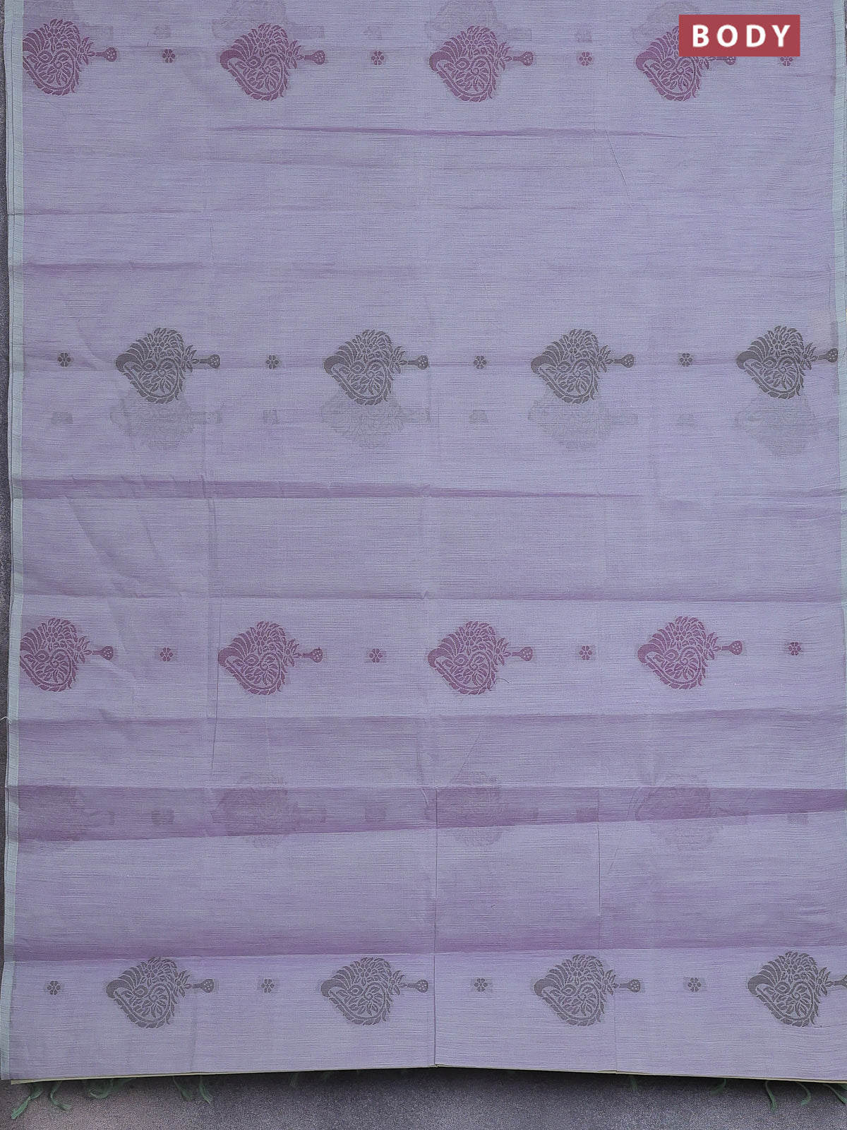 Nithyam cotton saree dual shade of lavender and green shade with thread woven buttas in borderless style