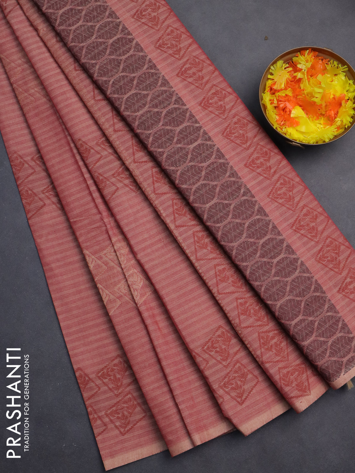 Nithyam cotton saree dual shade of pink with thread & zari woven buttas in borderless style