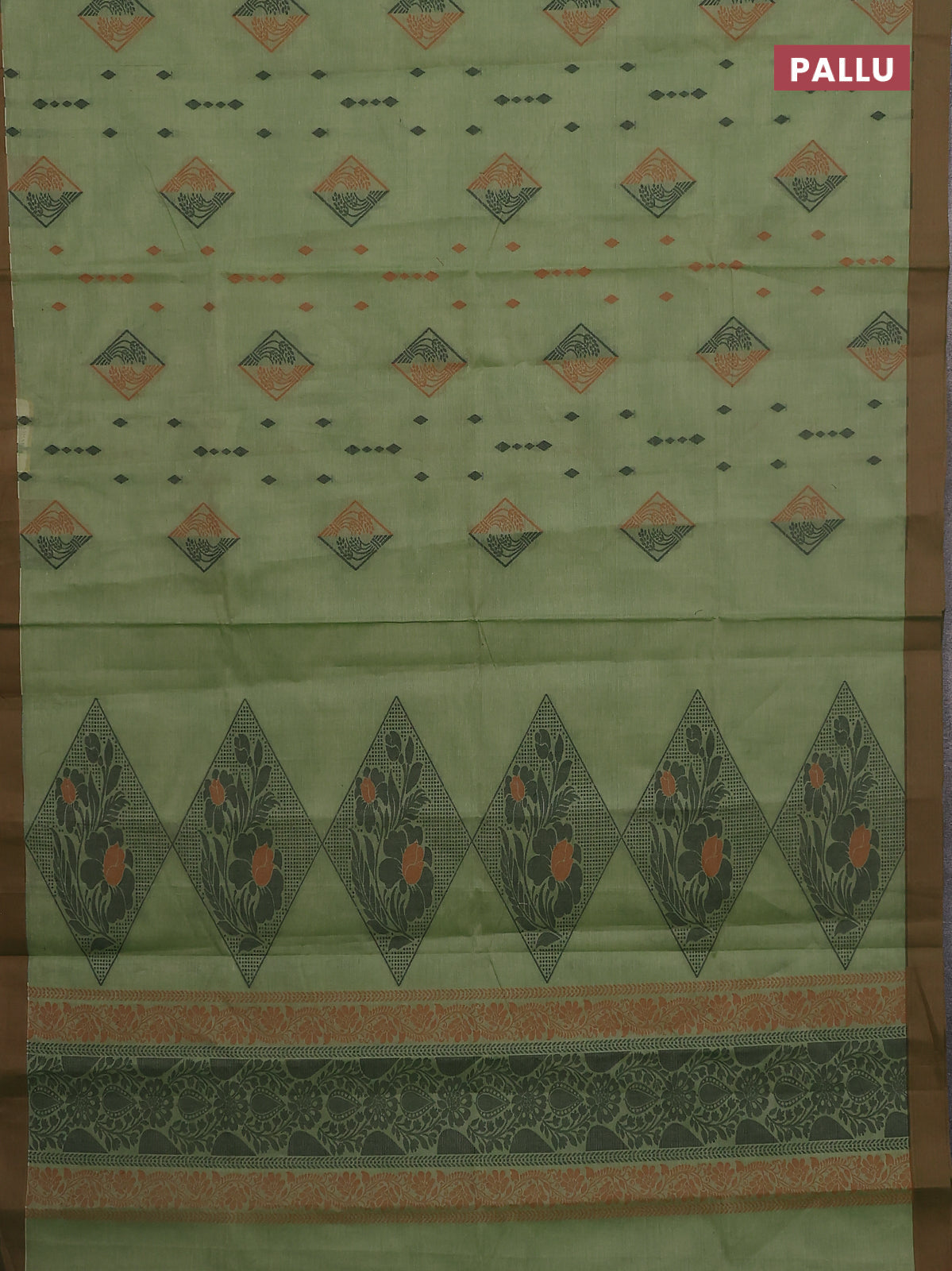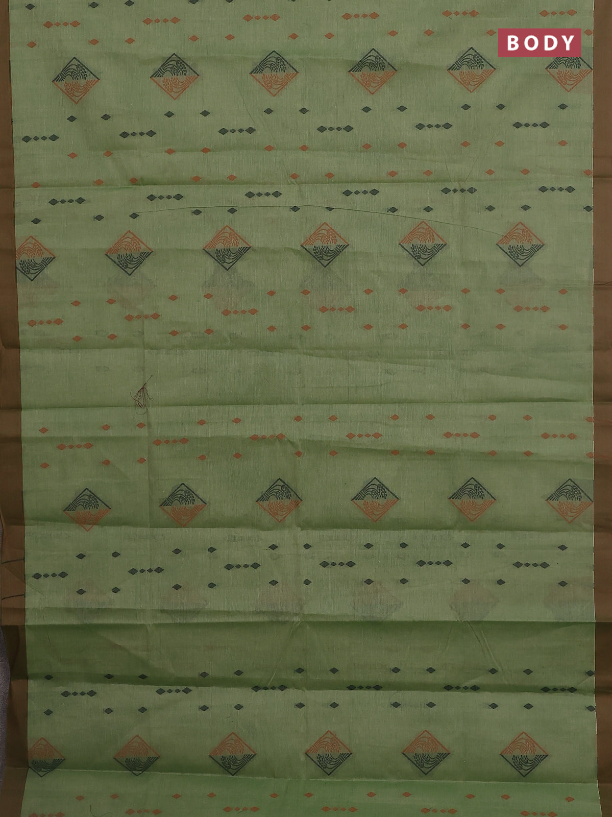Nithyam cotton saree elaichi green and brown with thread woven geometric buttas and simple border