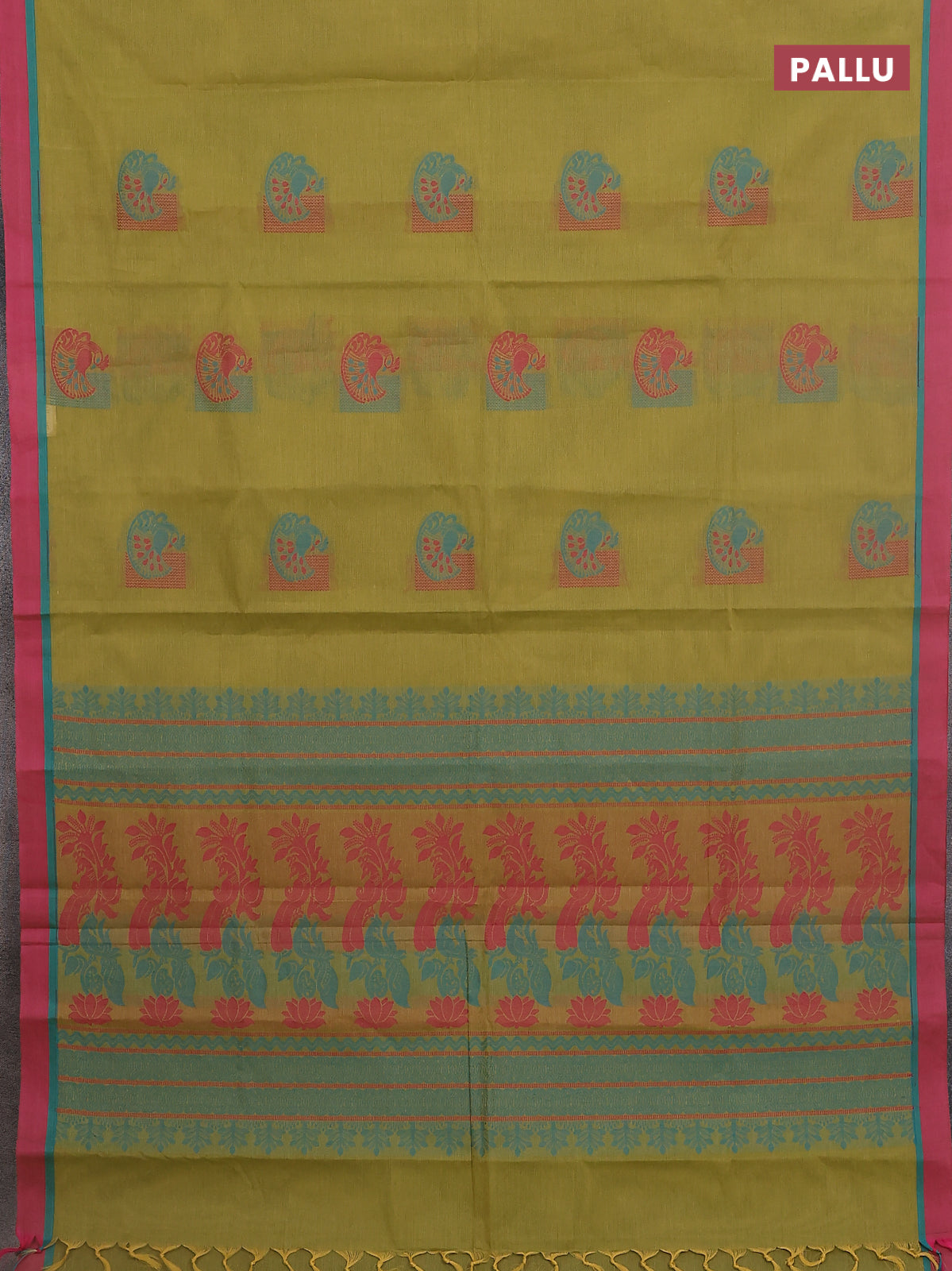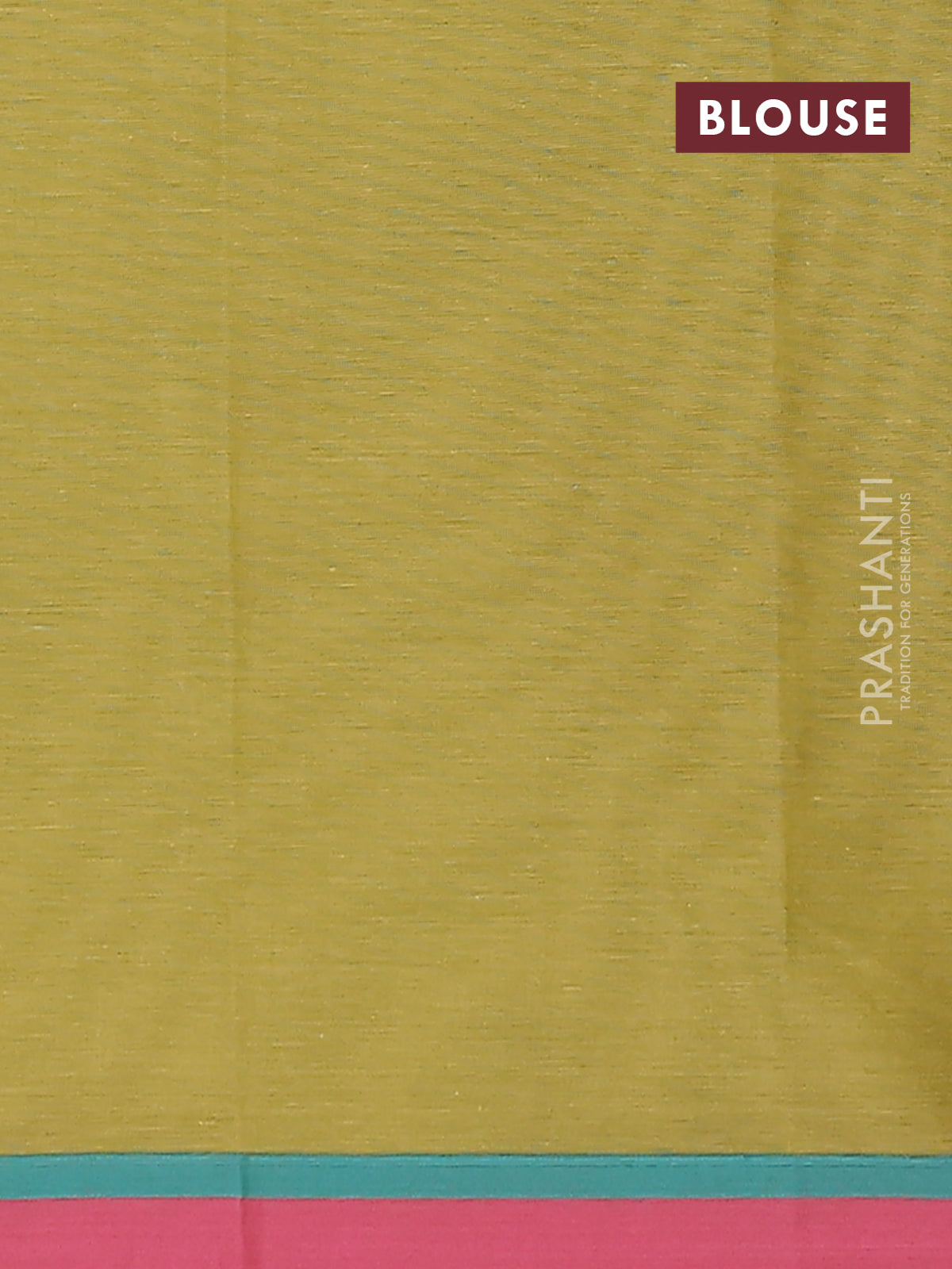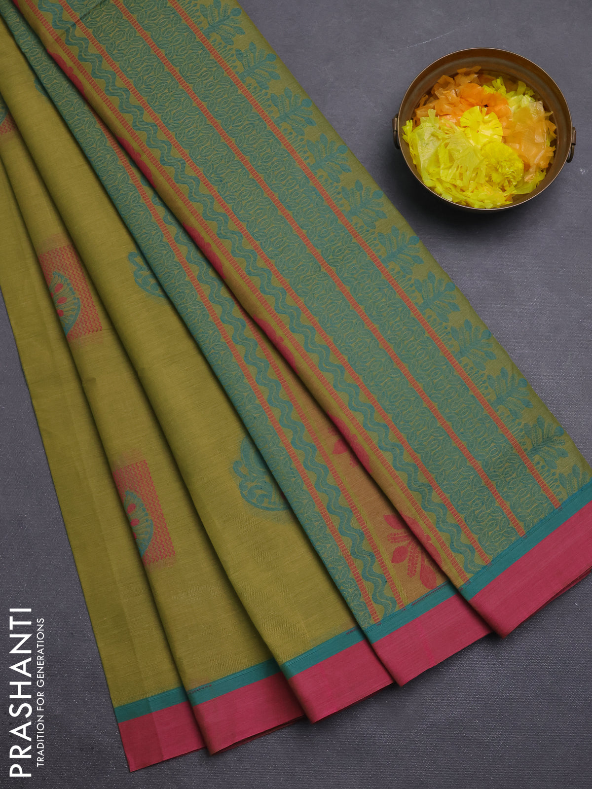 Nithyam cotton saree elaichi green and pink with thread woven buttas and simple border