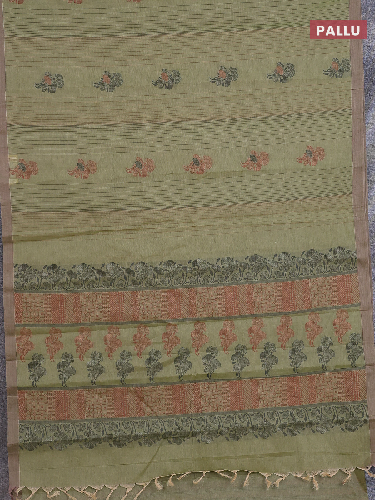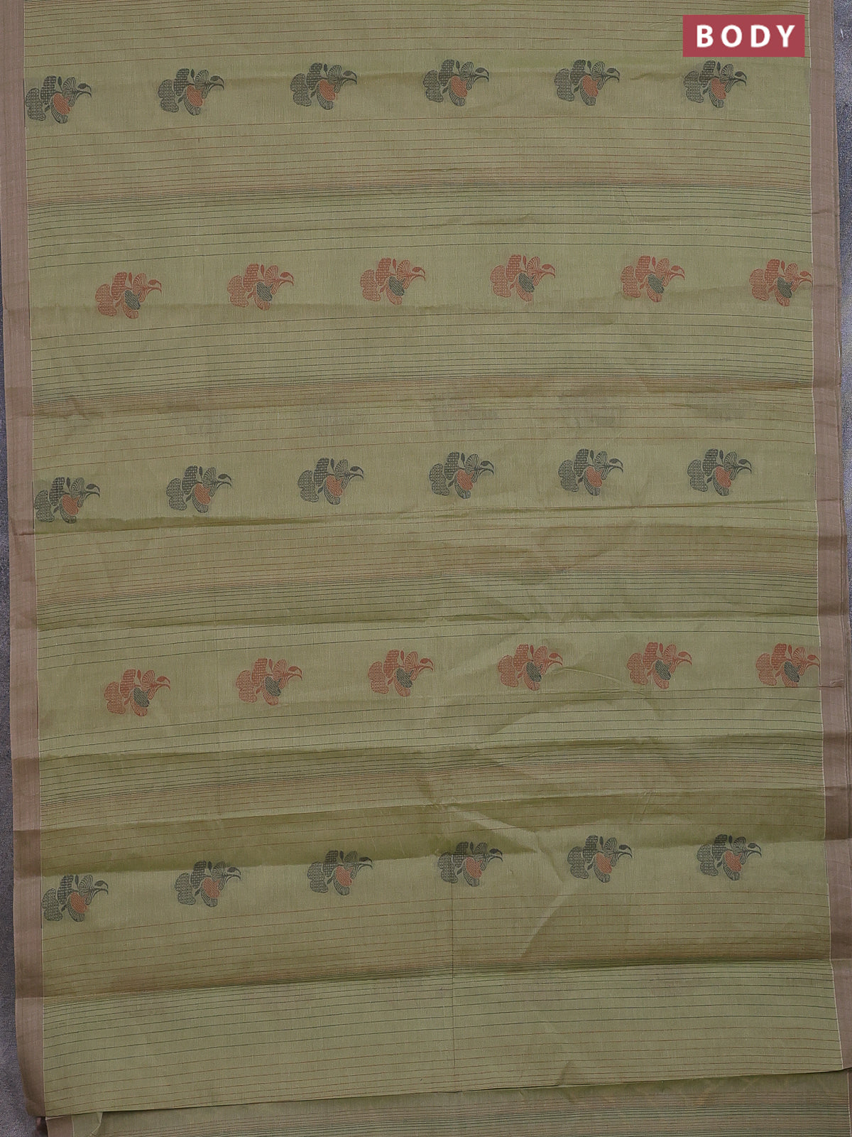 Nithyam cotton saree elaichi green with allover thread weaves & buttas and simple border