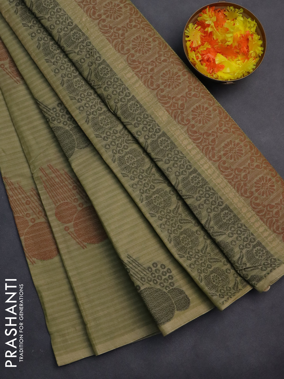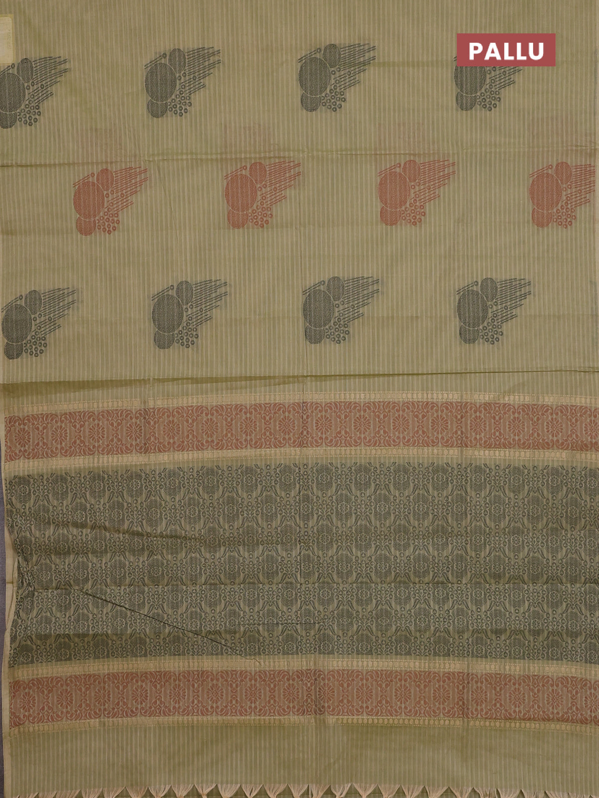 Nithyam cotton saree elaichi green with thread woven buttas in borderless style
