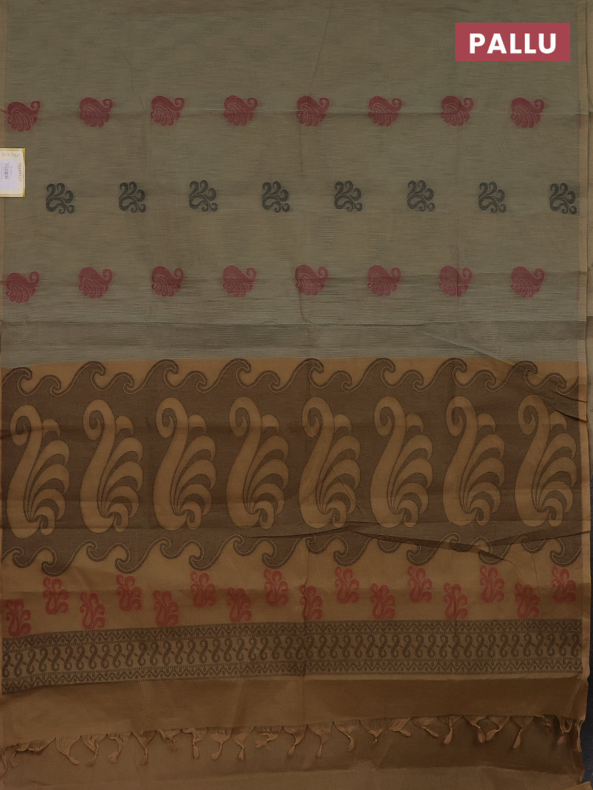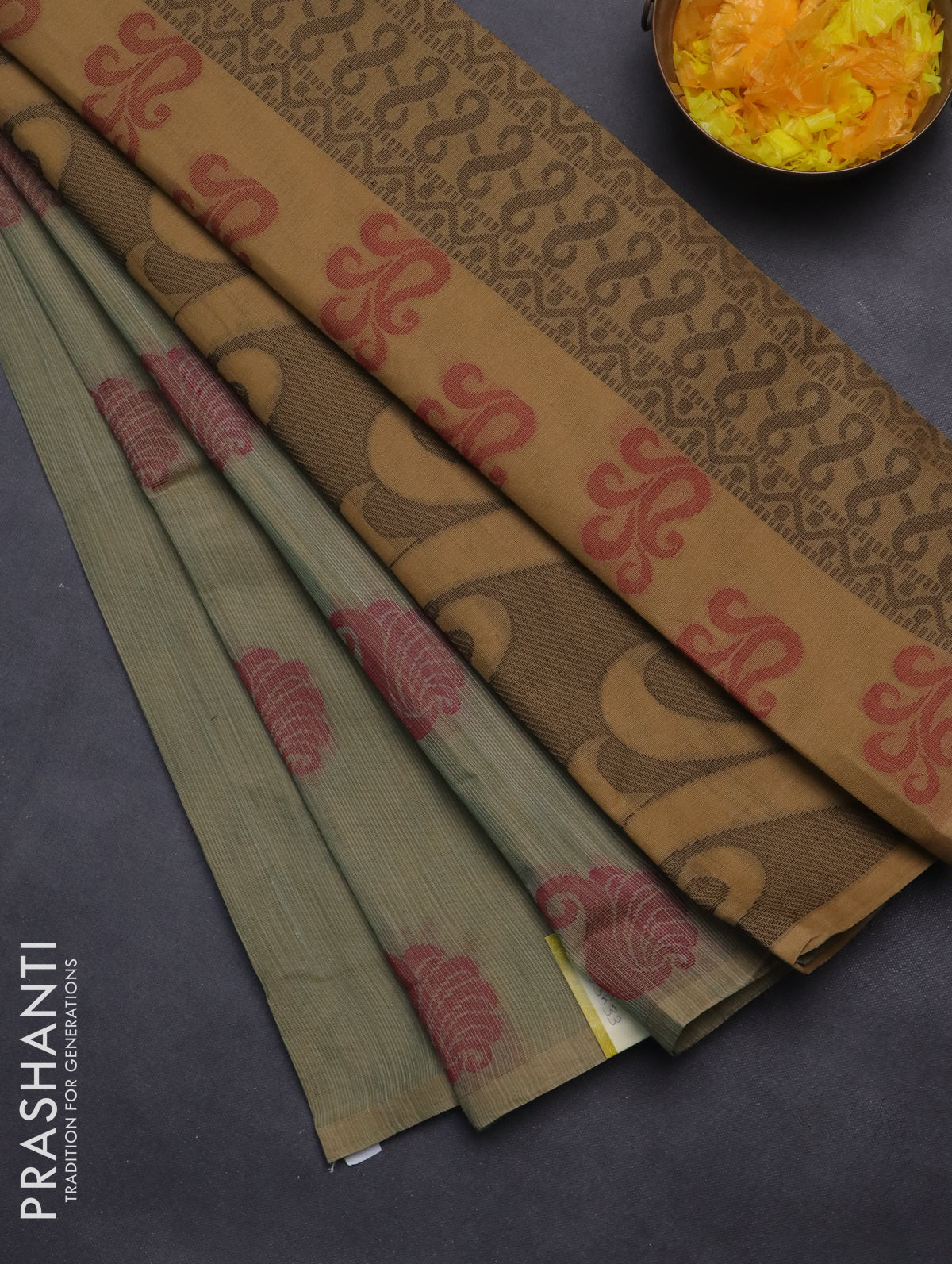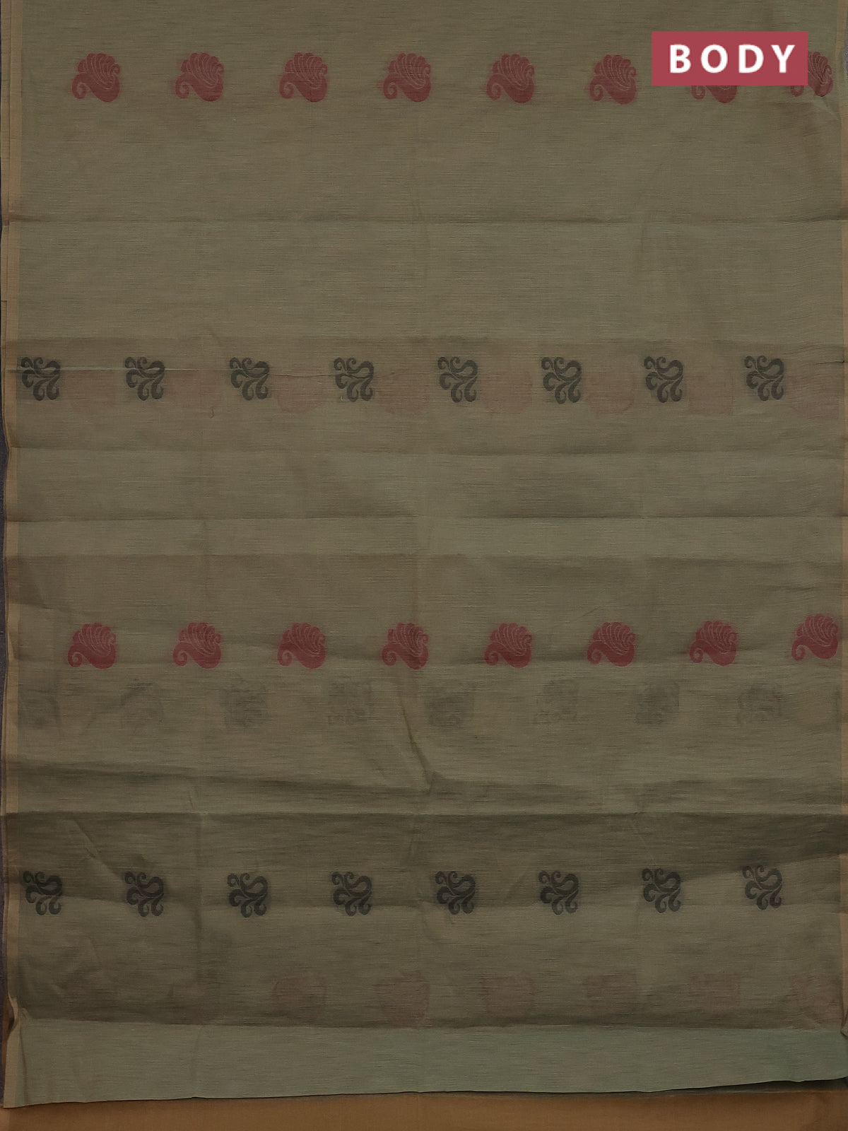 Nithyam cotton saree elaichi green with thread woven buttas in borderless style