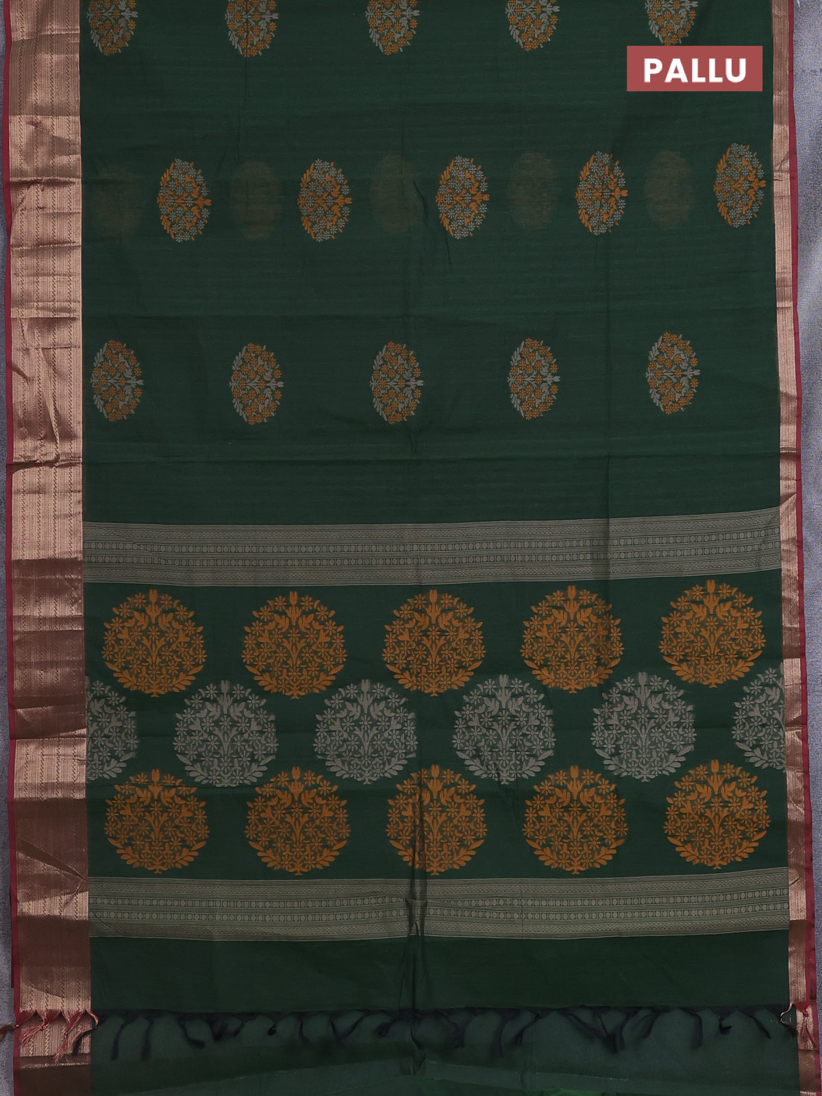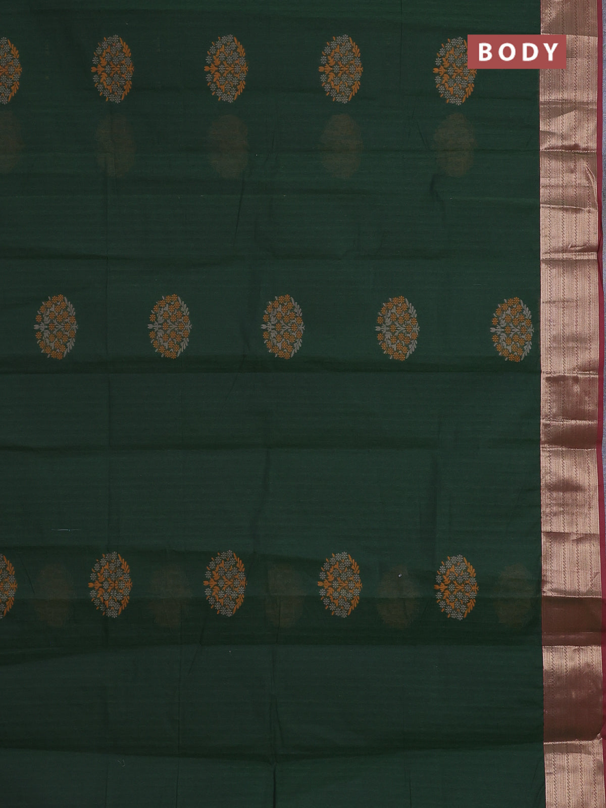 Nithyam cotton saree green and dual shade of pink with allover self emboss & thread woven buttas and thread woven border