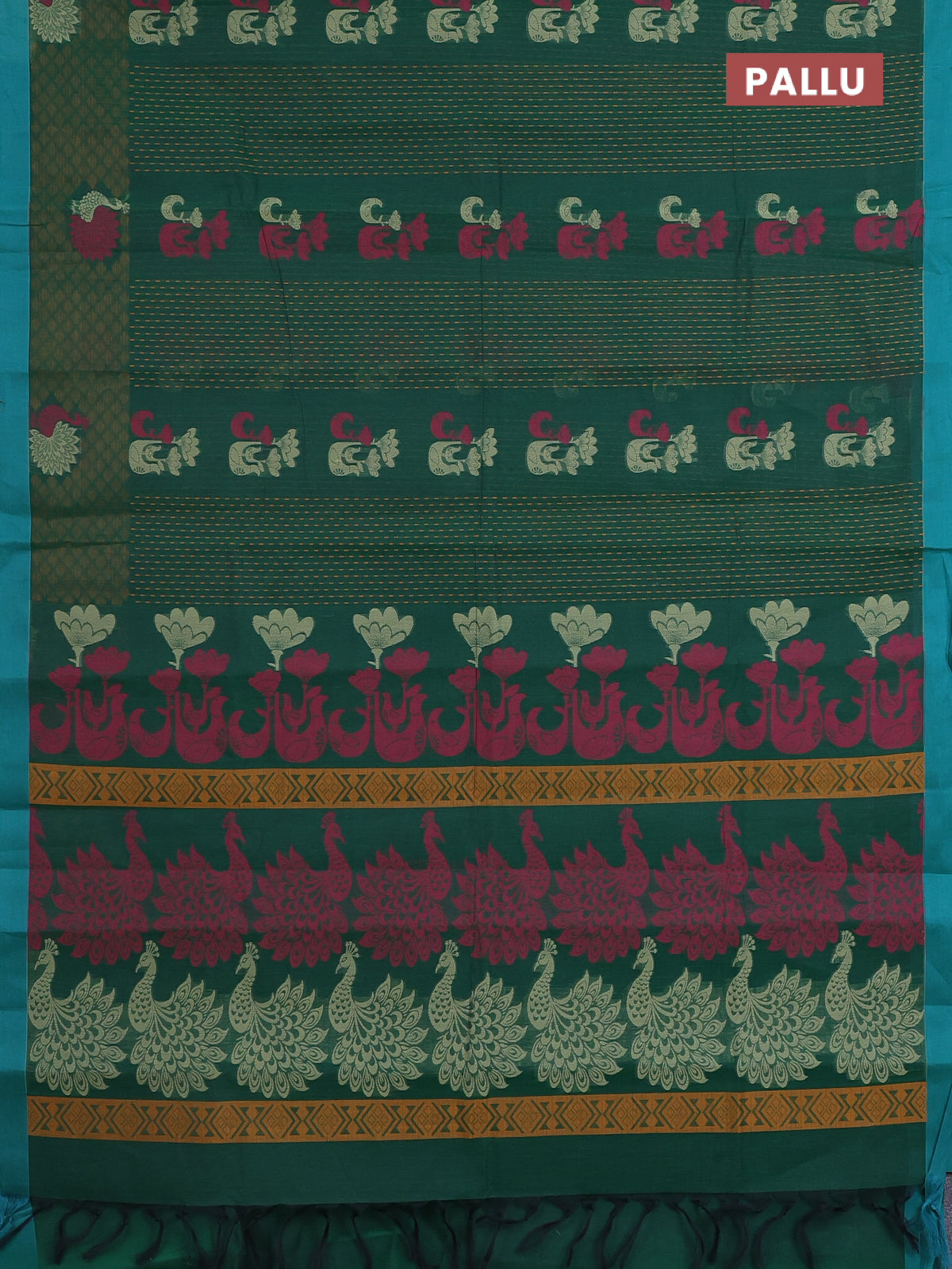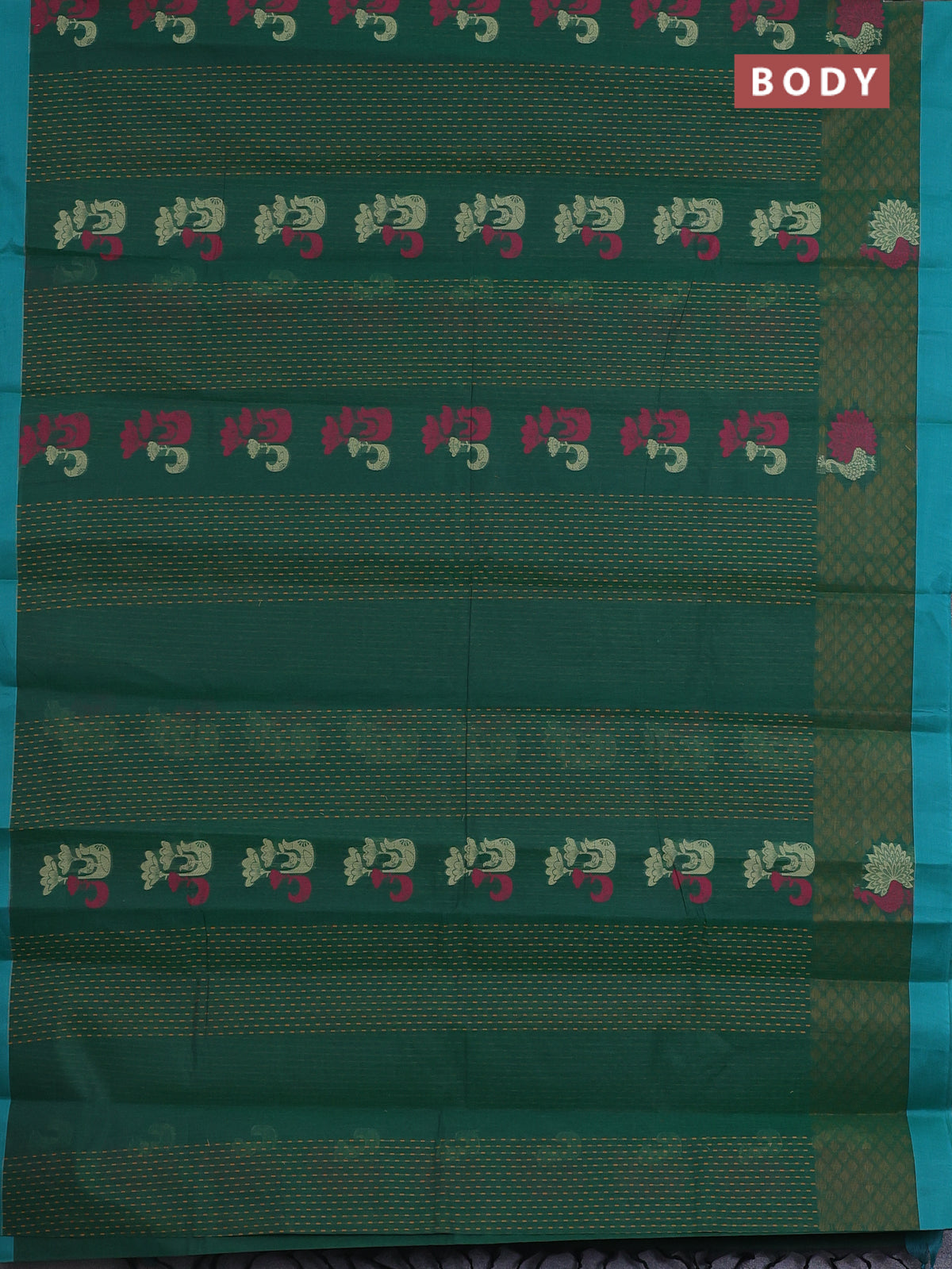 Nithyam cotton saree green and teal blue with allover thread weaves and simple border