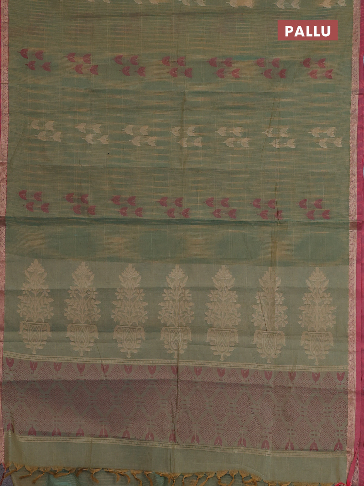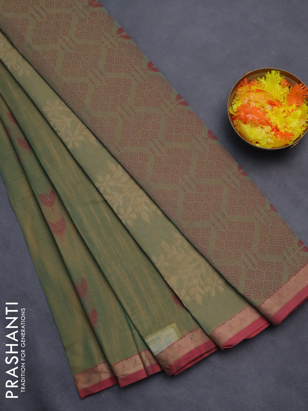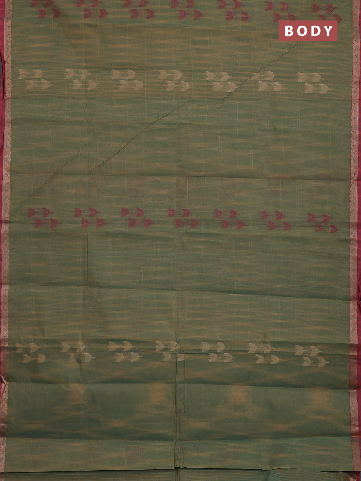 Nithyam cotton saree green shade and maroon with thread woven buttas and thread woven border