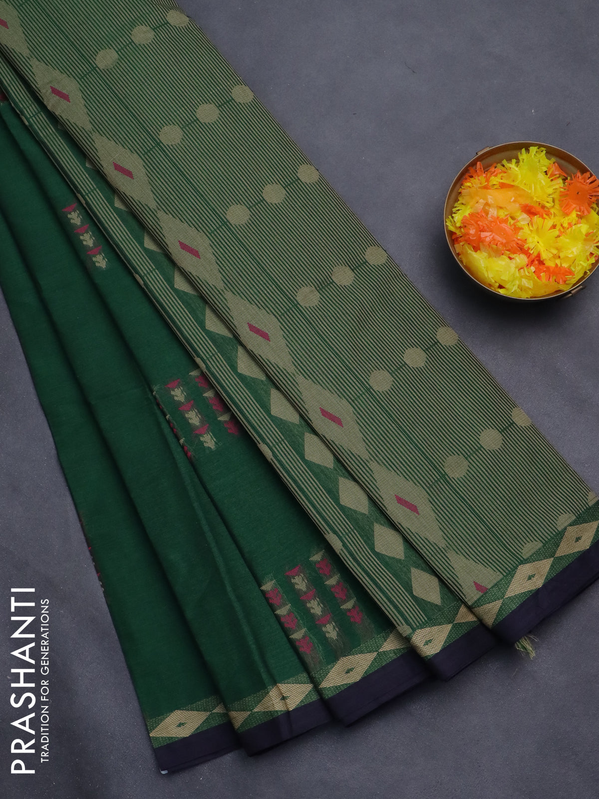 Nithyam cotton saree green with thread woven buttas and thread woven border