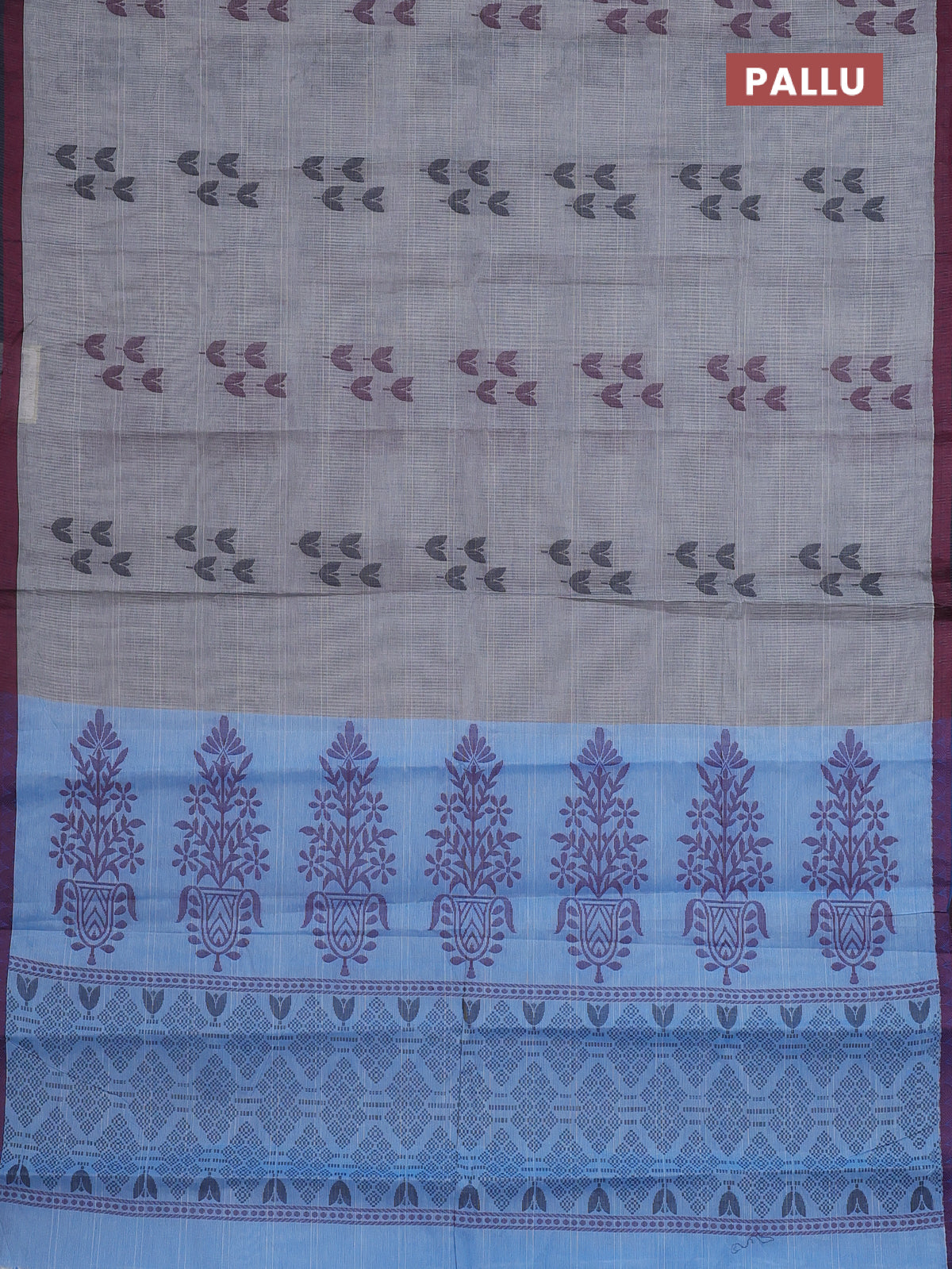 Nithyam cotton saree grey and black with thread woven buttas and thread woven border