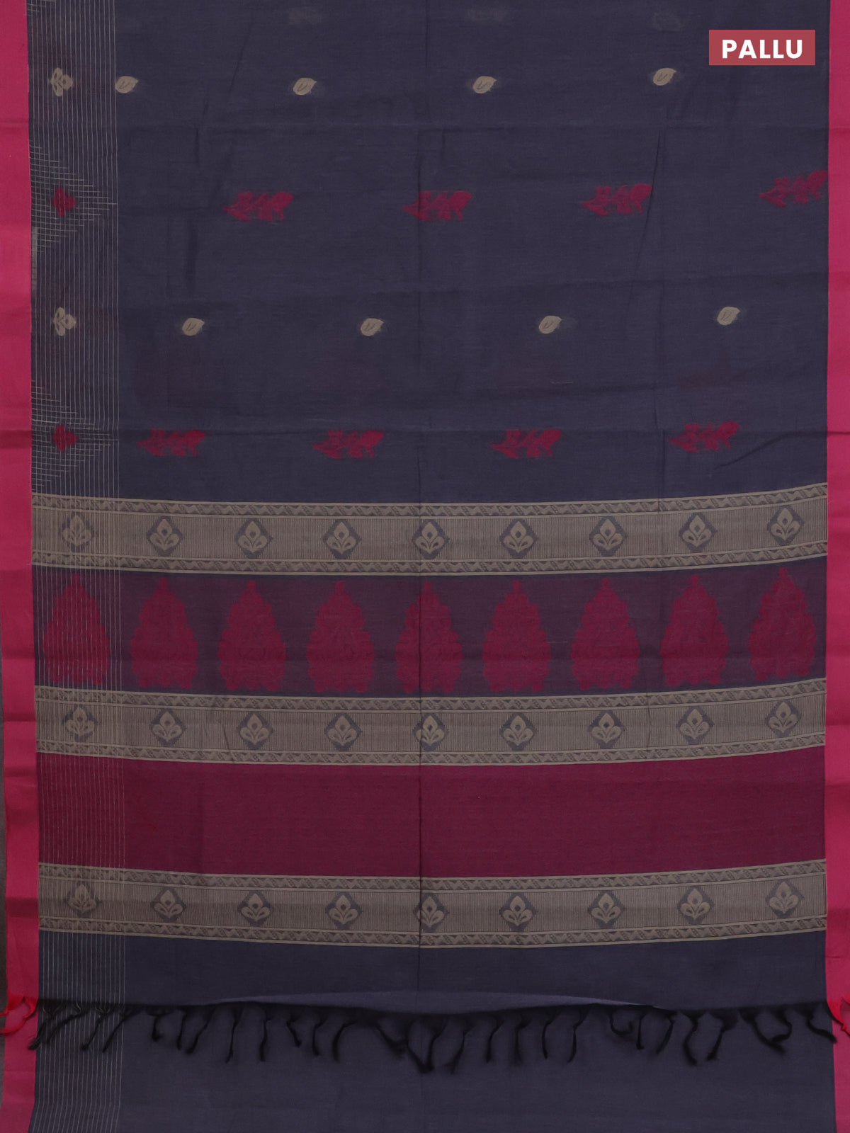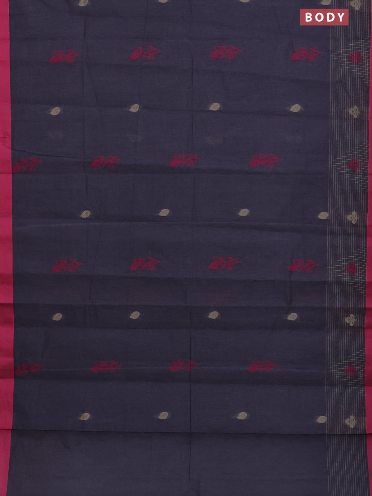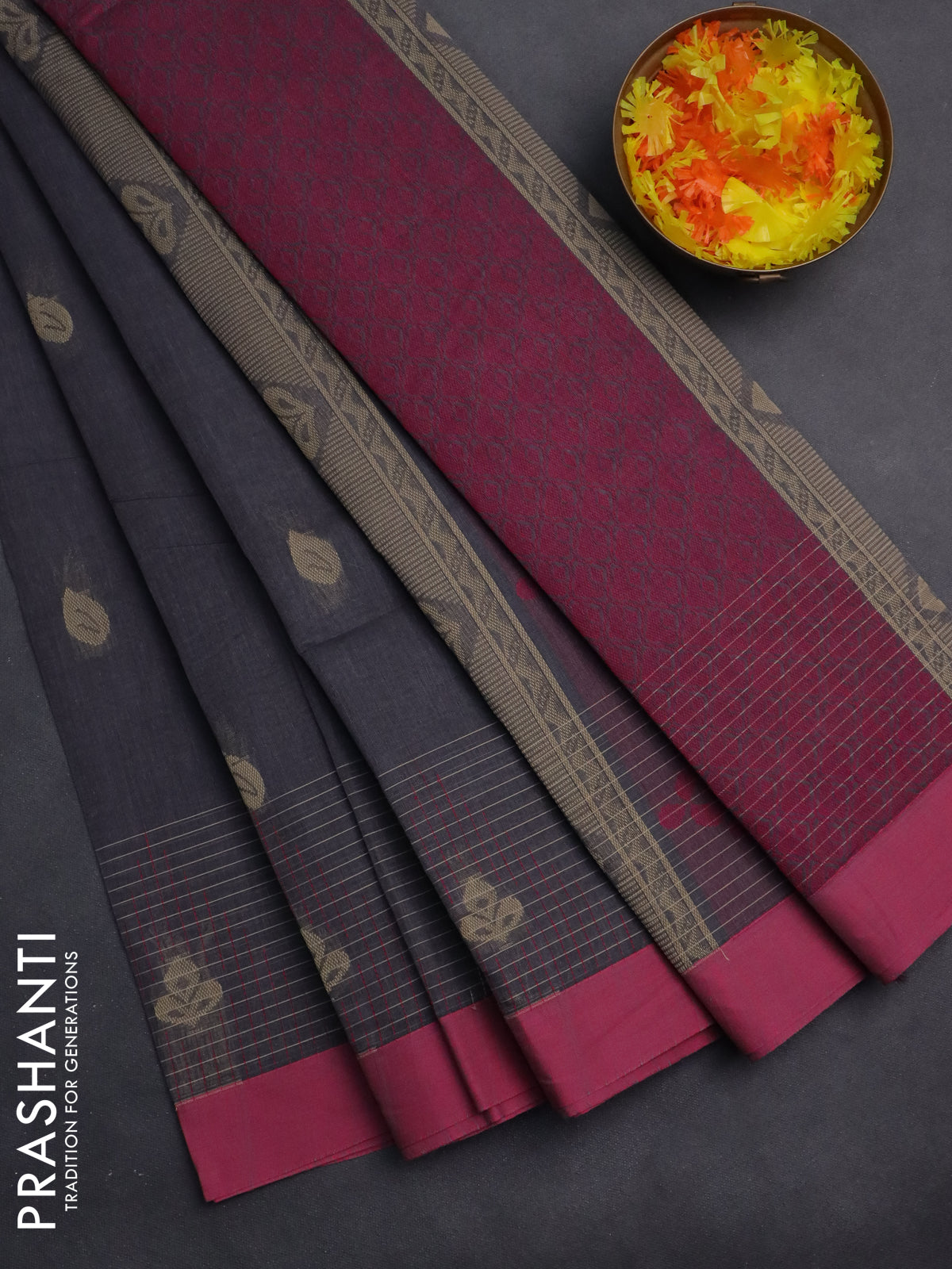 Nithyam cotton saree grey and pink with thread woven buttas and simple border
