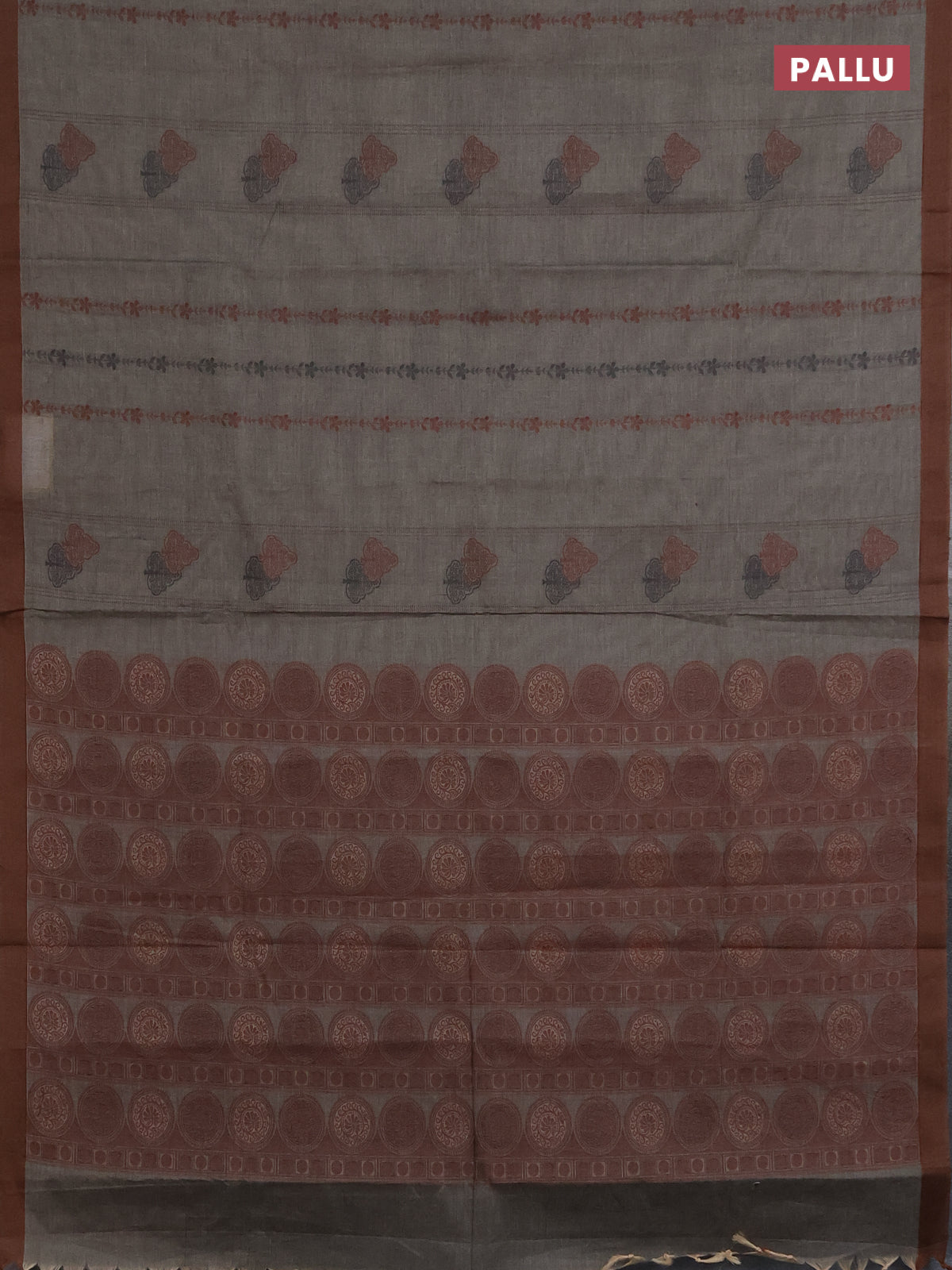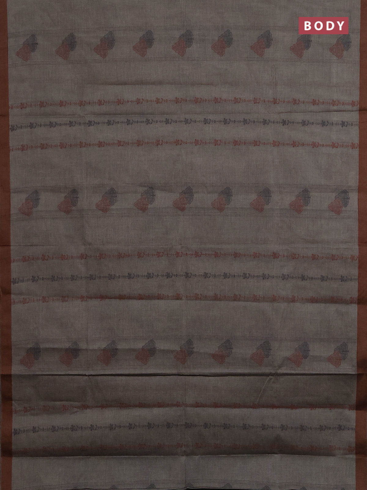 Nithyam cotton saree grey shade and brown with allover thread weaves & buttas and simple border