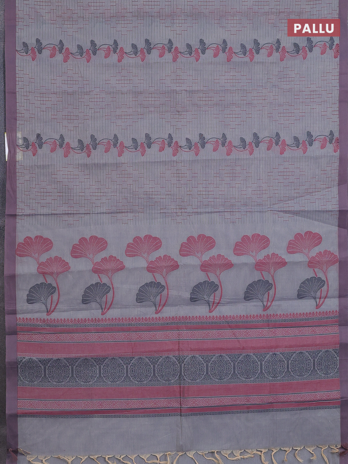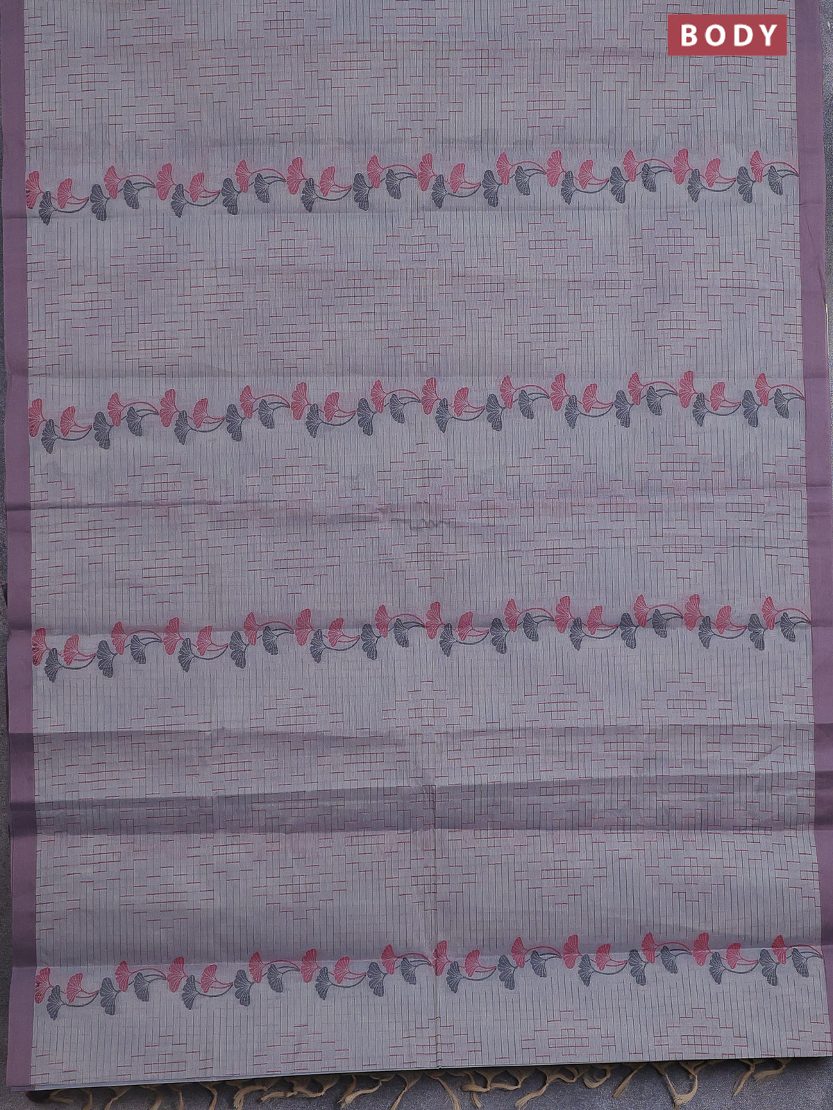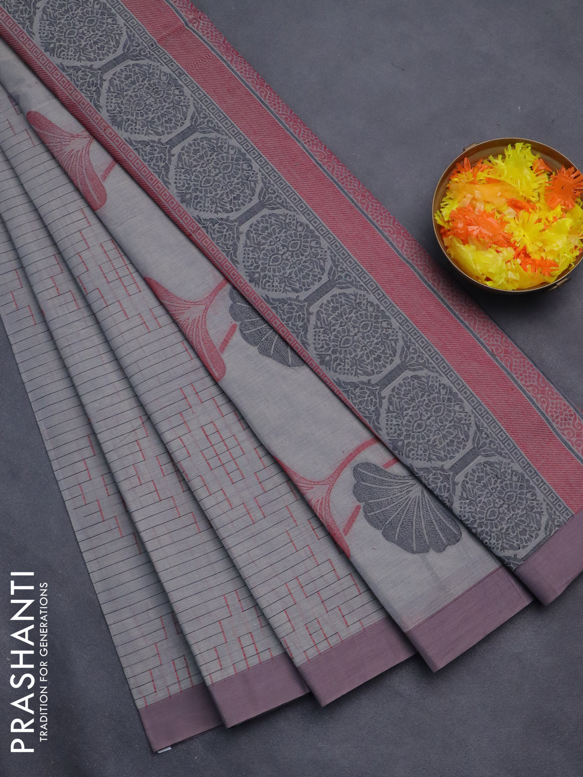 Nithyam cotton saree grey with allover thread weaves and simple border