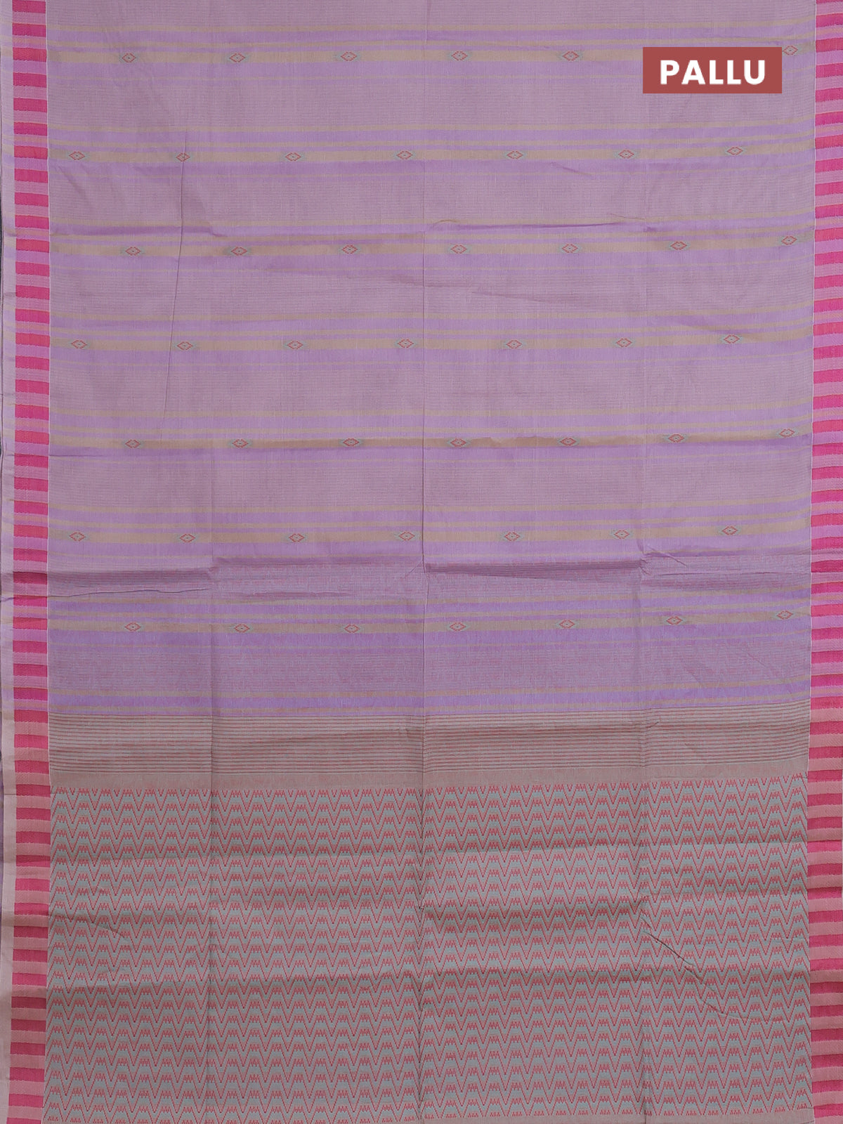 Nithyam cotton saree lavender shade and sandal with allover stripe & ikat thread buttas and thread woven border