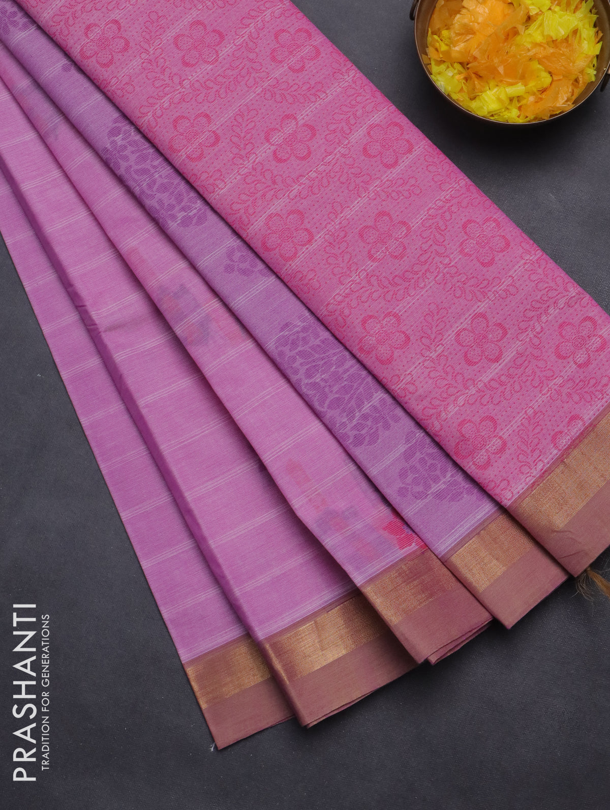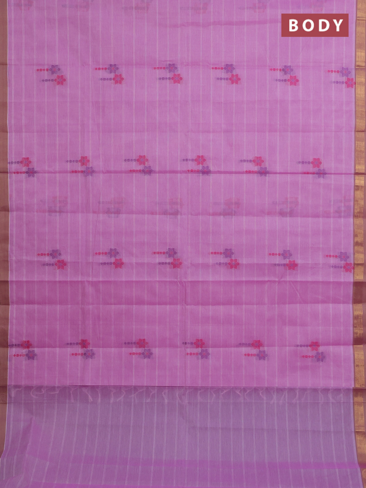Nithyam cotton saree light pink and beige with thread woven buttas and zari woven border
