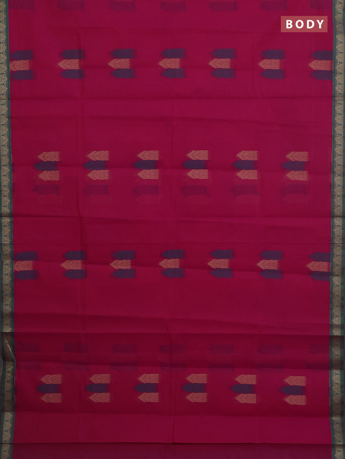 Nithyam cotton saree magenta pink and green with allover thread woven buttas and paisley thread woven border