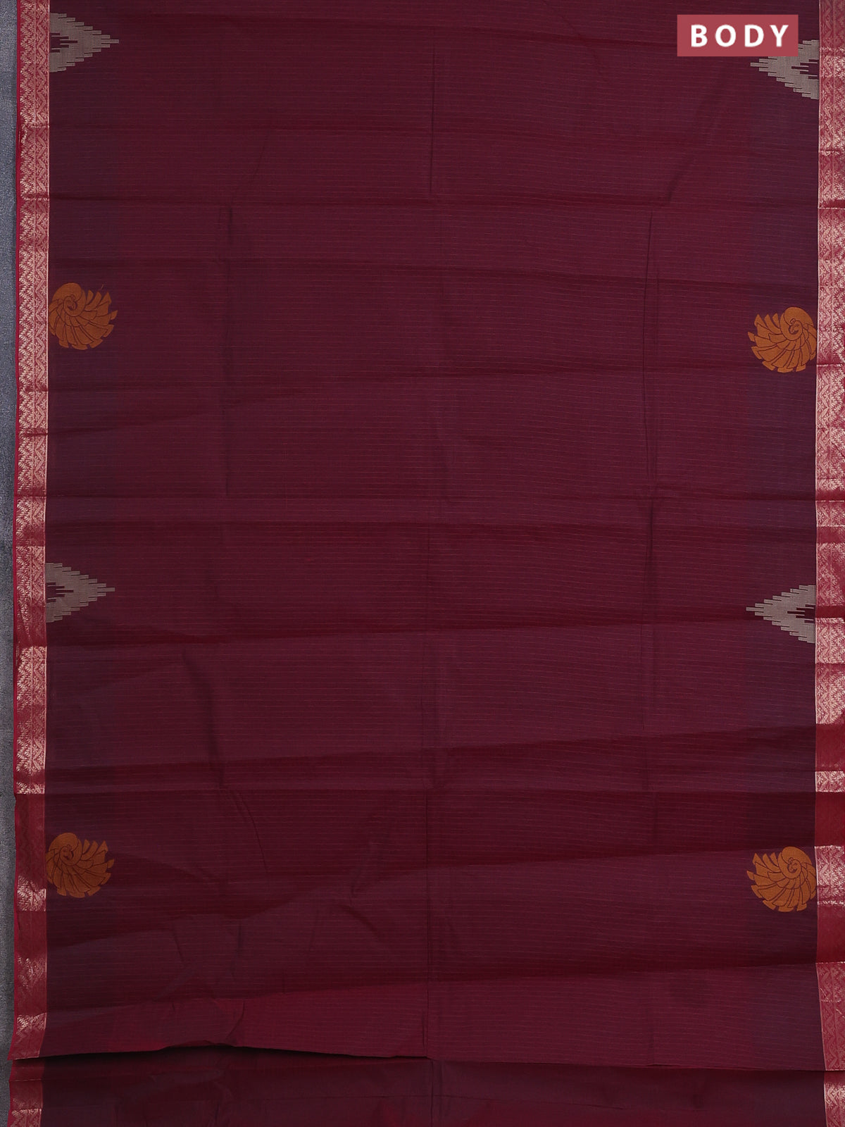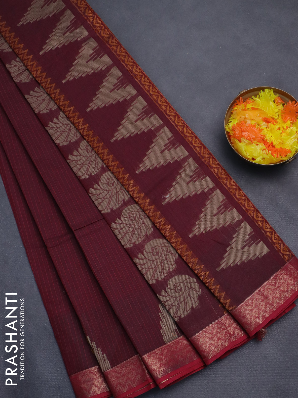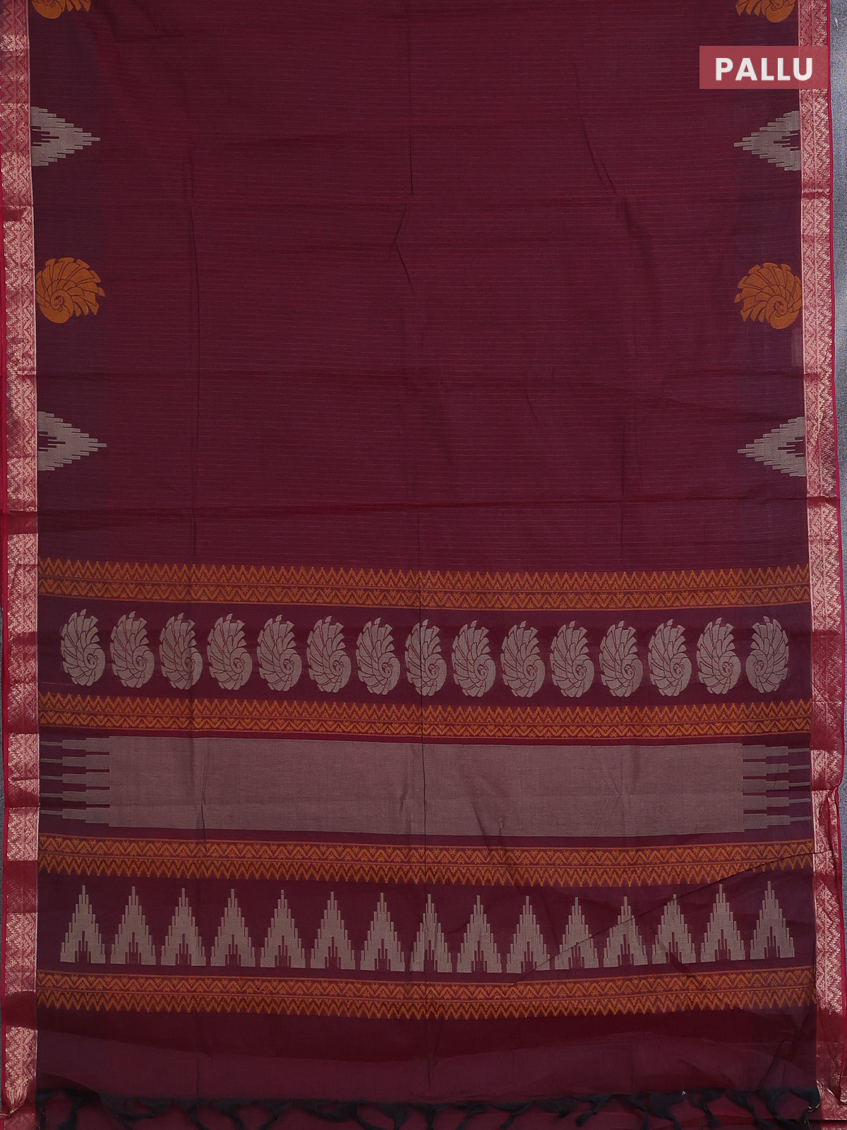 Nithyam cotton saree maroon with allover thread stripe pattern and zari woven border