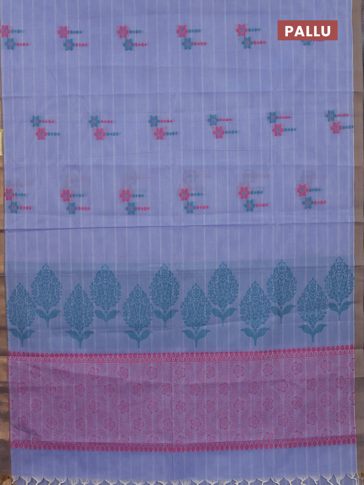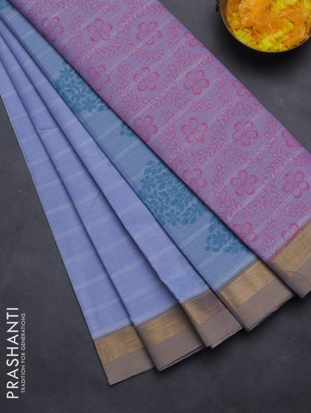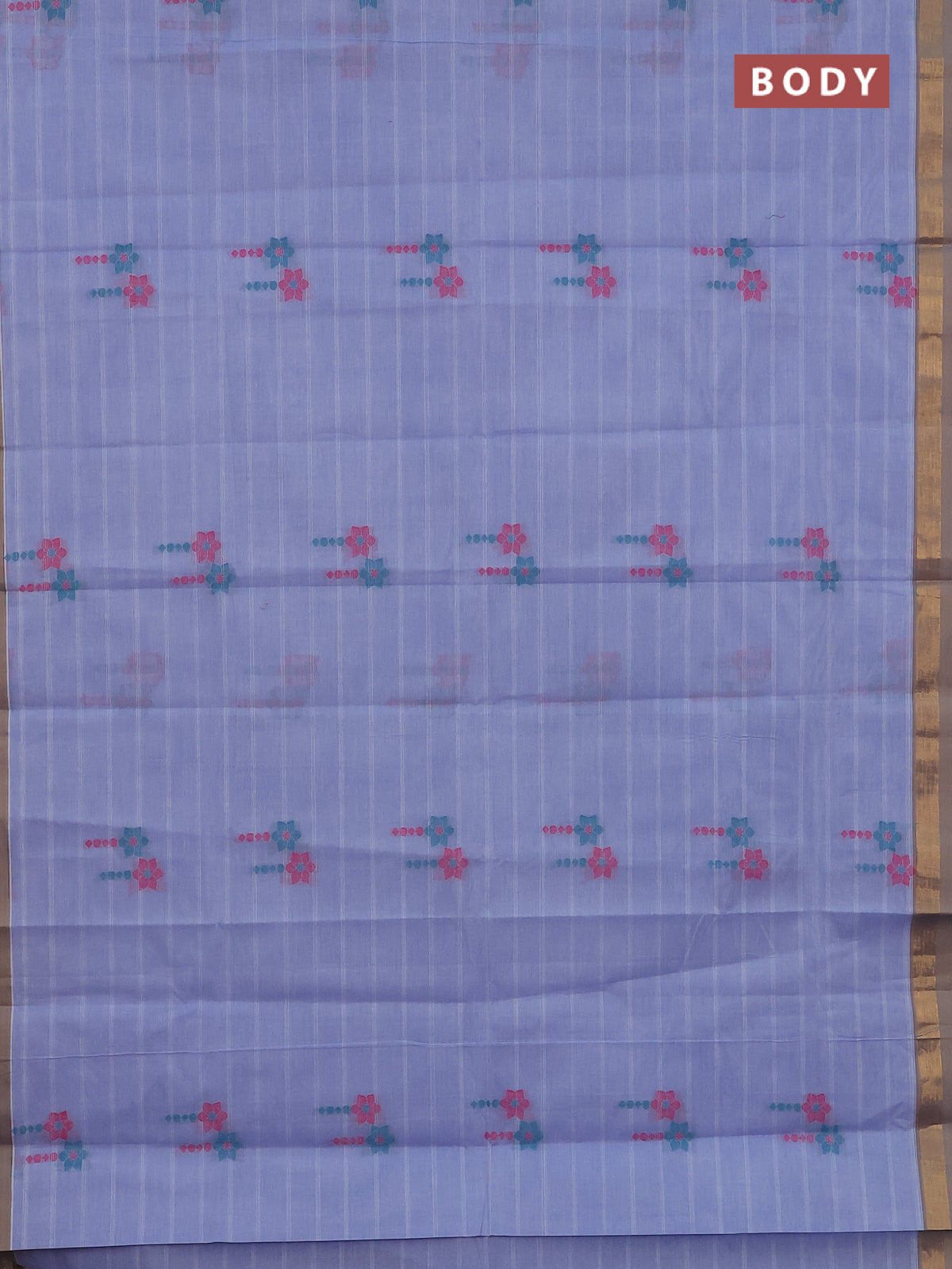 Nithyam cotton saree pastel blue and beige with thread woven buttas and zari woven border