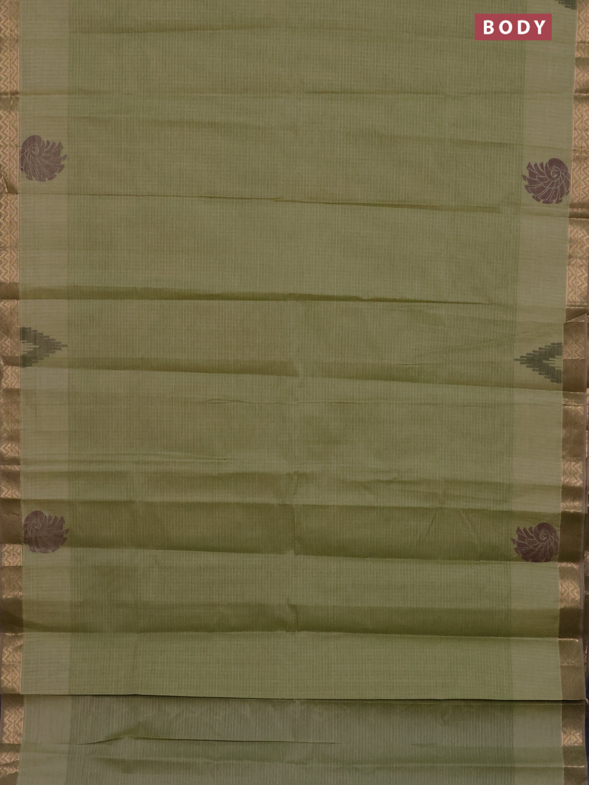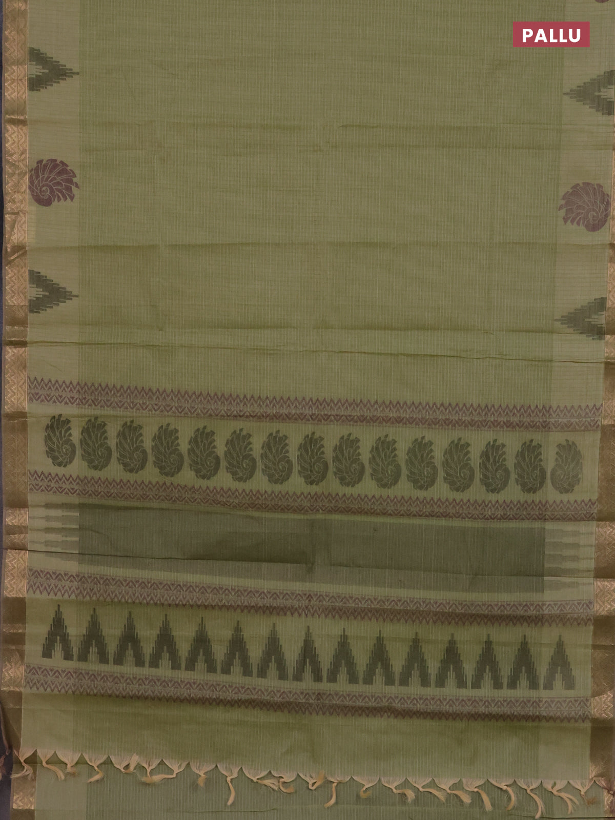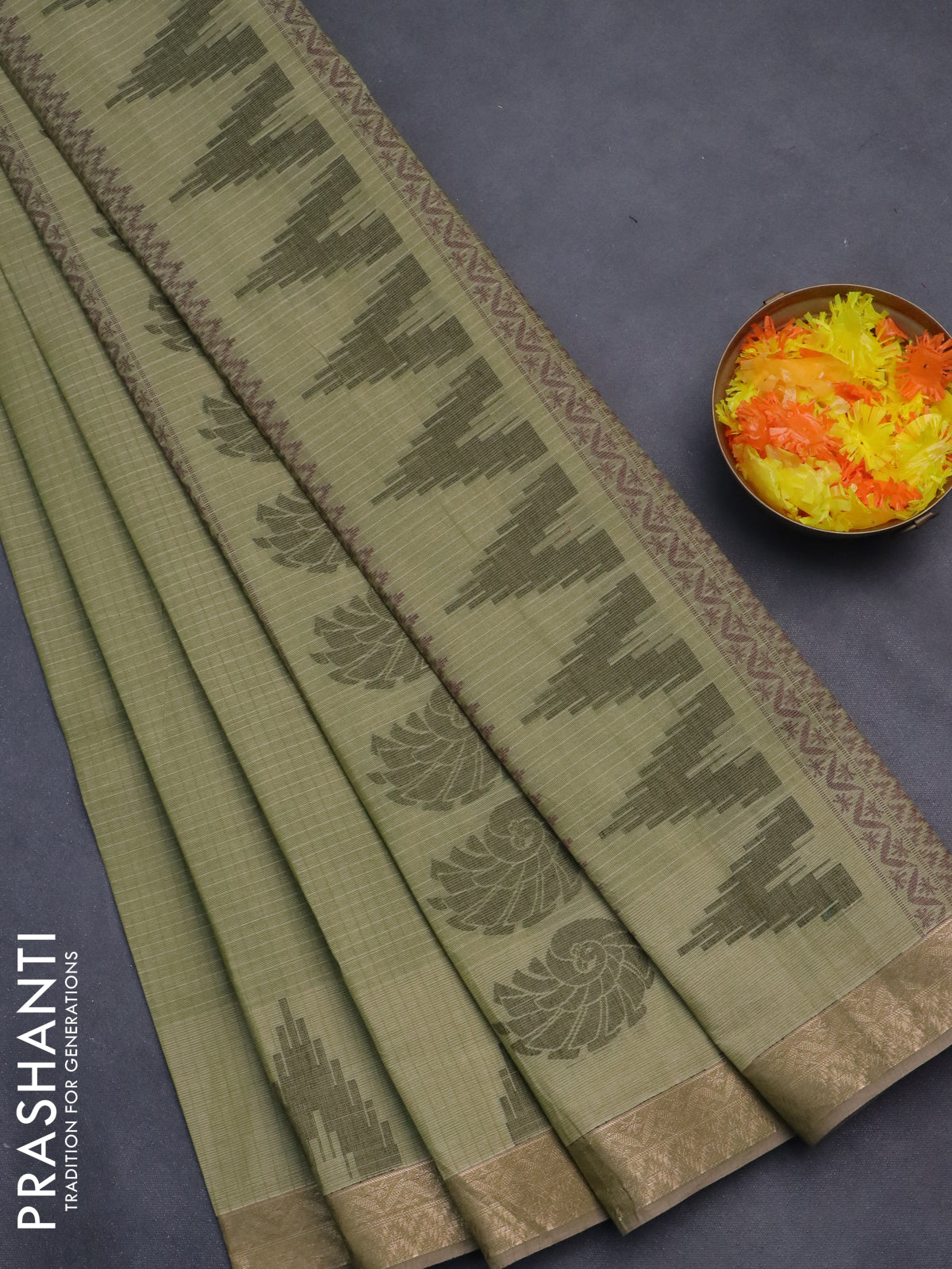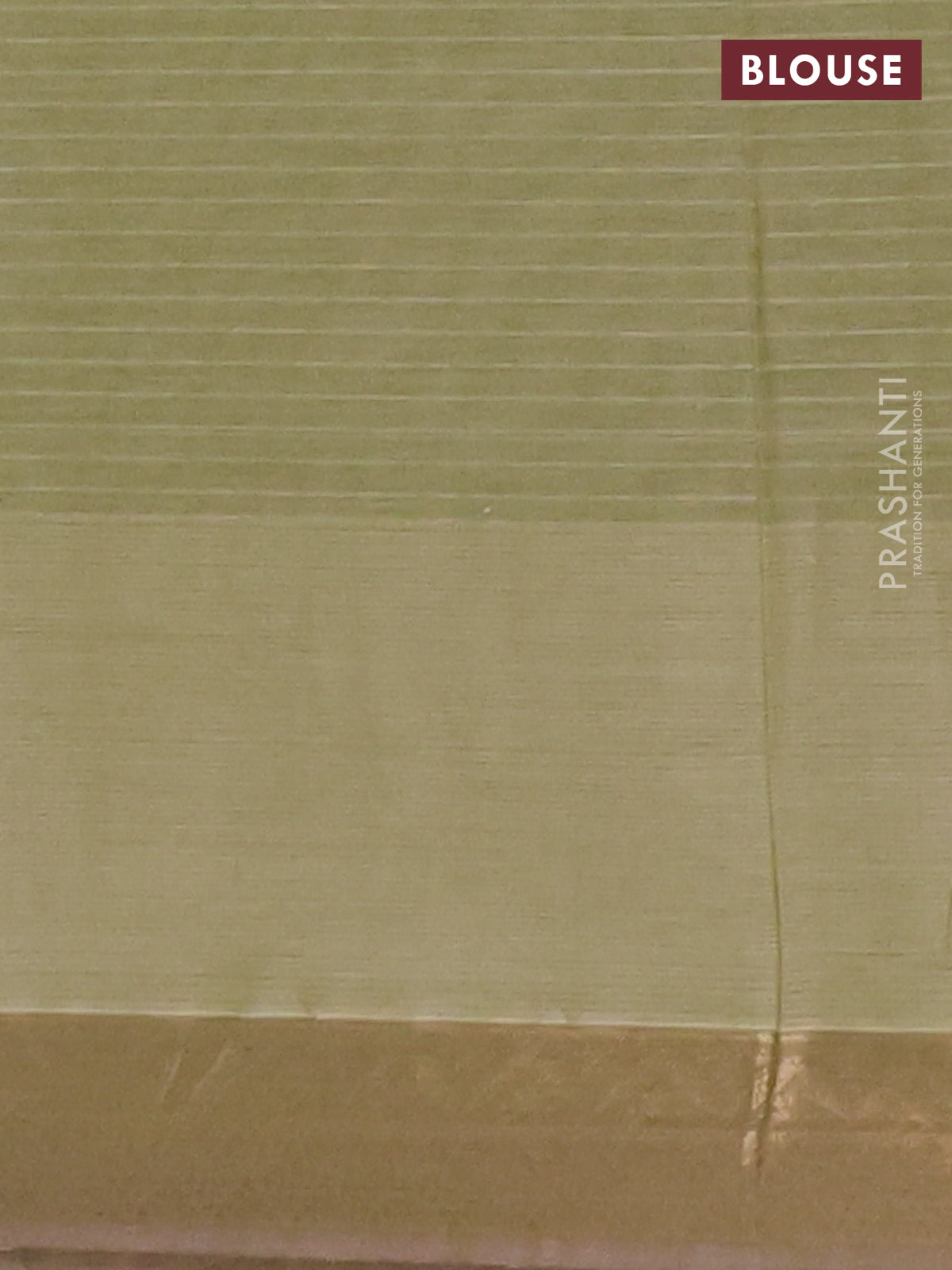 Nithyam cotton saree pastel green with allover thread stripe pattern and zari woven border