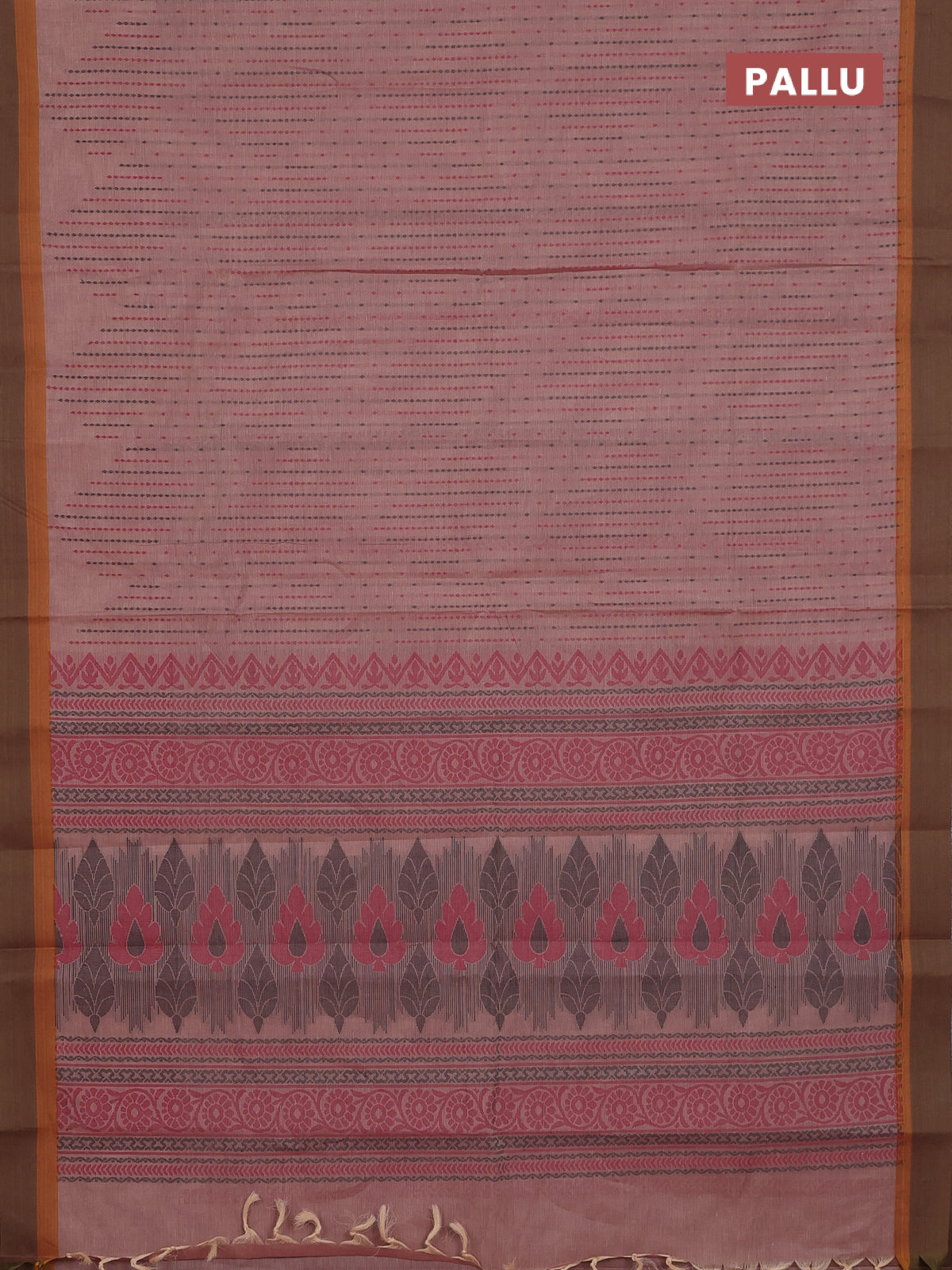 Nithyam cotton saree pastel maroon and brown with allover thread weaves and simple border
