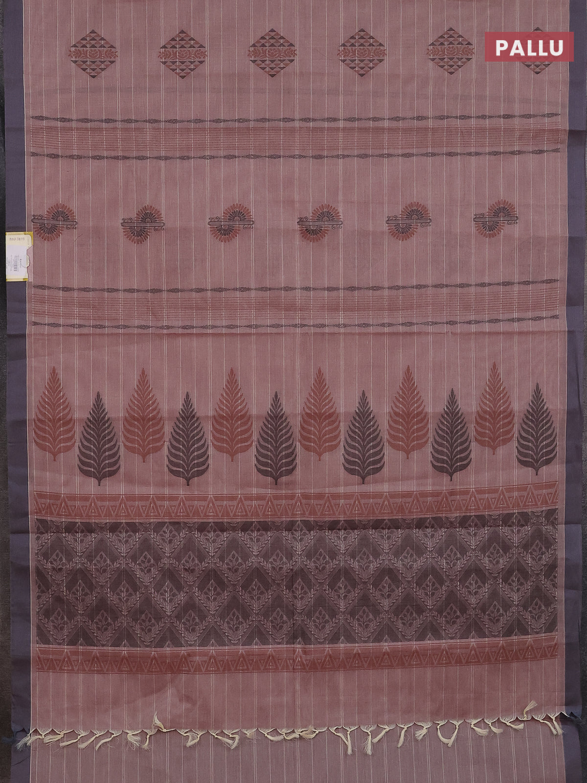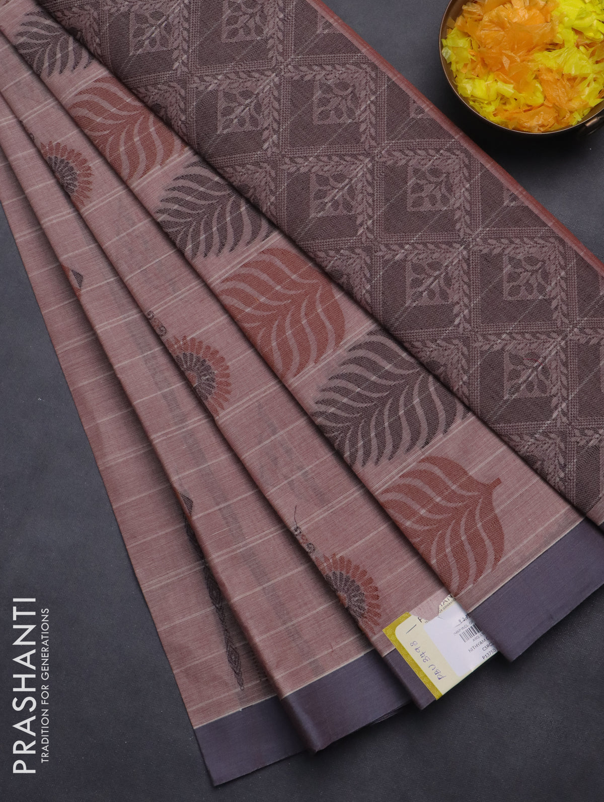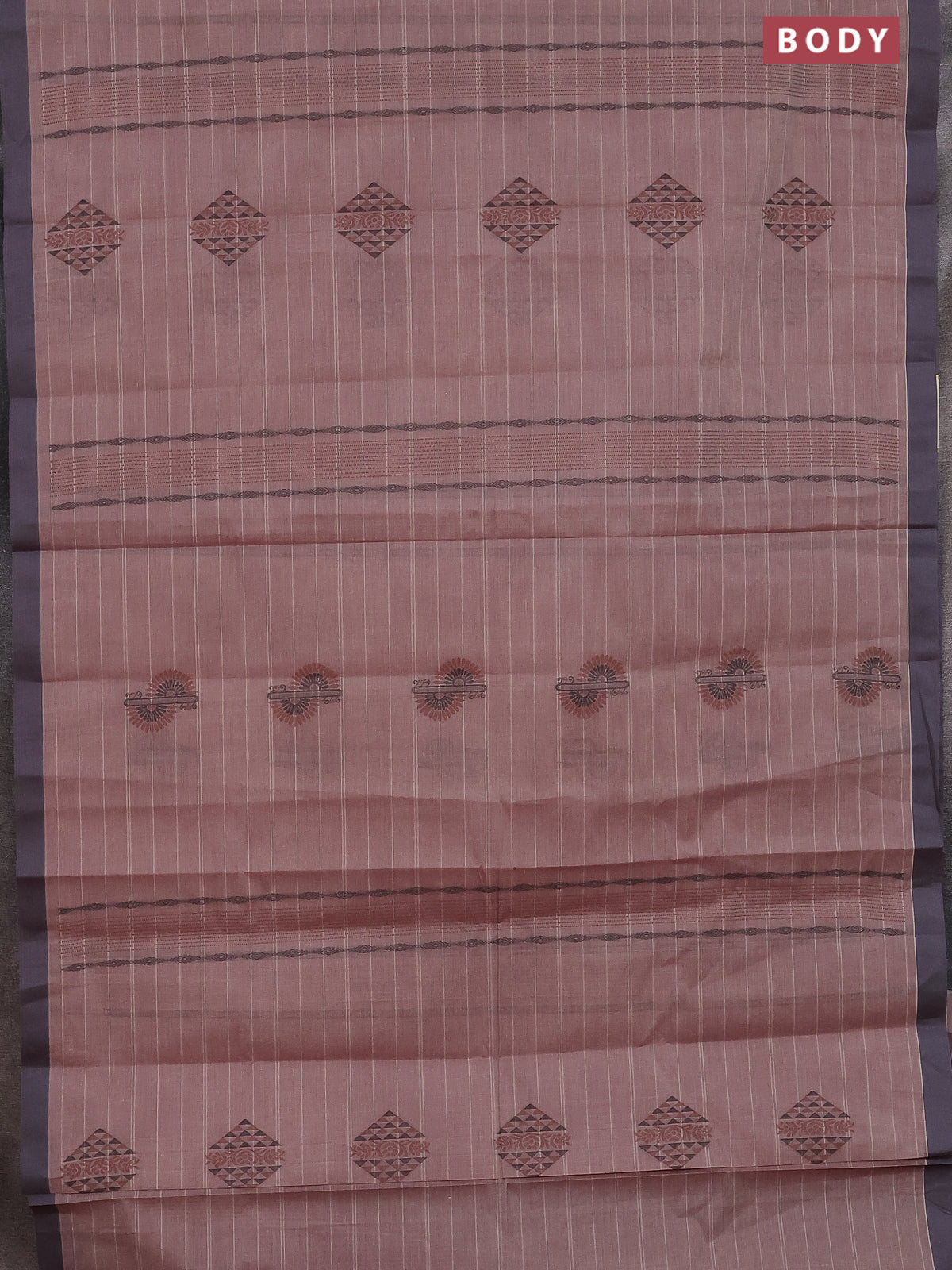 Nithyam cotton saree pastel maroon and grey with thread woven buttas and simple border