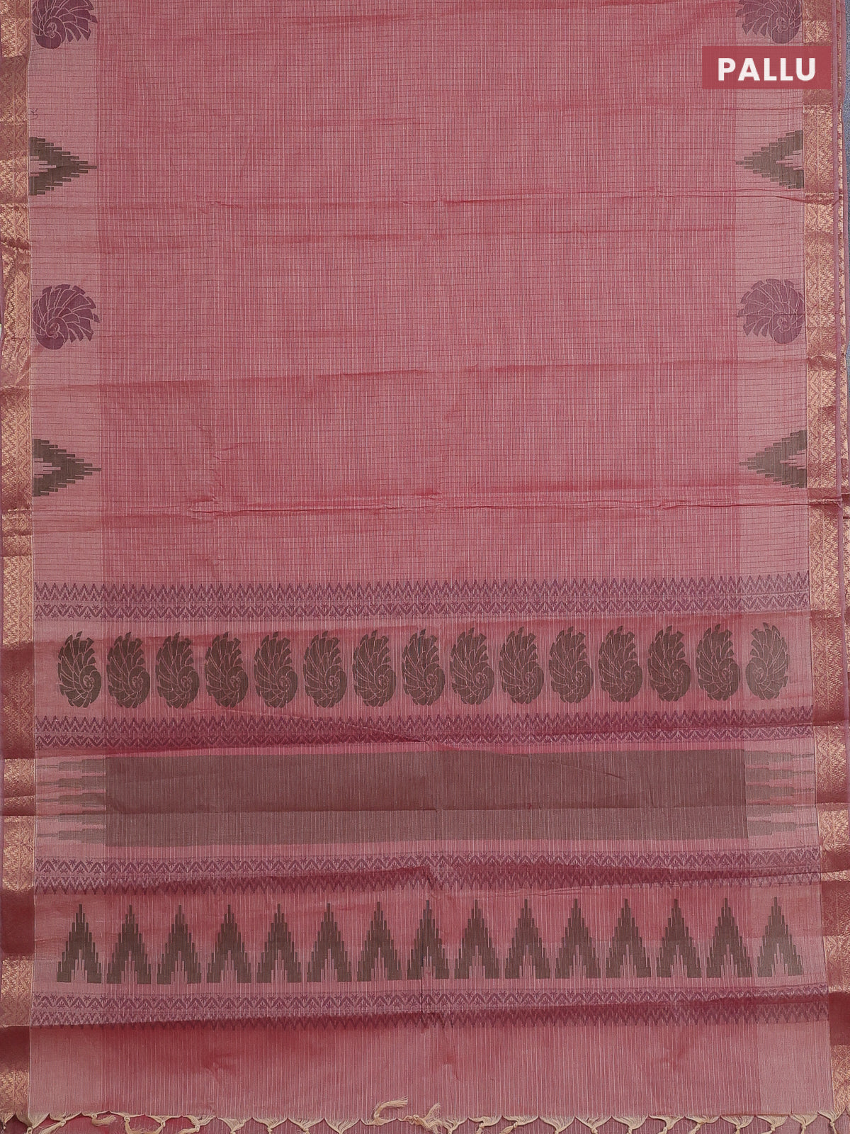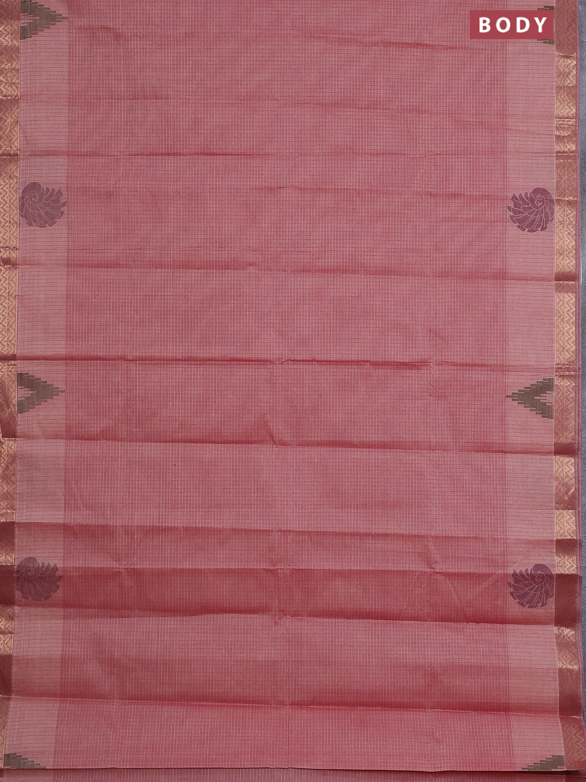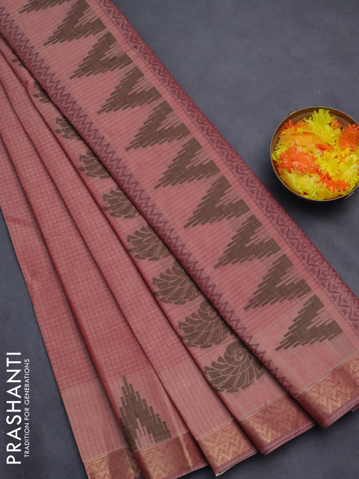 Nithyam cotton saree pastel maroon with allover thread stripe pattern and zari woven border