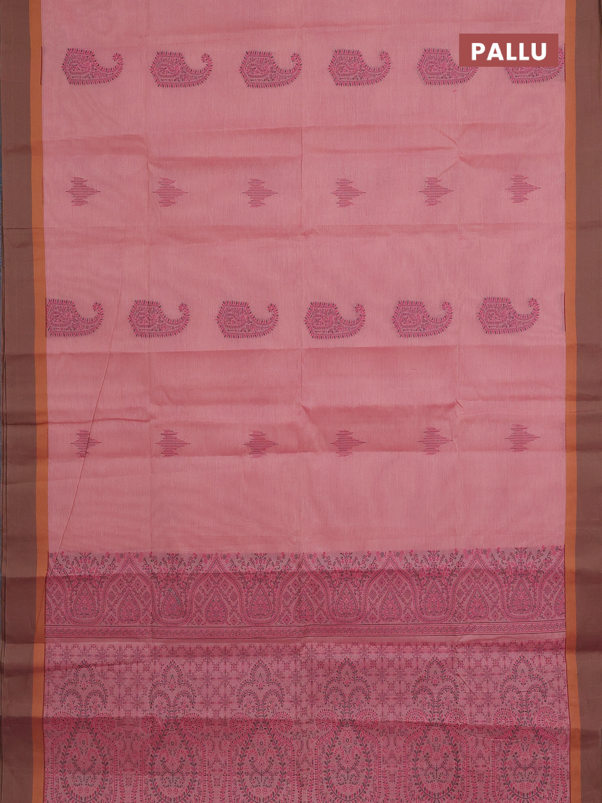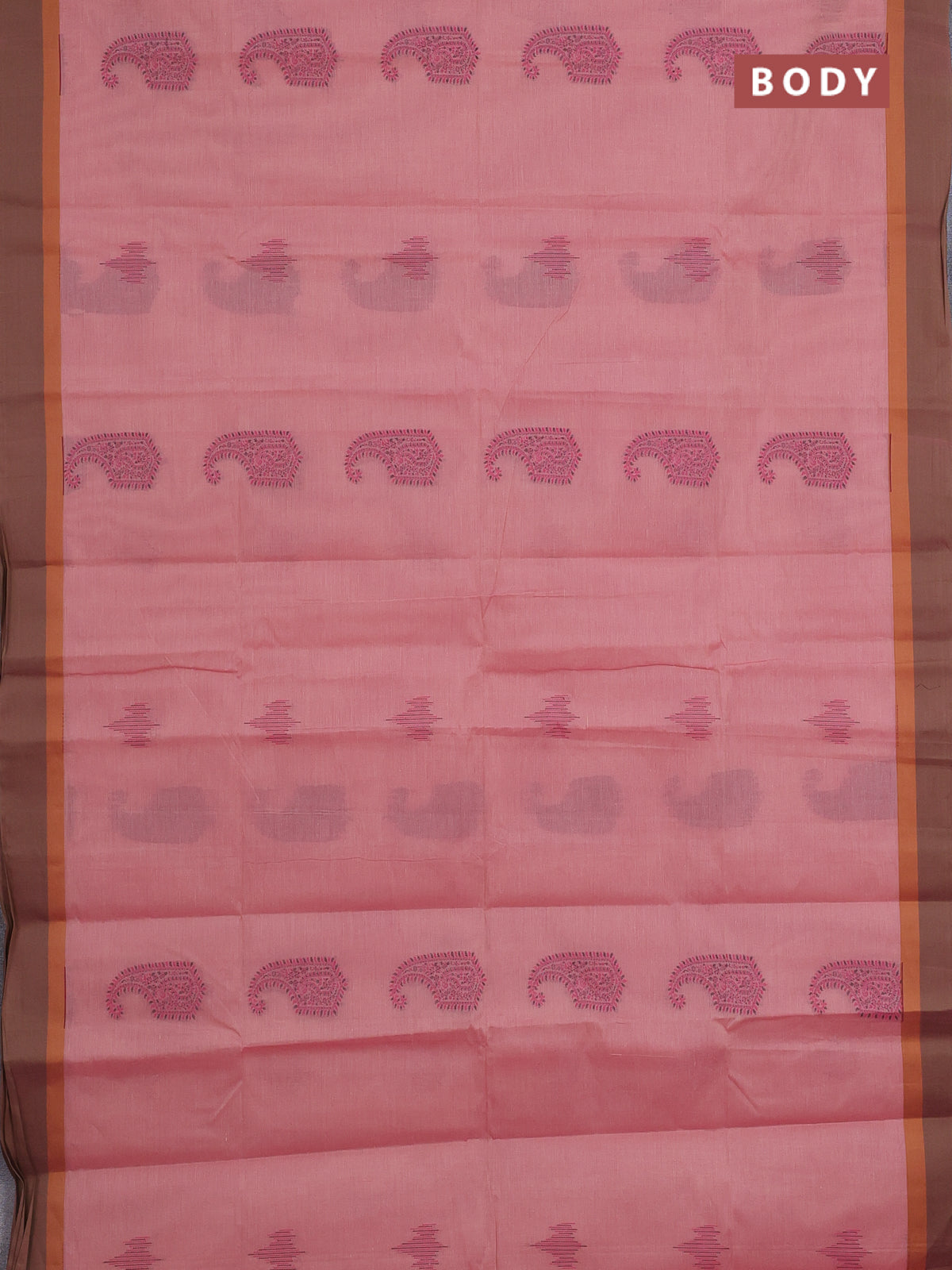 Nithyam cotton saree pastel peach shade with thread woven buttas and simple border
