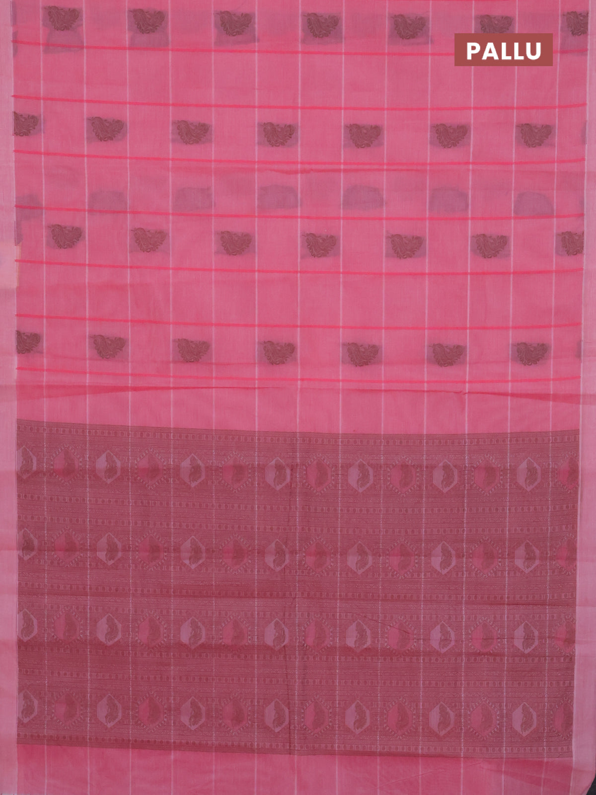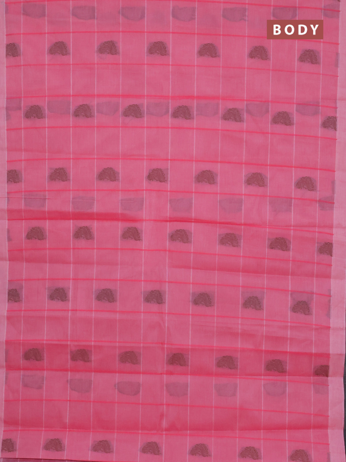 Nithyam cotton saree peach pink with allover checks & thread buttas in borderless style