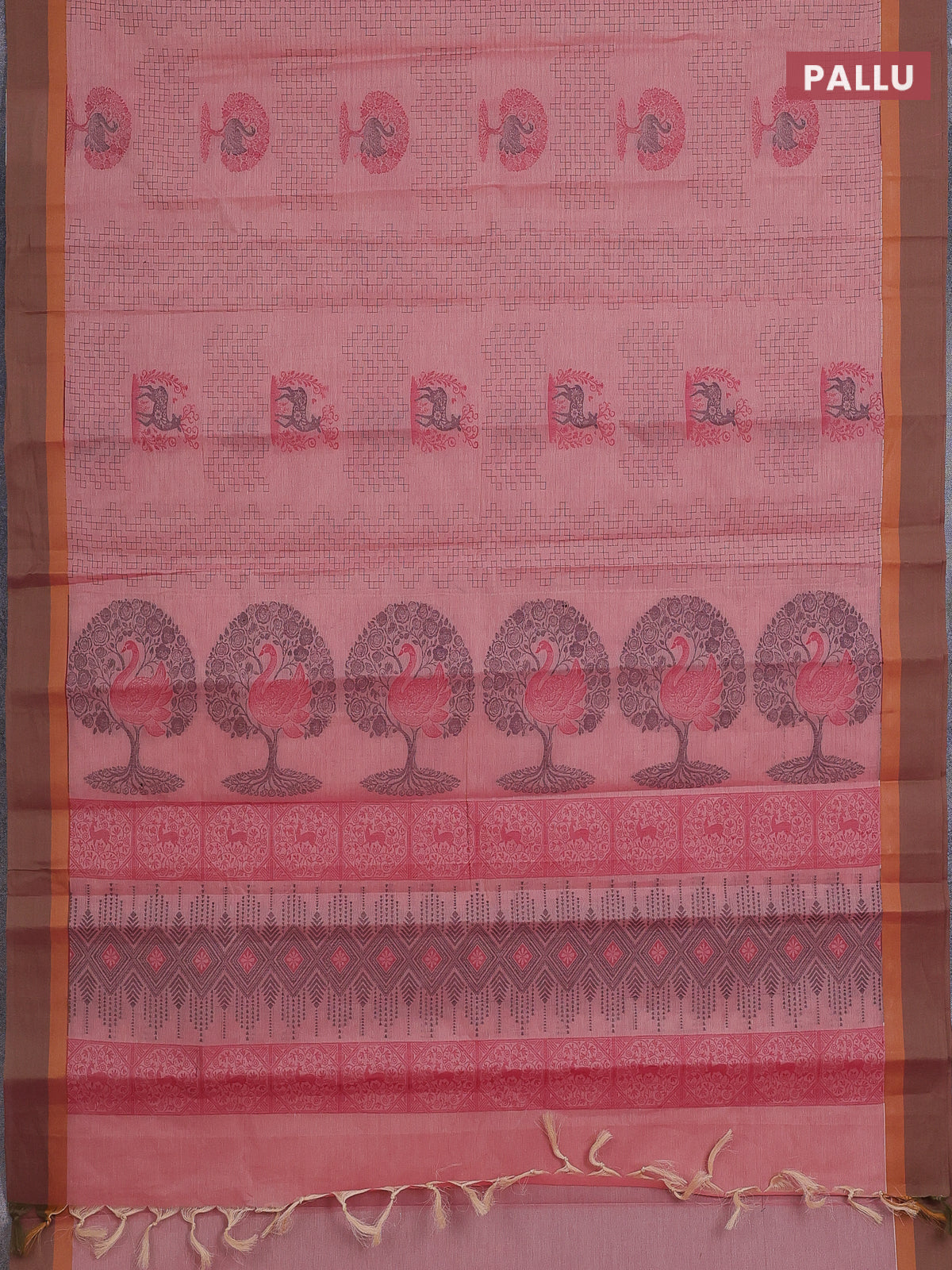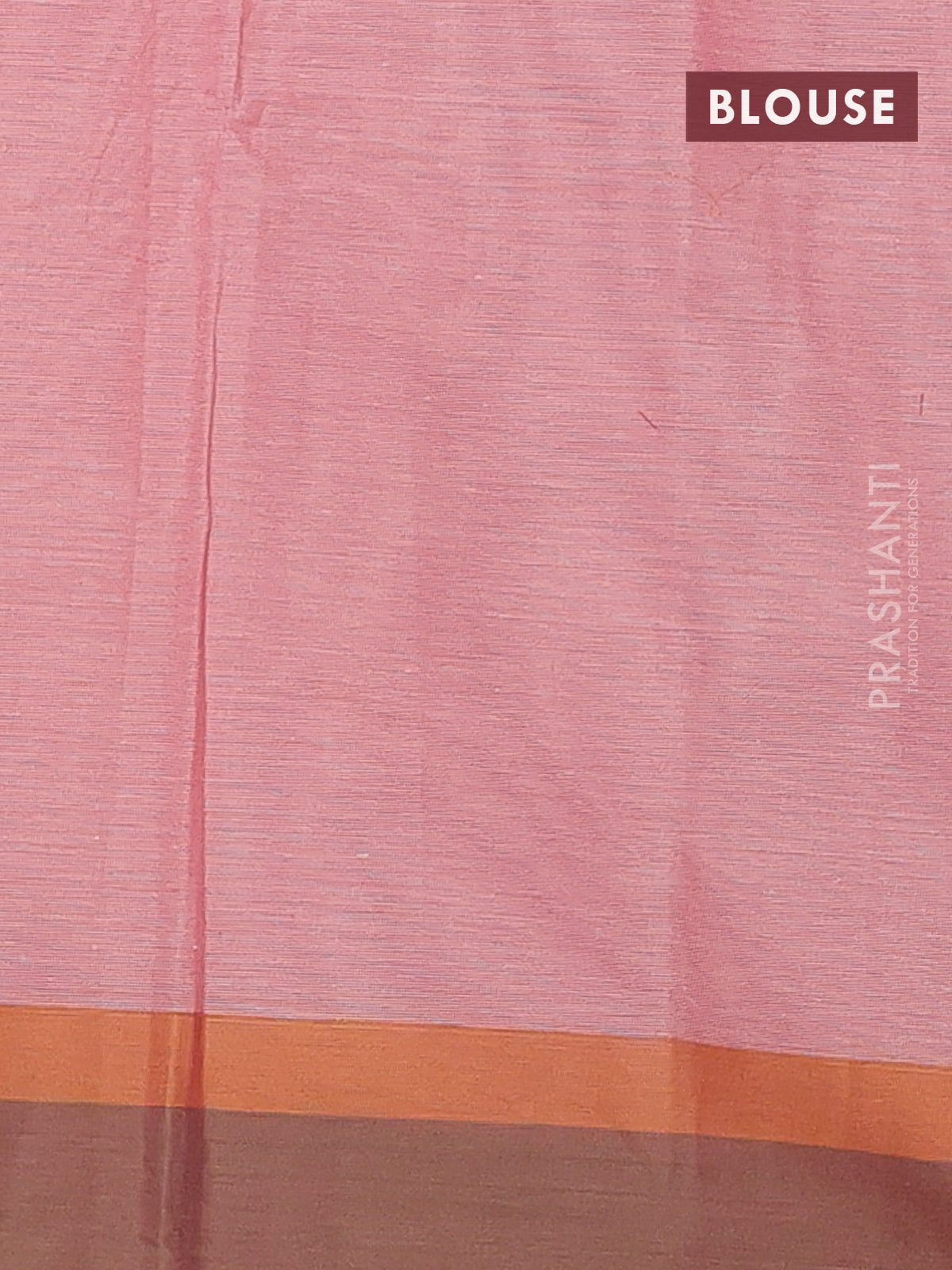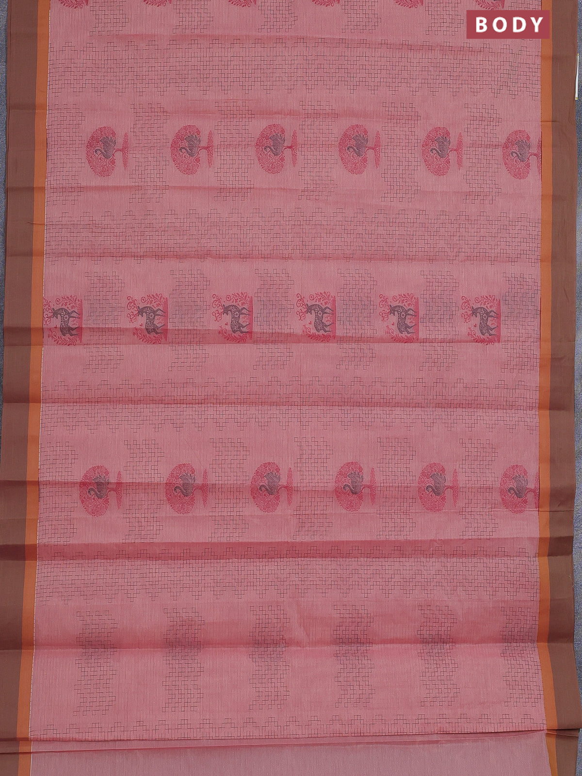 Nithyam cotton saree peach shade and dual shade of green with allover thread weaves and simple border