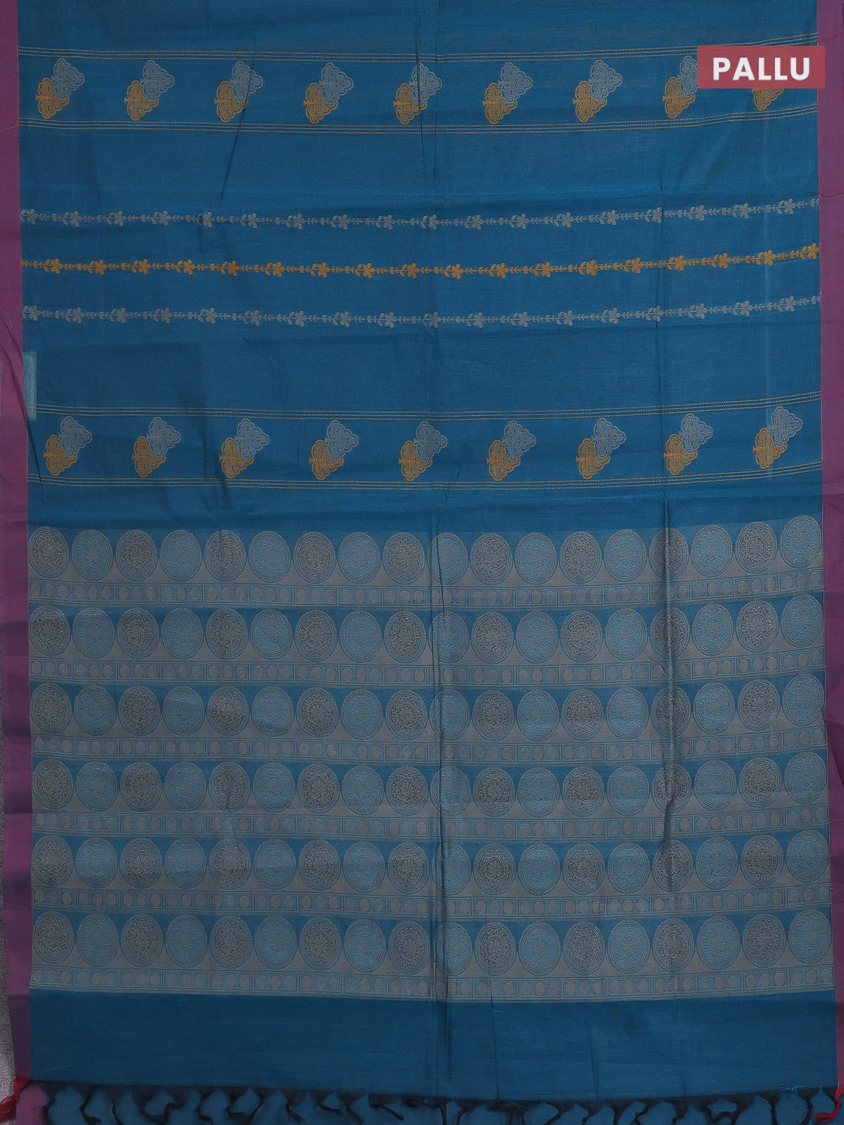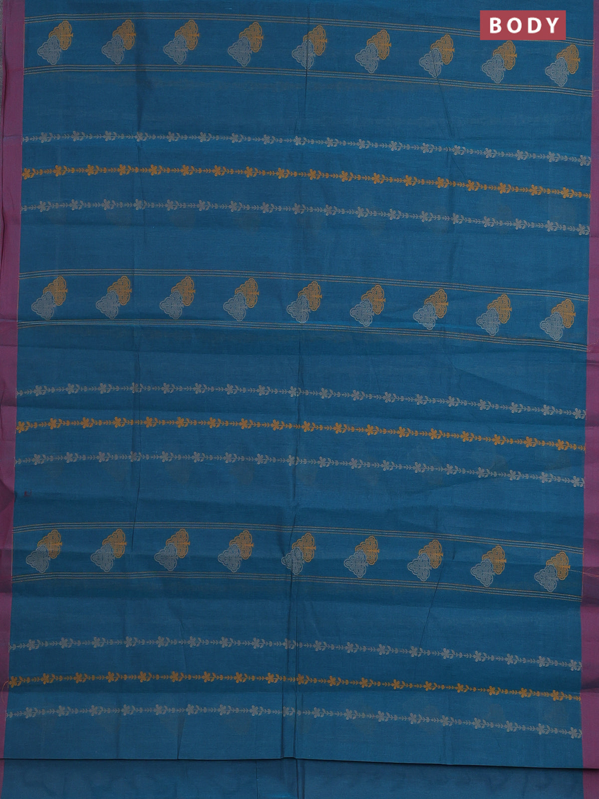 Nithyam cotton saree peacock green and maroon with allover thread weaves and simple border