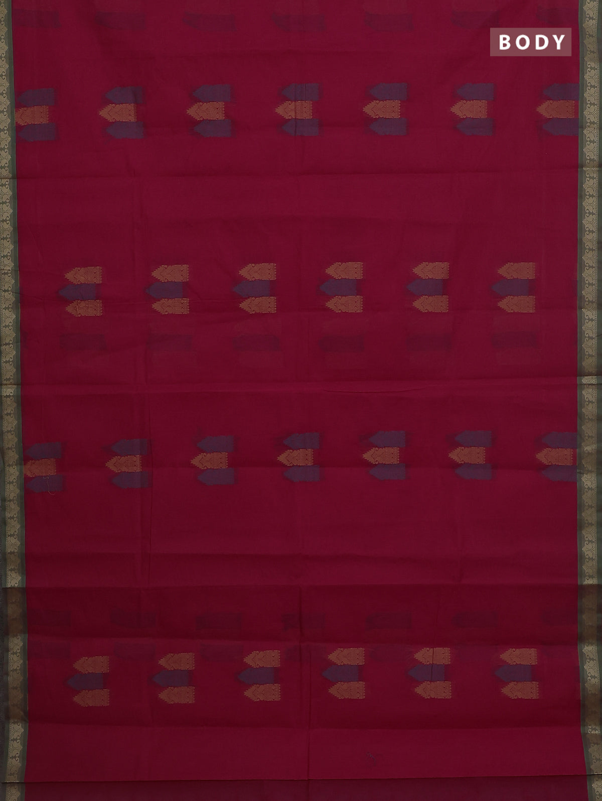 Nithyam cotton saree pink and green with allover thread woven buttas and paisley thread woven border
