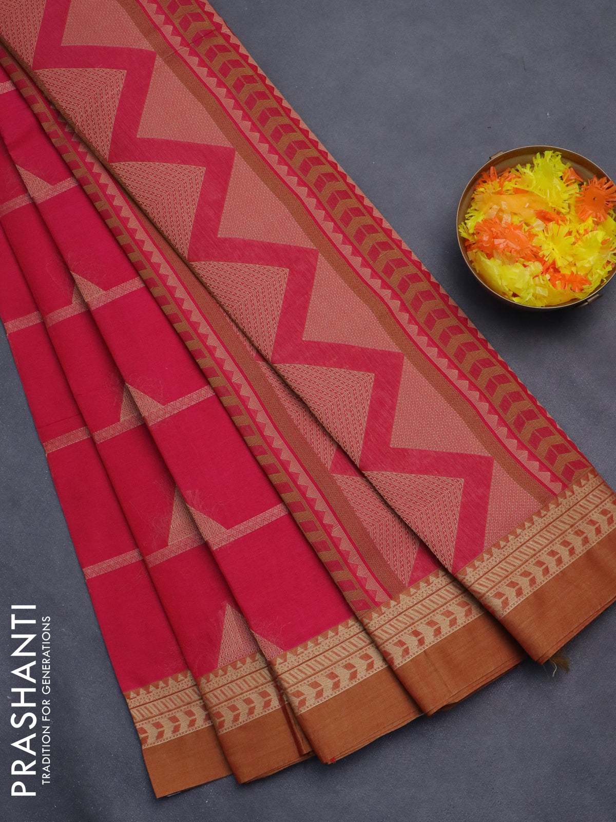 Nithyam cotton saree pink and rust shade with thread woven buttas and thread woven border