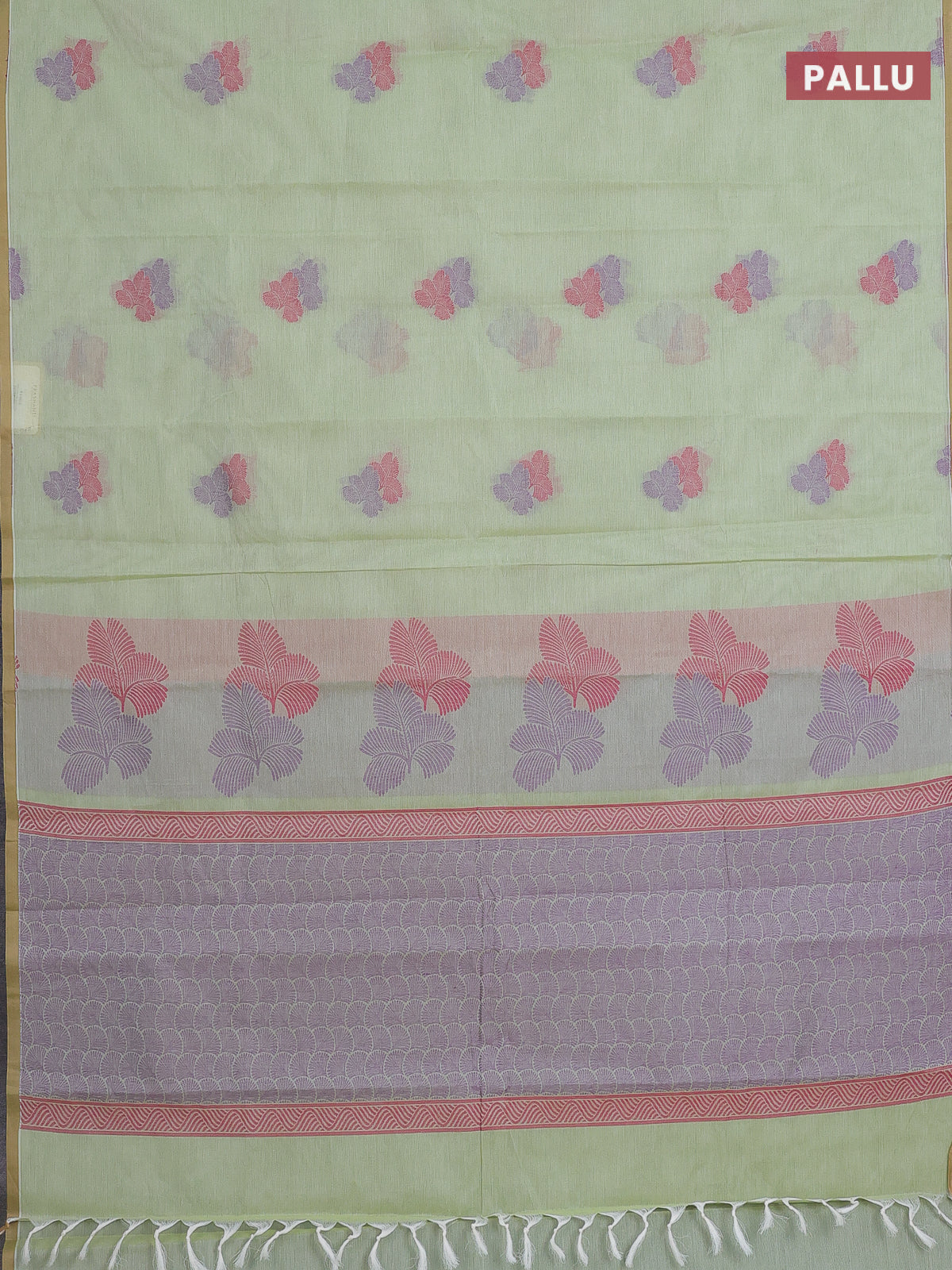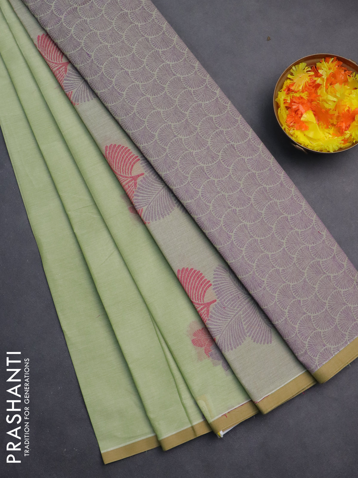 Nithyam cotton saree pista green with thread woven buttas and piping border
