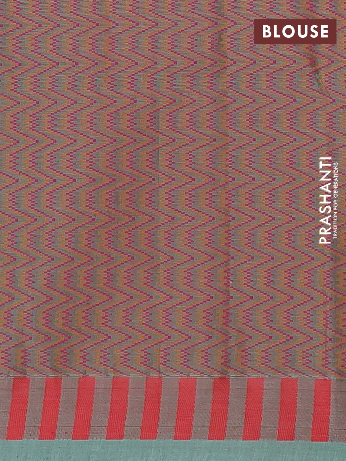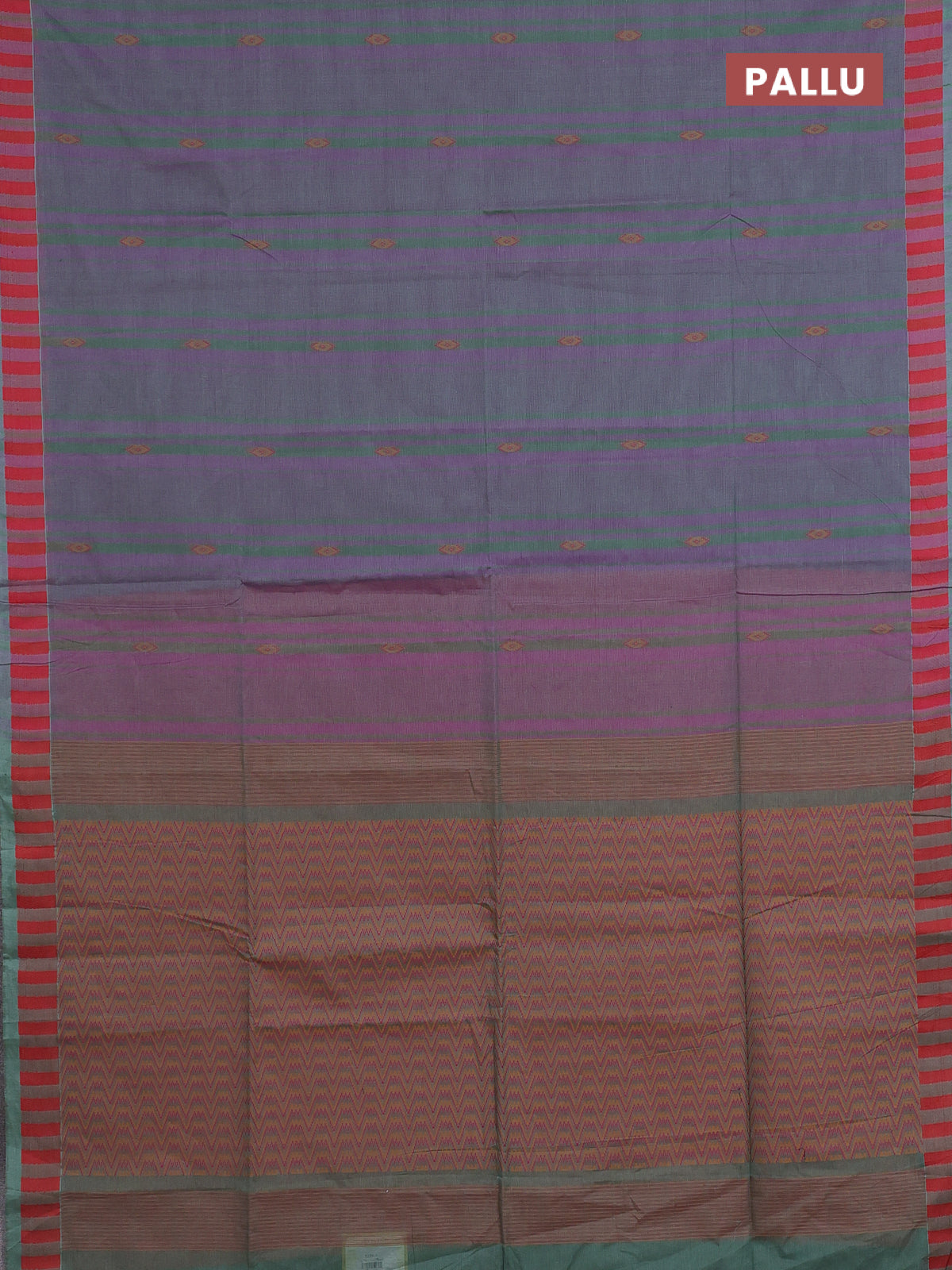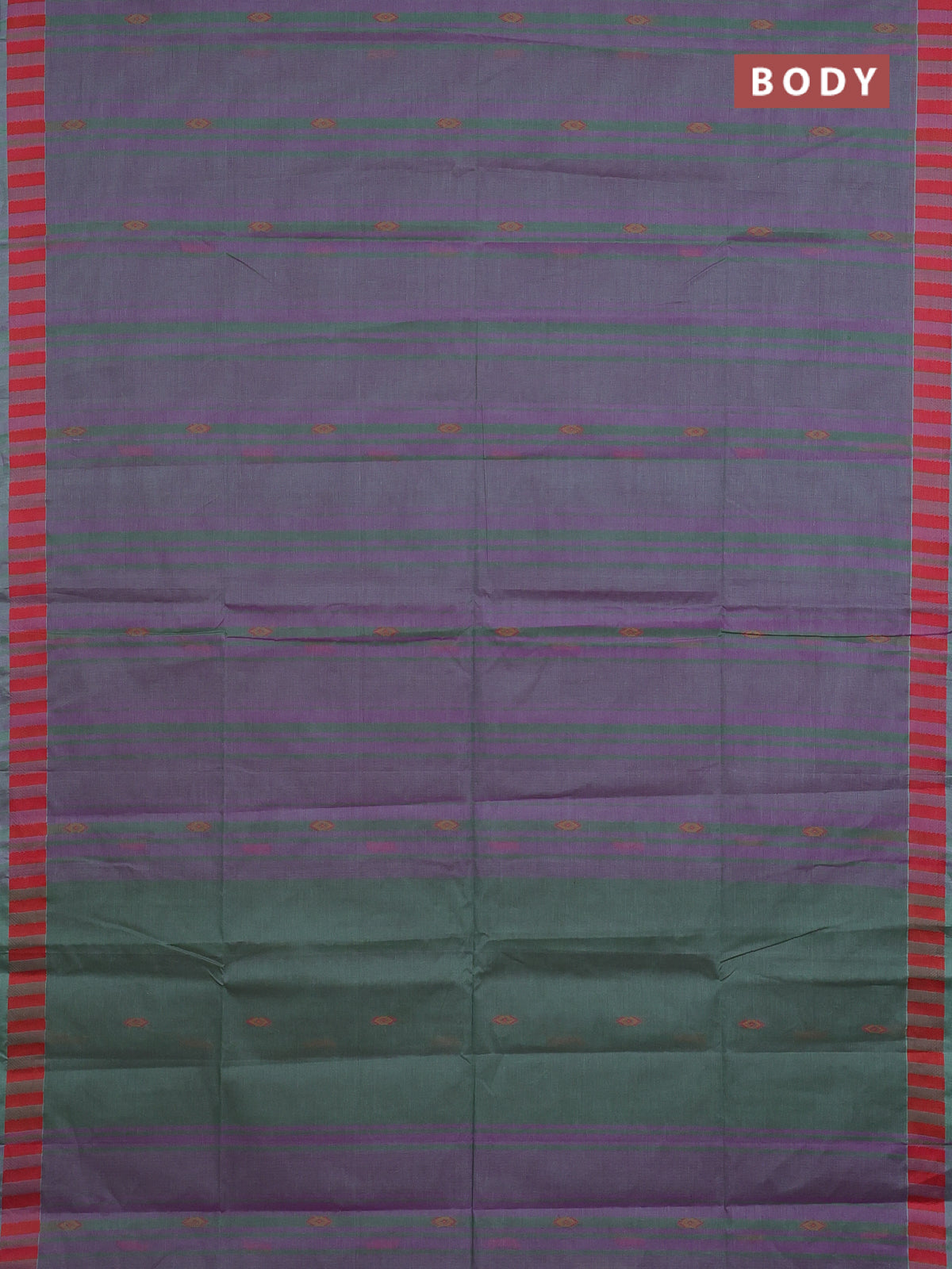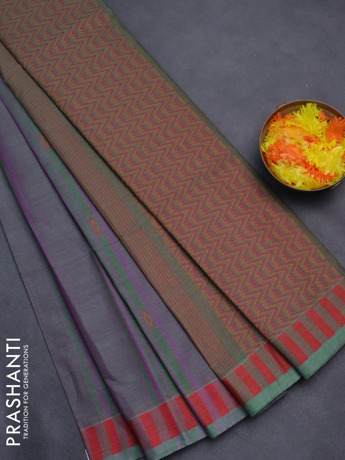 Nithyam cotton saree purple and green shade with allover stripe & ikat thread buttas and thread woven border