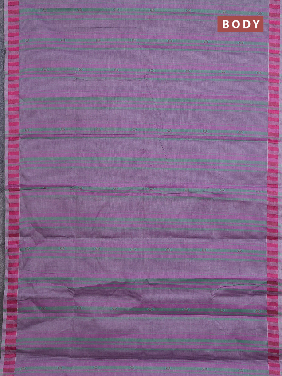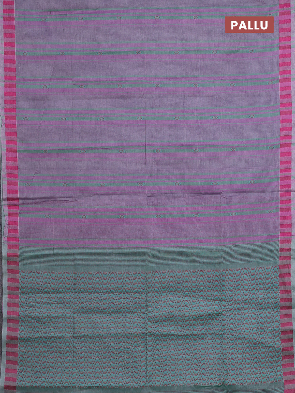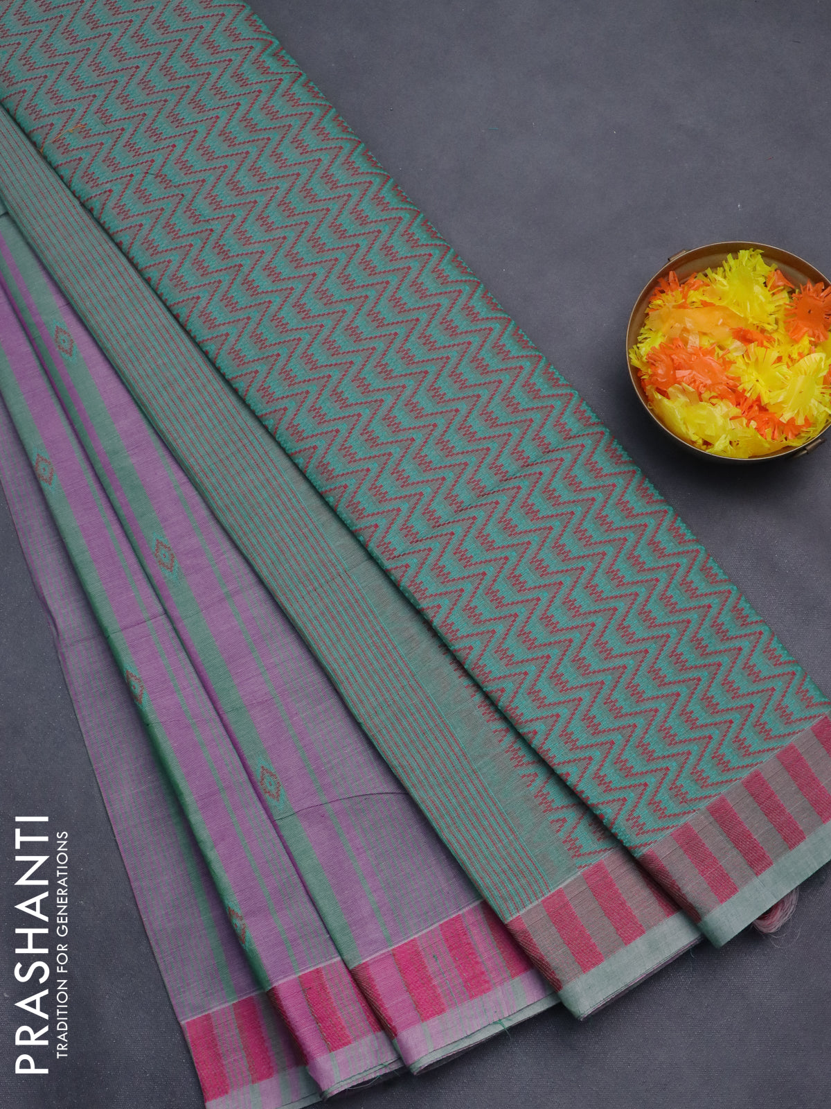 Nithyam cotton saree purple and green with allover stripe & ikat thread buttas and thread woven border