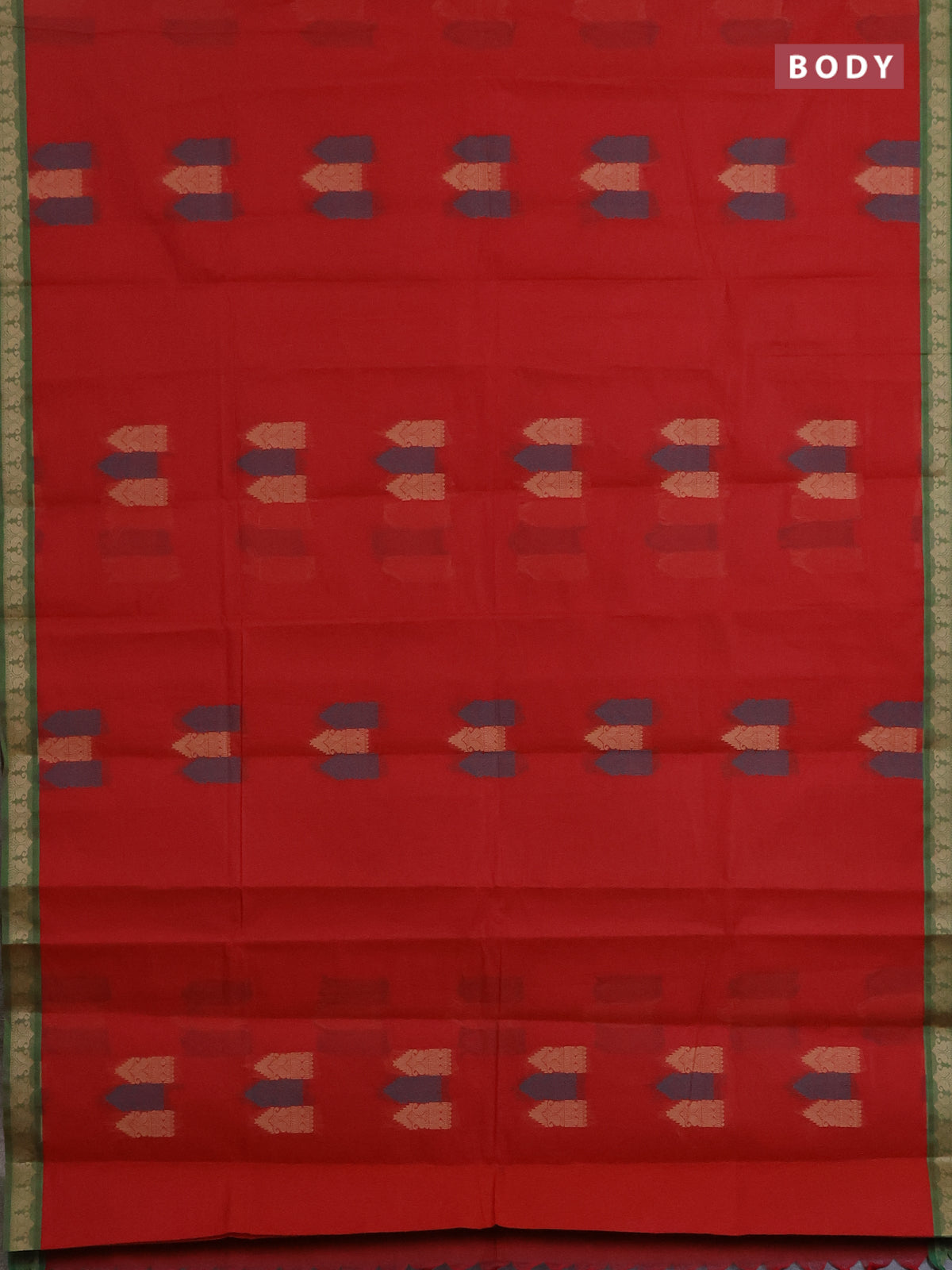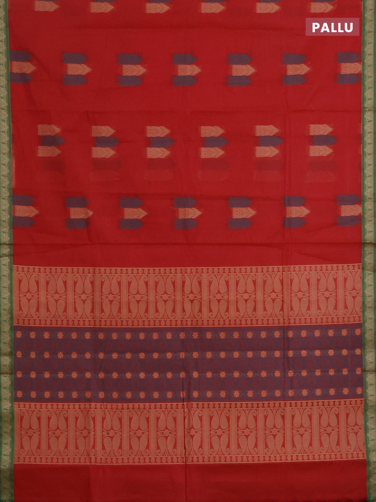 Nithyam cotton saree red and green with allover thread woven buttas and paisley thread woven border