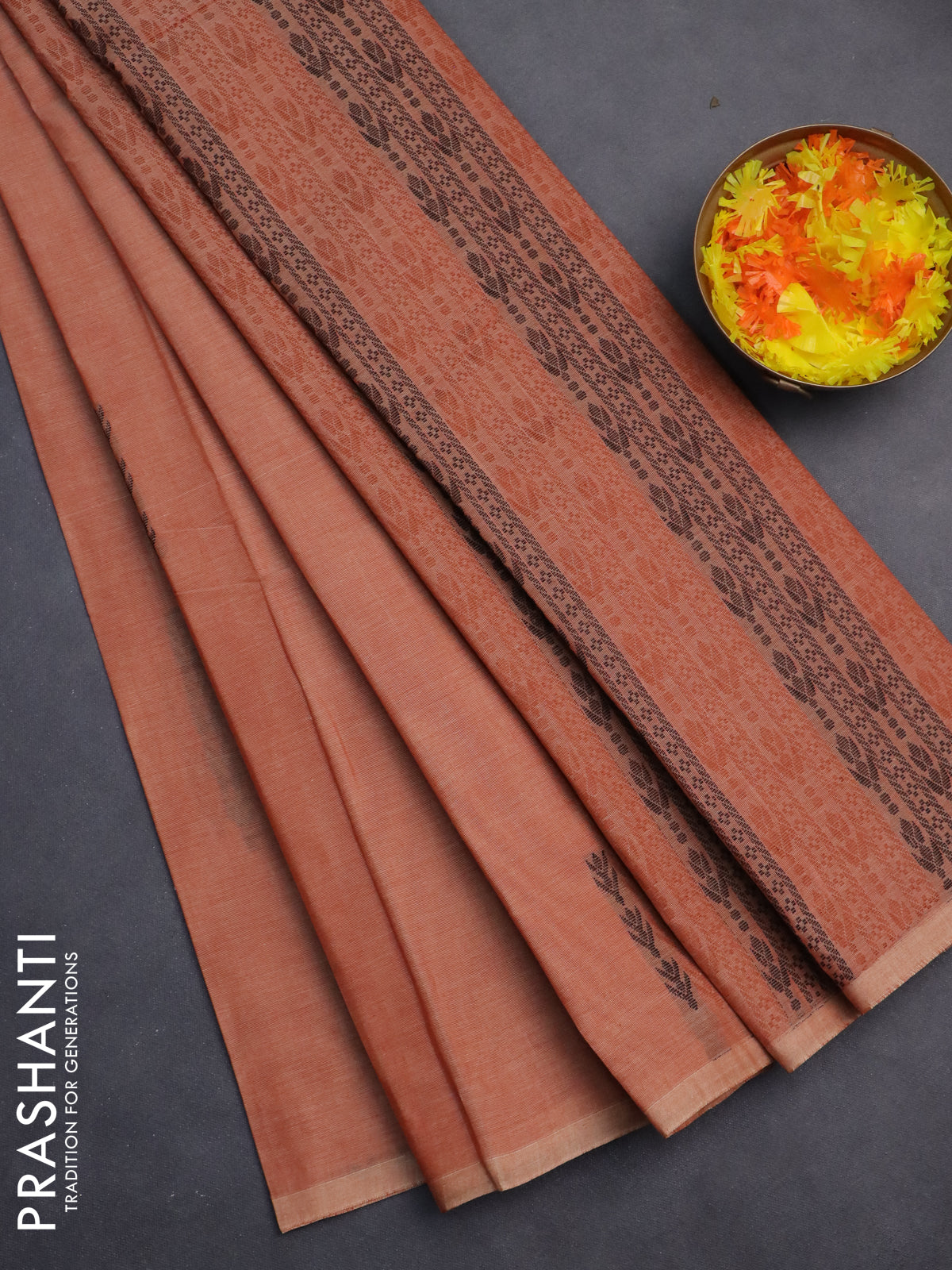 Nithyam cotton saree rust shade with thread woven buttas in borderless style