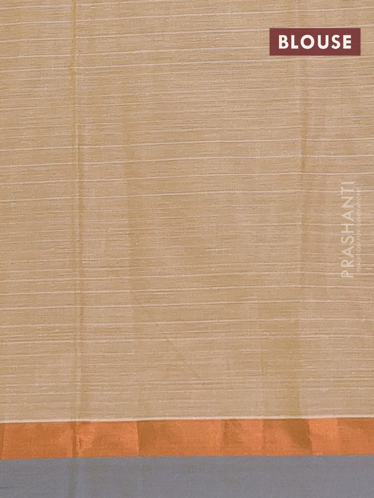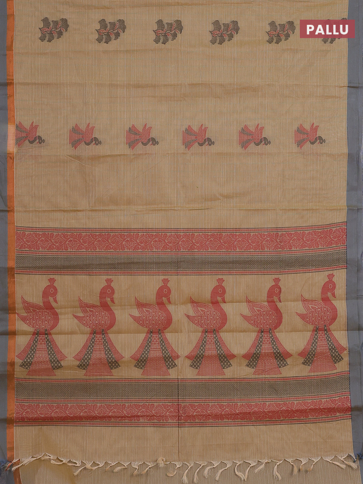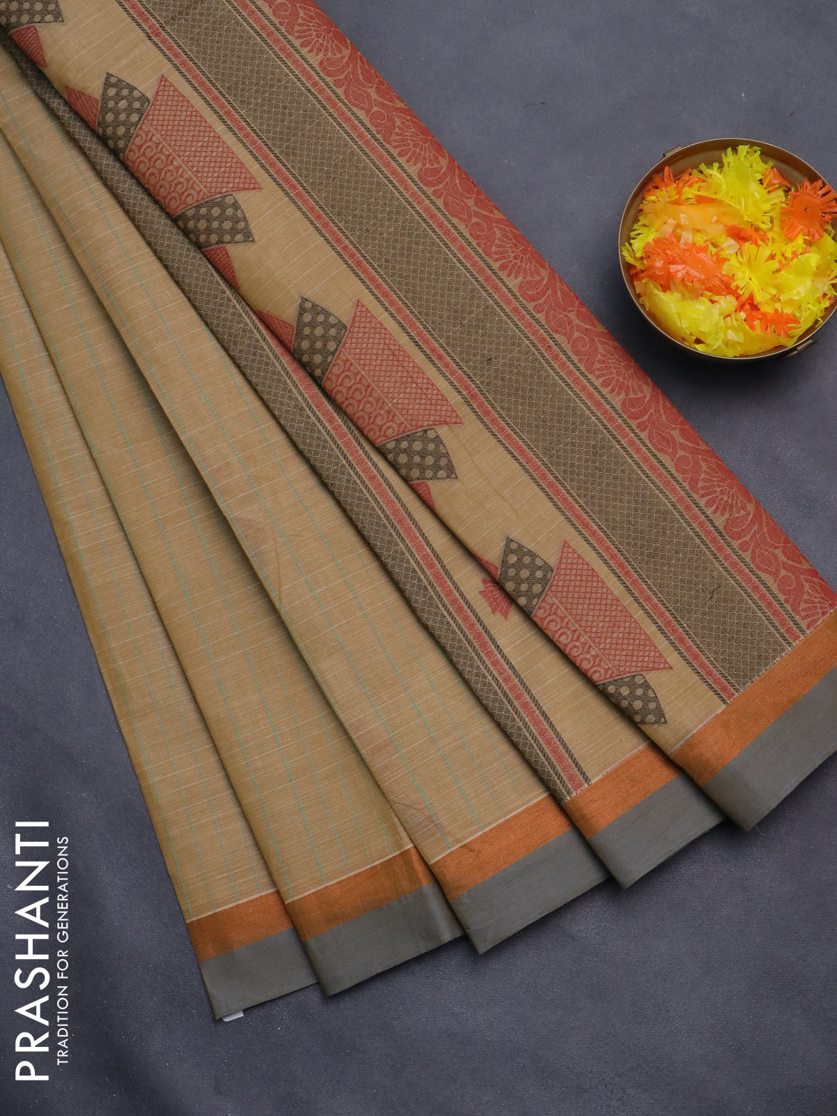 Nithyam cotton saree sandal and grey with allover thread weaves & buttas and simple border