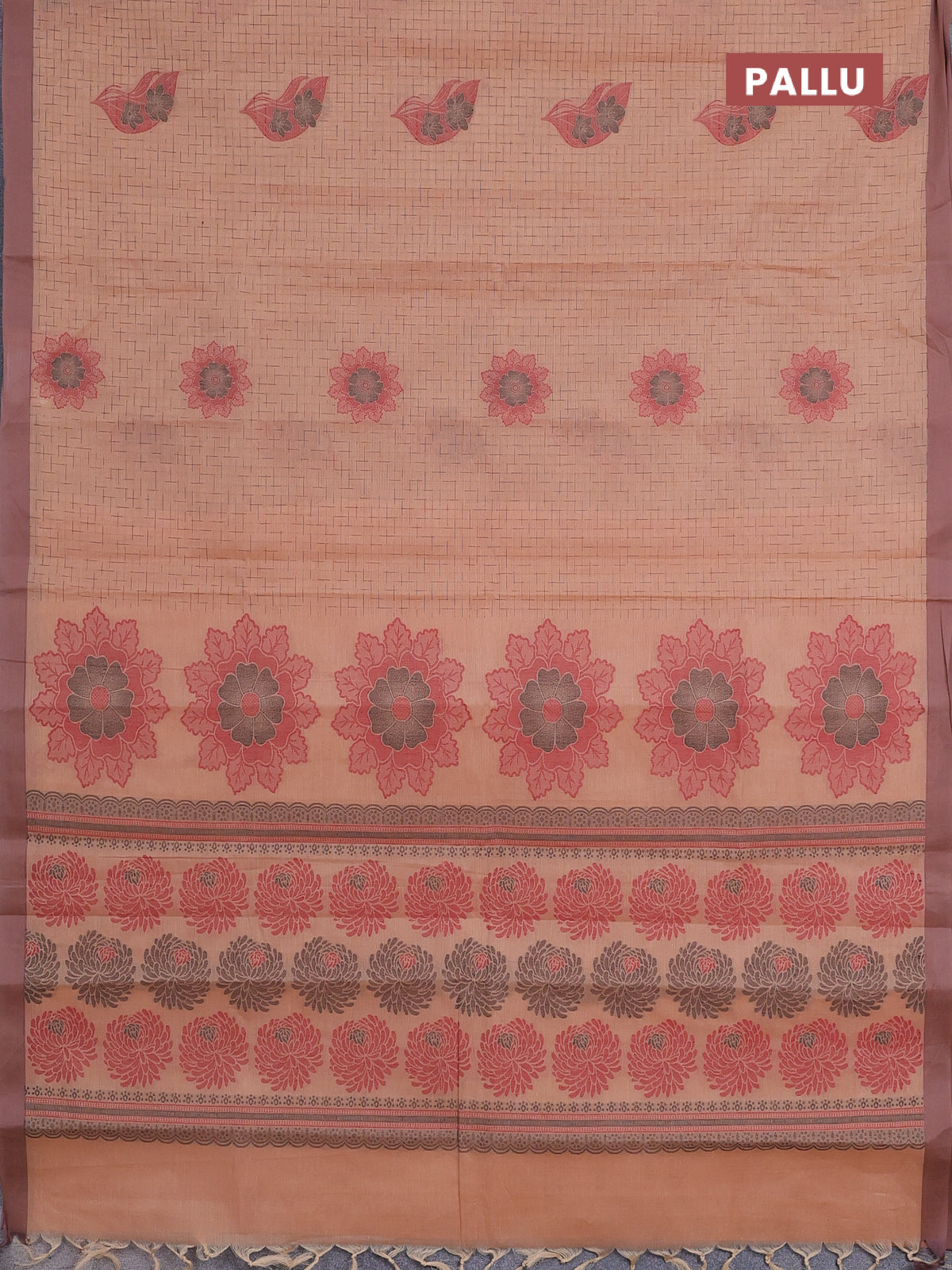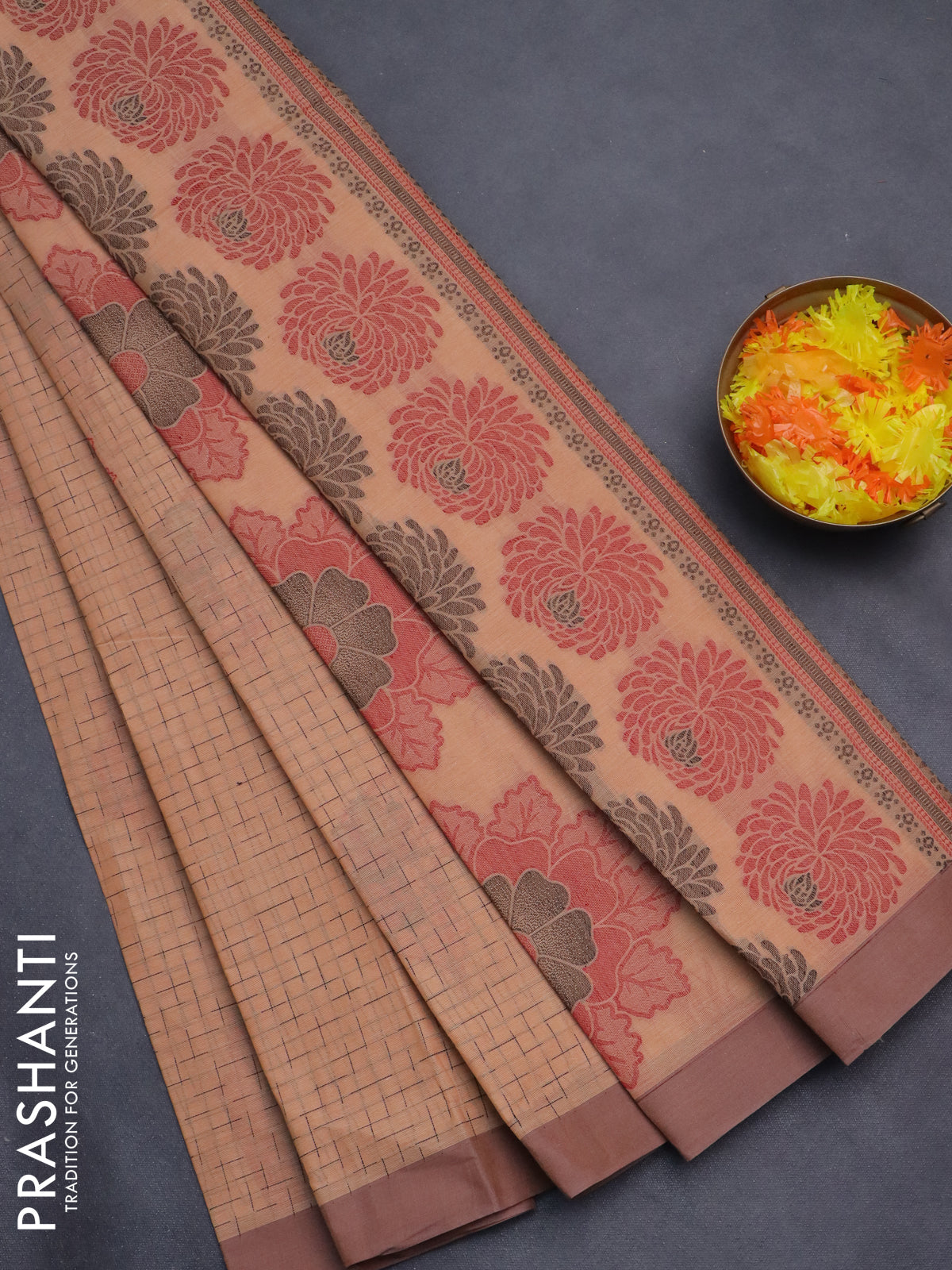 Nithyam cotton saree sandal and pastel brown with allover thread weaves and simple border