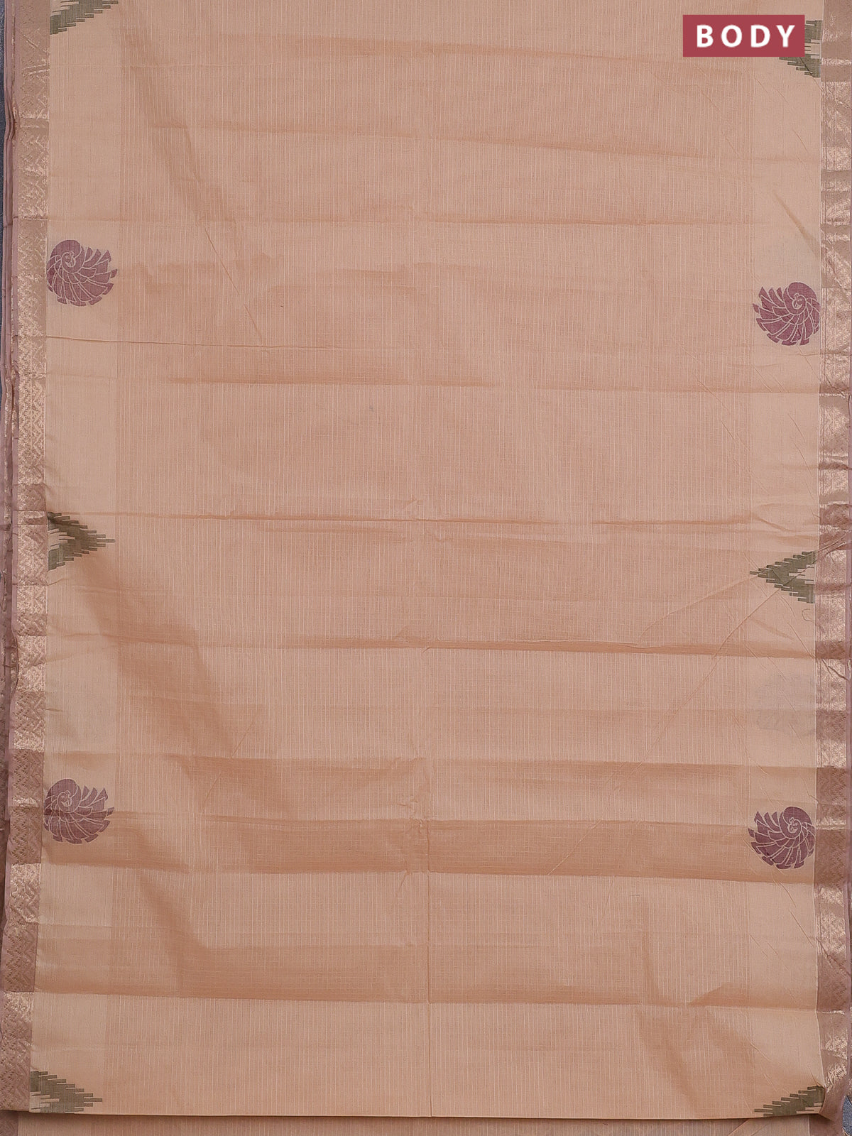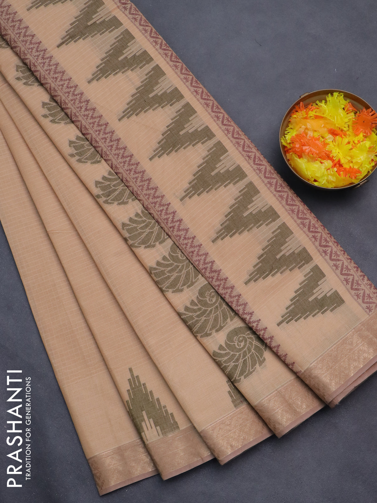 Nithyam cotton saree sandal with self emboss and zari woven border