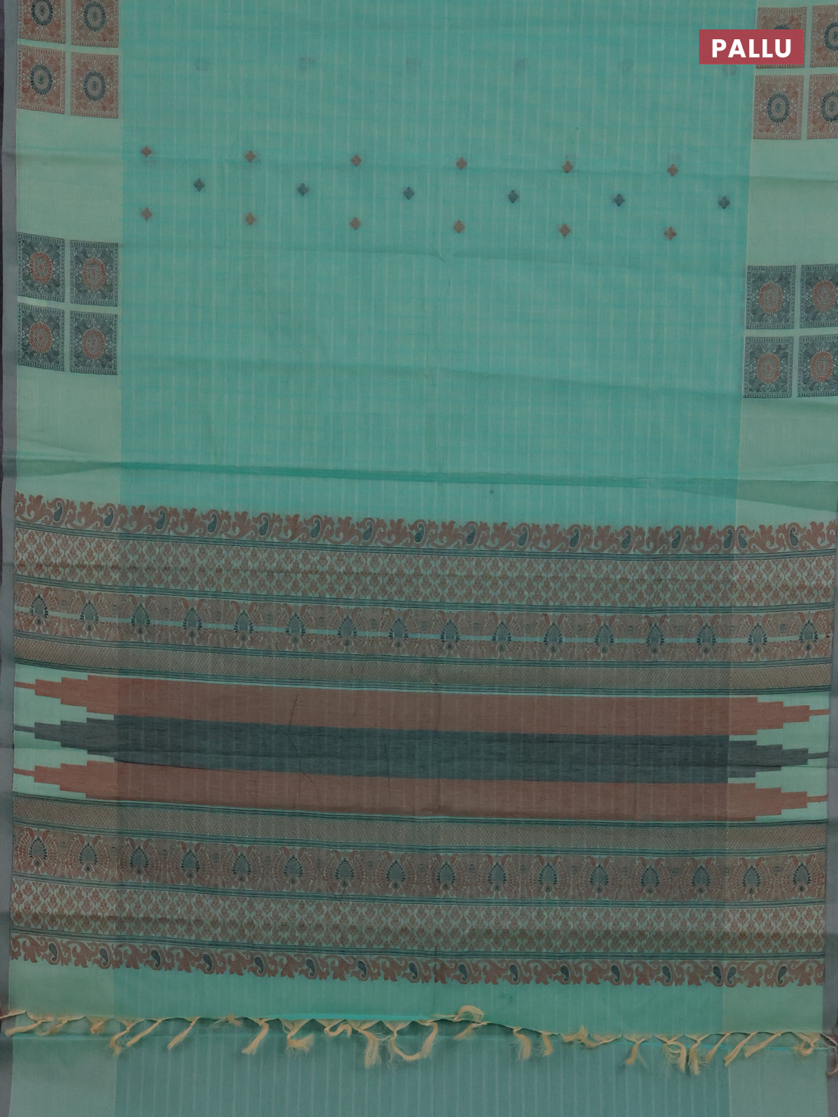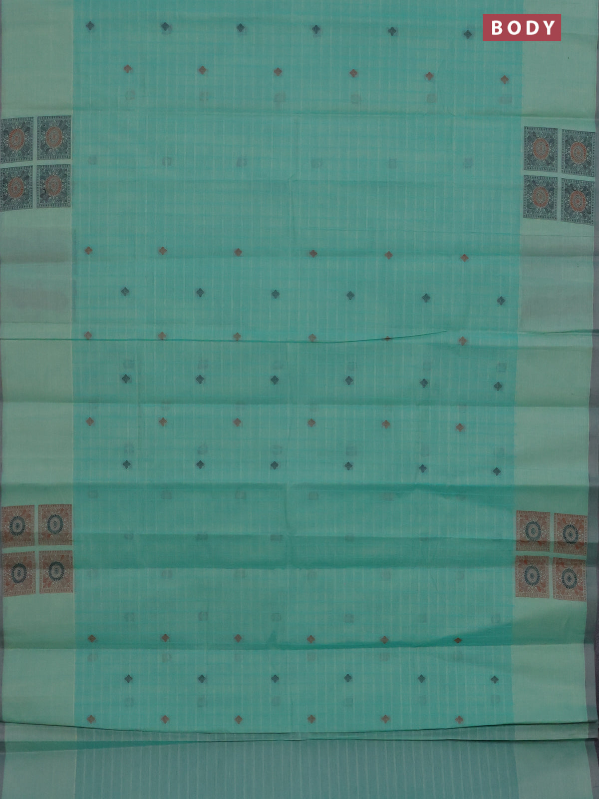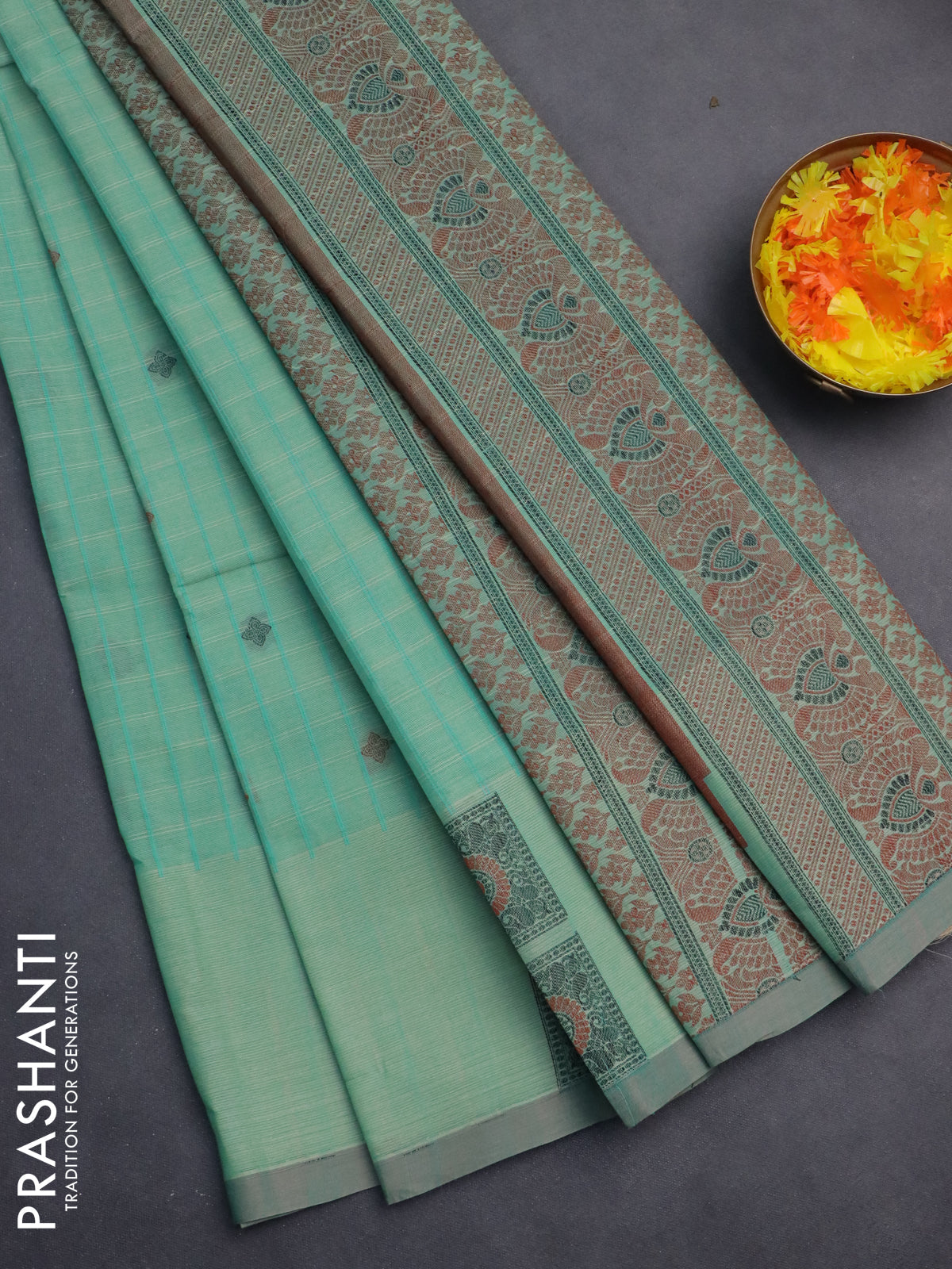 Nithyam cotton saree teal blue and beige with allover checks & thread buttas and thread woven butta border