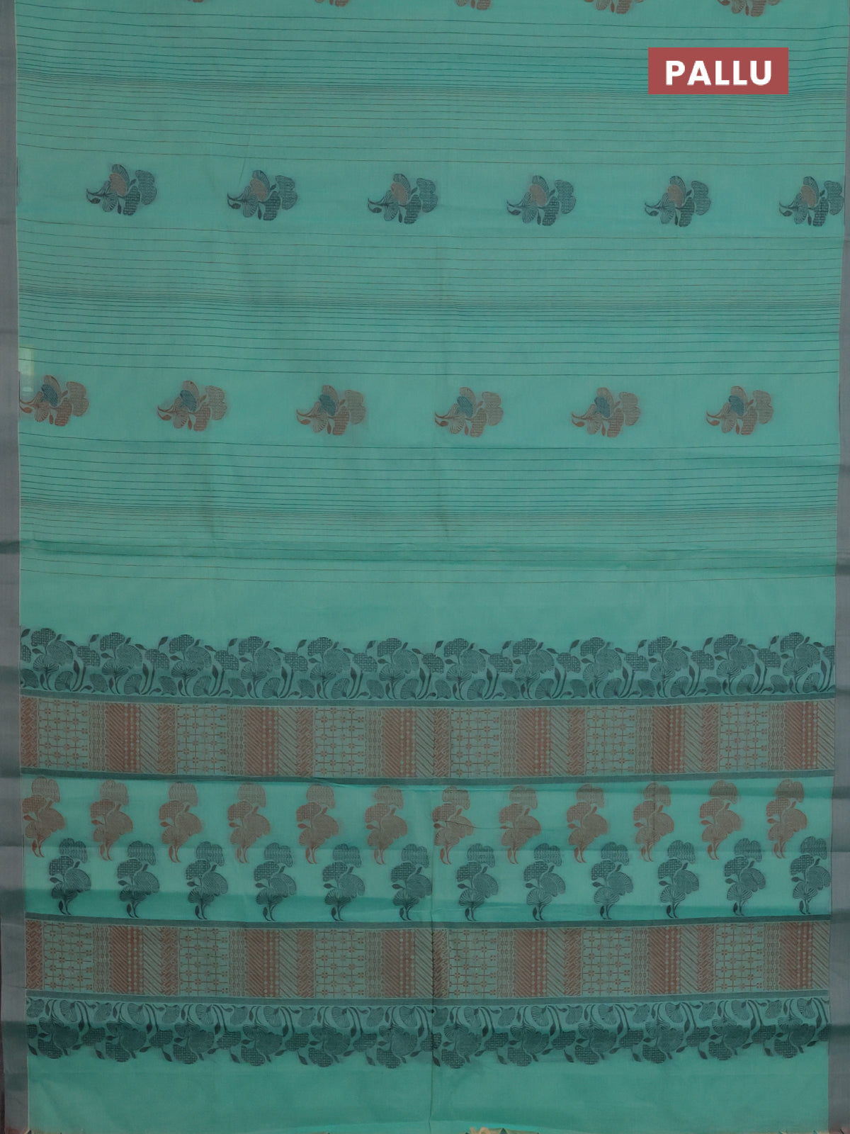 Nithyam cotton saree teal green with allover thread weaves & buttas and simple border